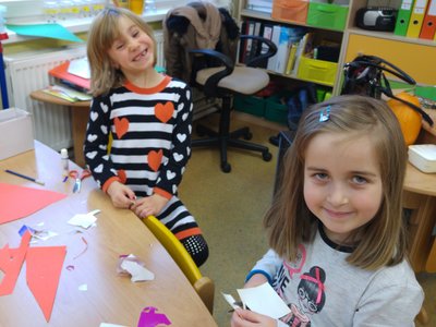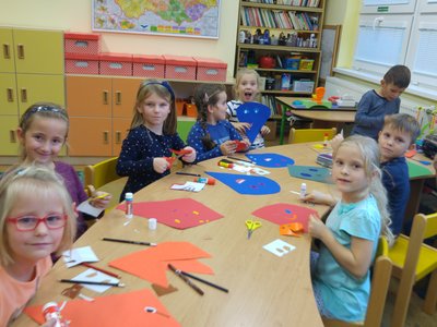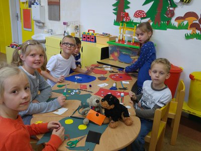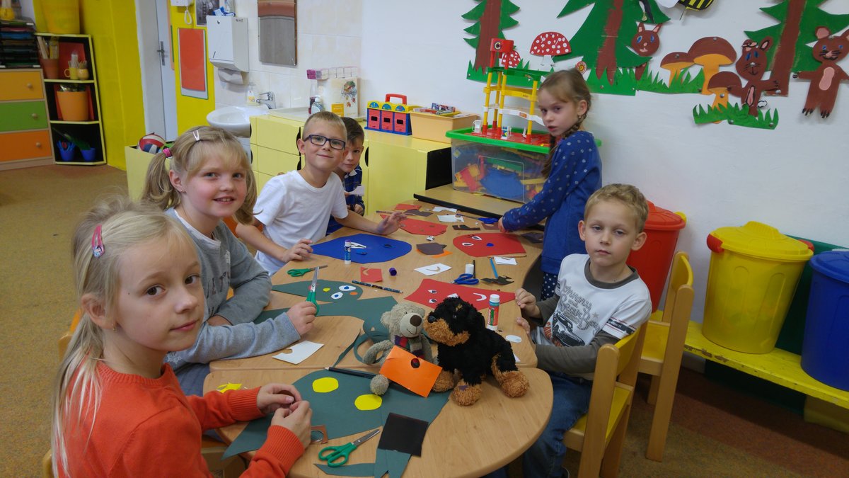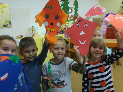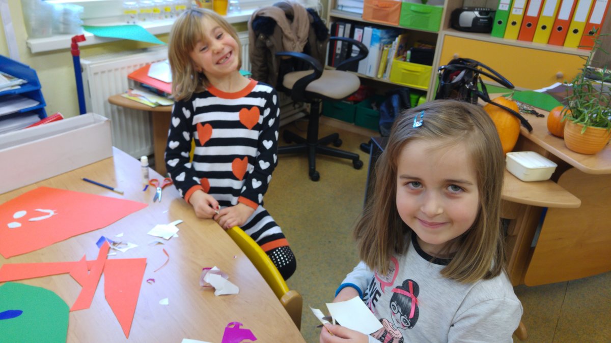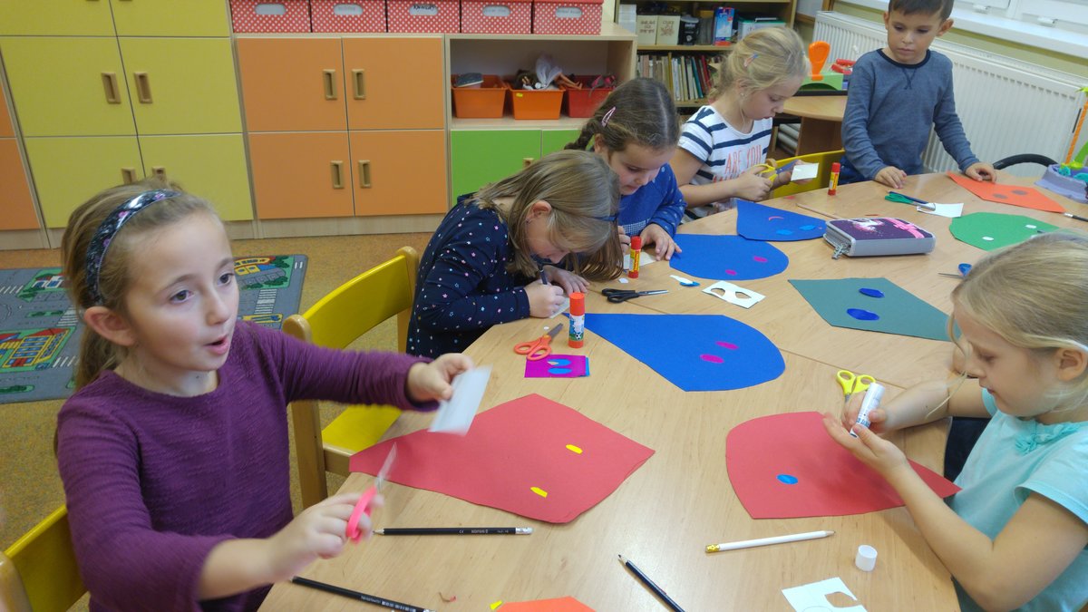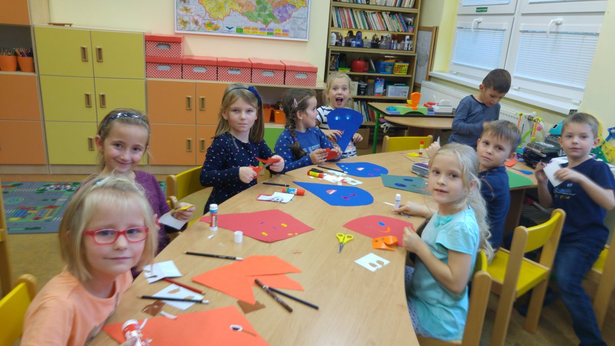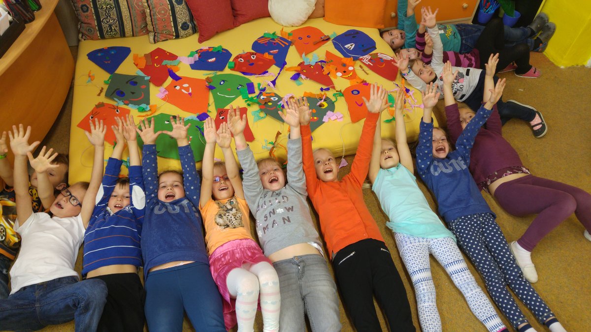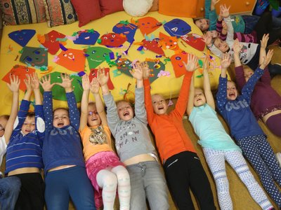 Počasí nám nepřeje a pouštět draky venku nemůžeme... Nám to ale nevadí, protože si s vyrobenými dráčky pěkně užíváme!