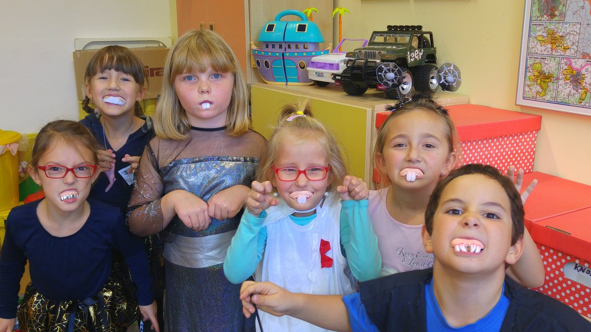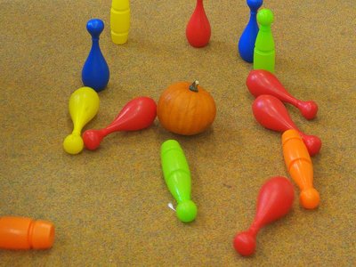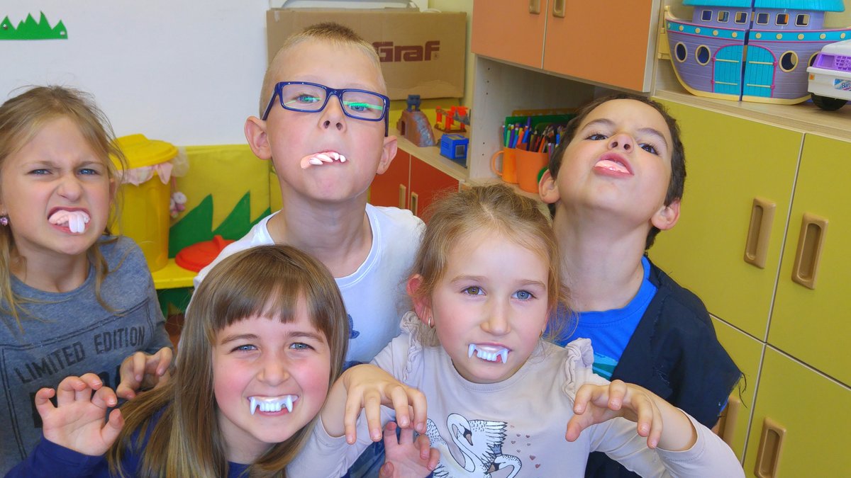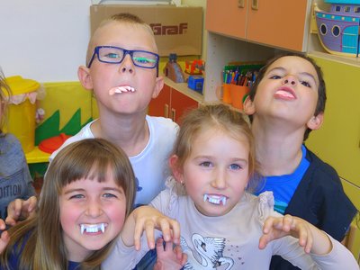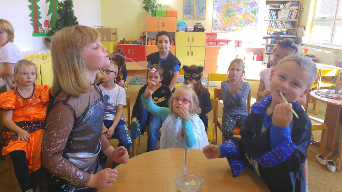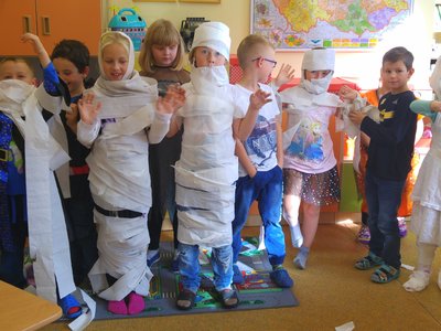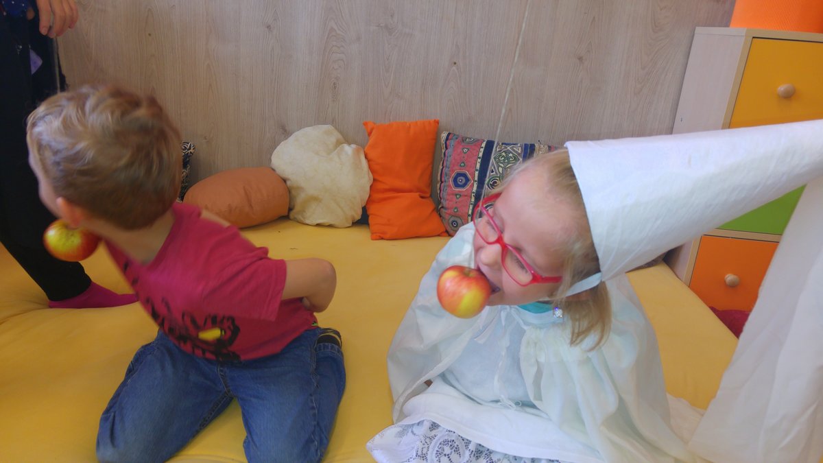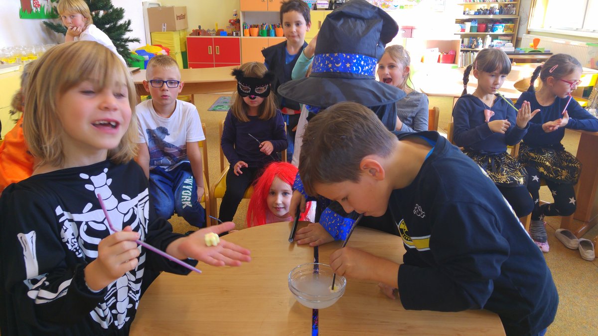Soutěžní odpoledne bylo hodně veselé... Okusovali jsme houpací jablíčka, vázali jsme mumie, hráli bonbónovou honičku a dýňový bowling. Všichni jsme si odnesli malou odměnu na veselé strašení.