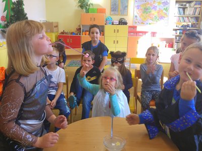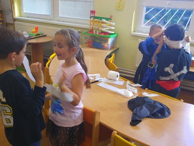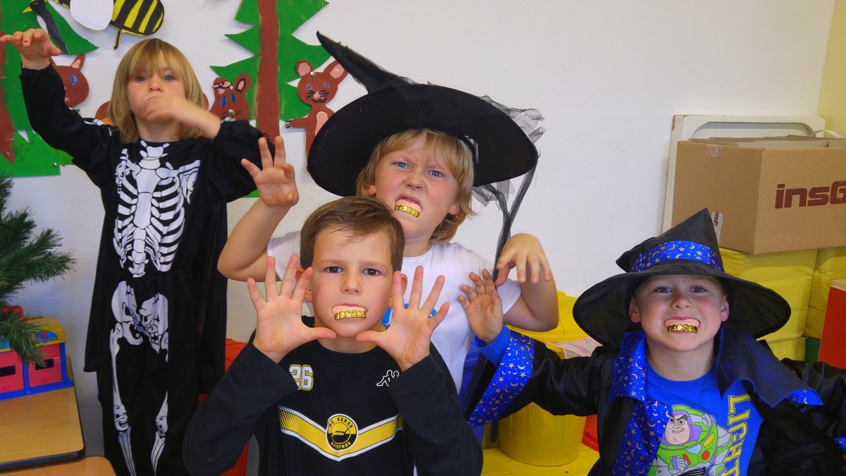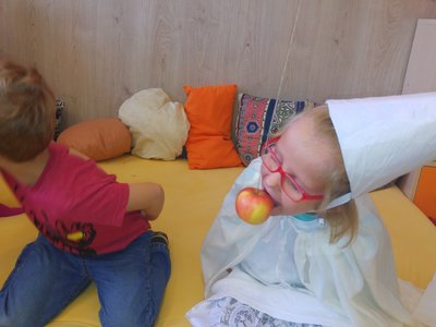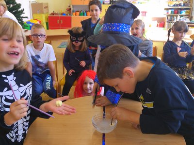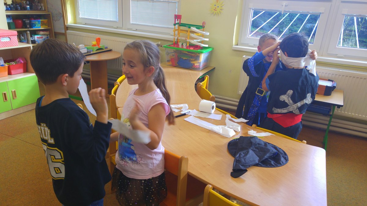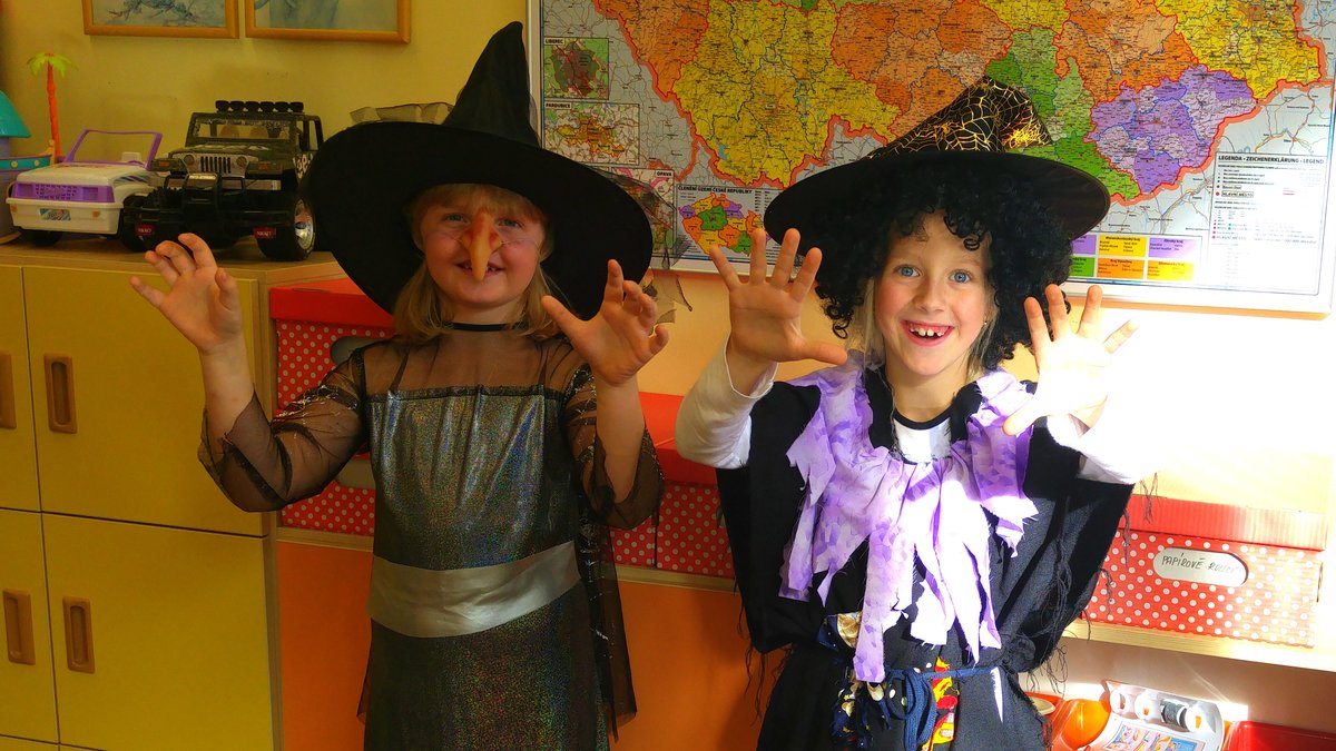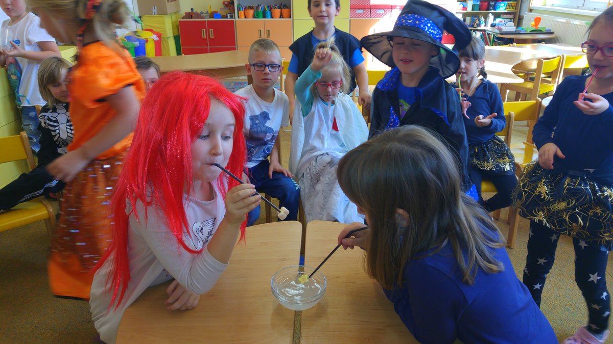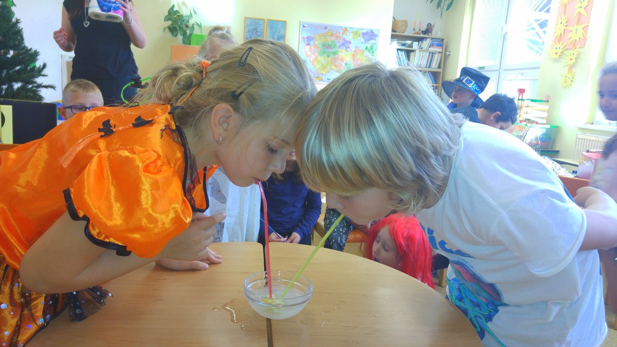 Soutěžní odpoledne bylo hodně veselé... Okusovali jsme houpací jablíčka, vázali jsme mumie, hráli bonbónovou honičku a dýňový bowling. Všichni jsme si odnesli malou odměnu na veselé strašení.