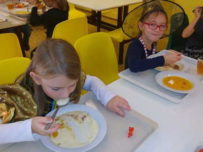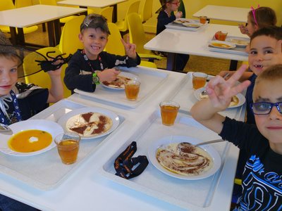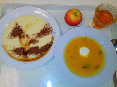 Dnes nám paní kuchařky připravily dýňovou polévku a krupicovou kaši