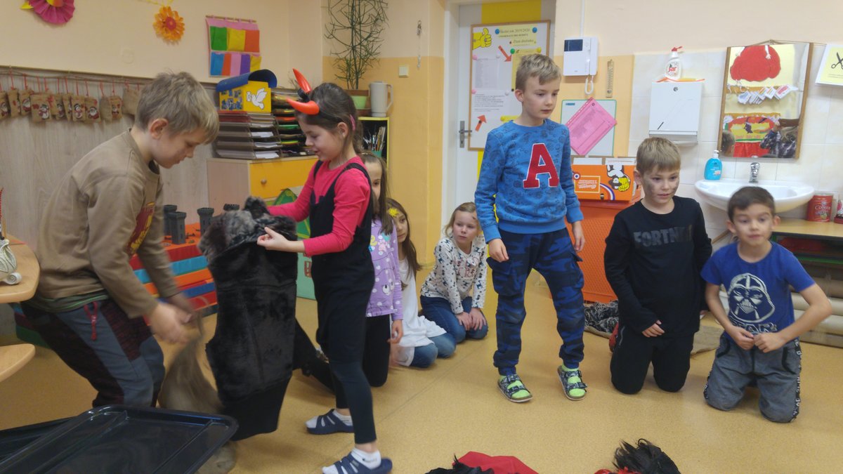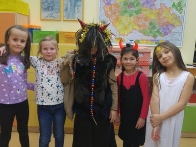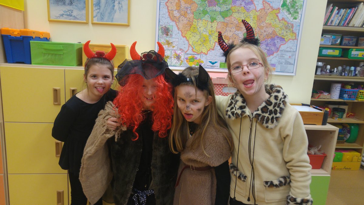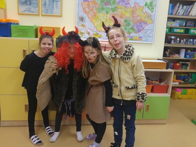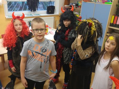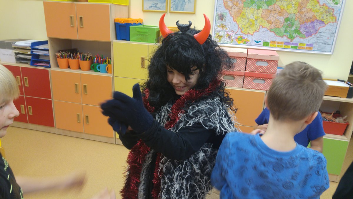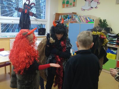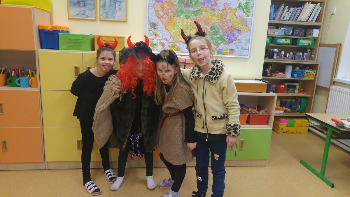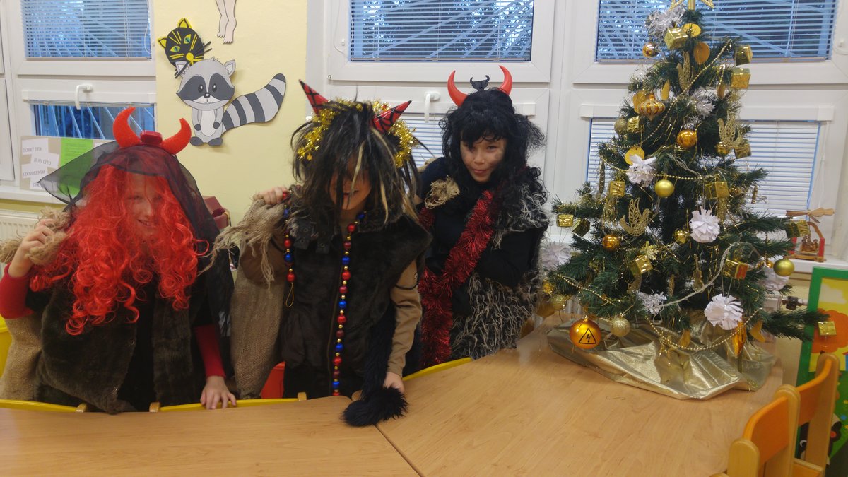 Děti utvořily tři družstva a každé mělo za úkol vybrat z hromady potřebné převleky a vybraného "čerta" musely samy nastrojit. Zvládly to skvěle a když přišly k prvňáčkům, došlo i na slzy. Hříšníci ale slibili, že se polepší a čertíci jim zlobení odpustili.