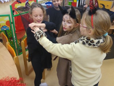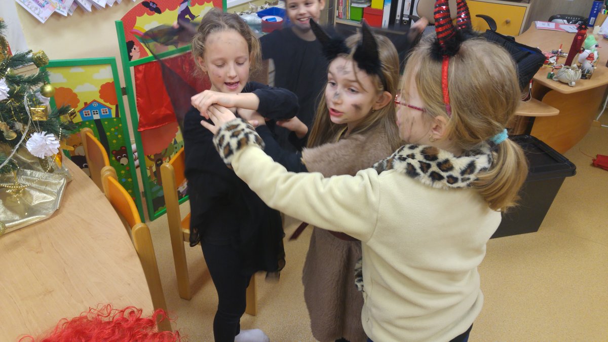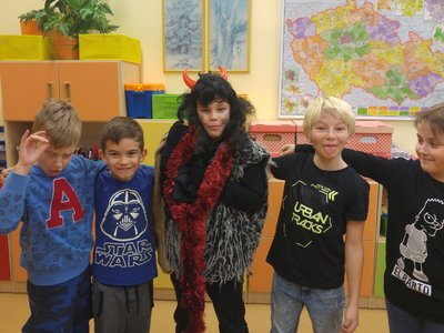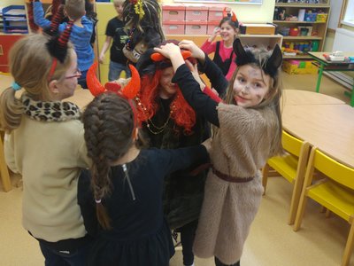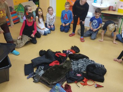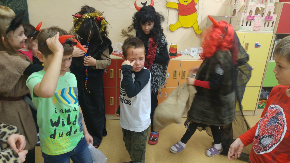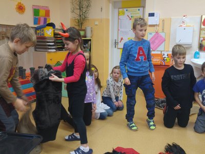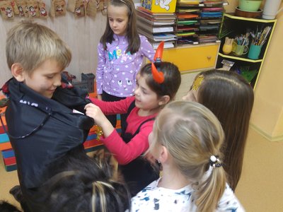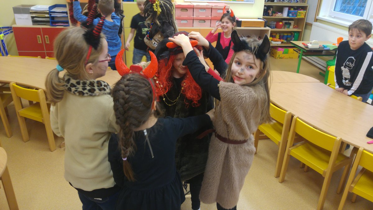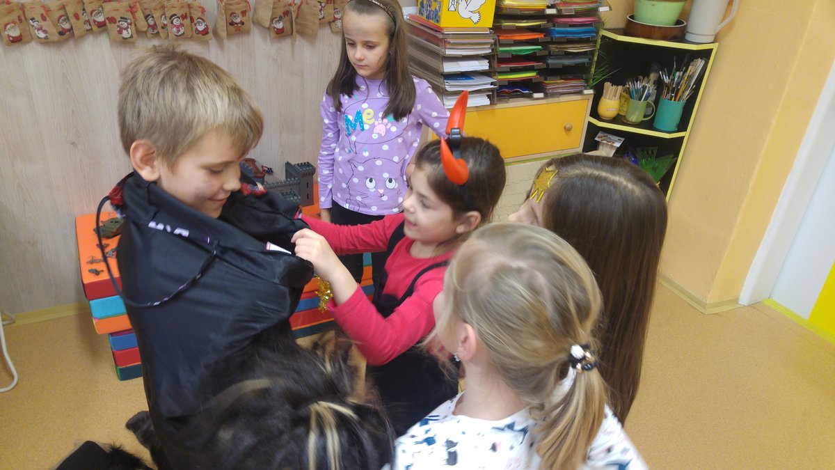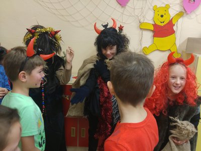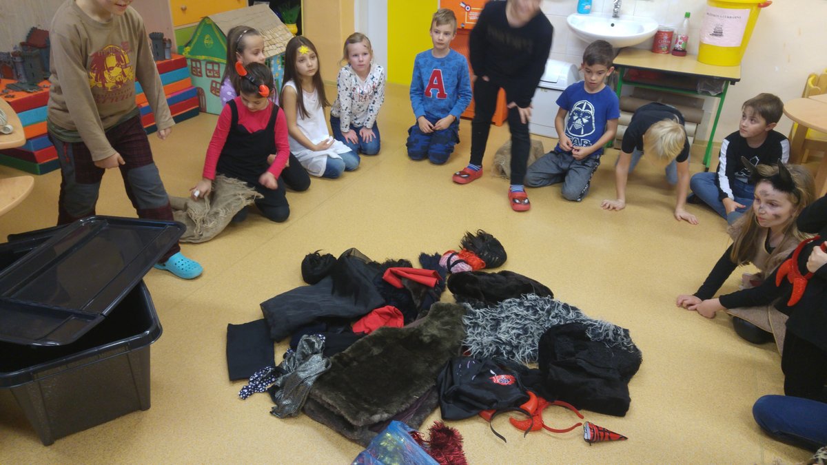 Děti utvořily tři družstva a každé mělo za úkol vybrat z hromady potřebné převleky a vybraného "čerta" musely samy nastrojit. Zvládly to skvěle a když přišly k prvňáčkům, došlo i na slzy. Hříšníci ale slibili, že se polepší a čertíci jim zlobení odpustili.
