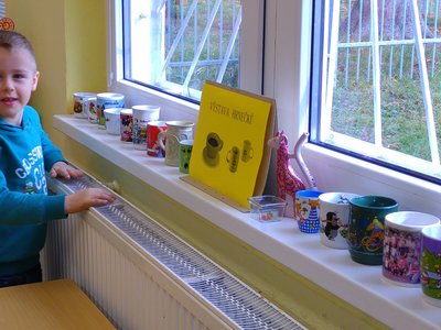 Celý týden děti nosily hrnečky do naší výstavy a v závěru si zahrály na obchod. Každý měl možnost vhodit hříbeček do hrnečku, který ho nadchnul natolik, že by si ho koupil. Všichni soutěžící byli právem odměněni.