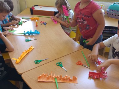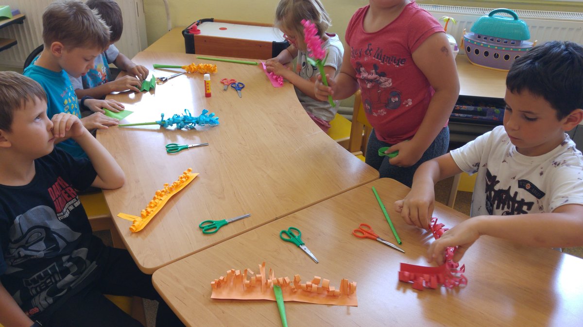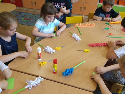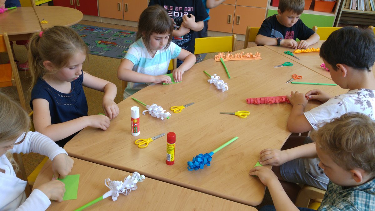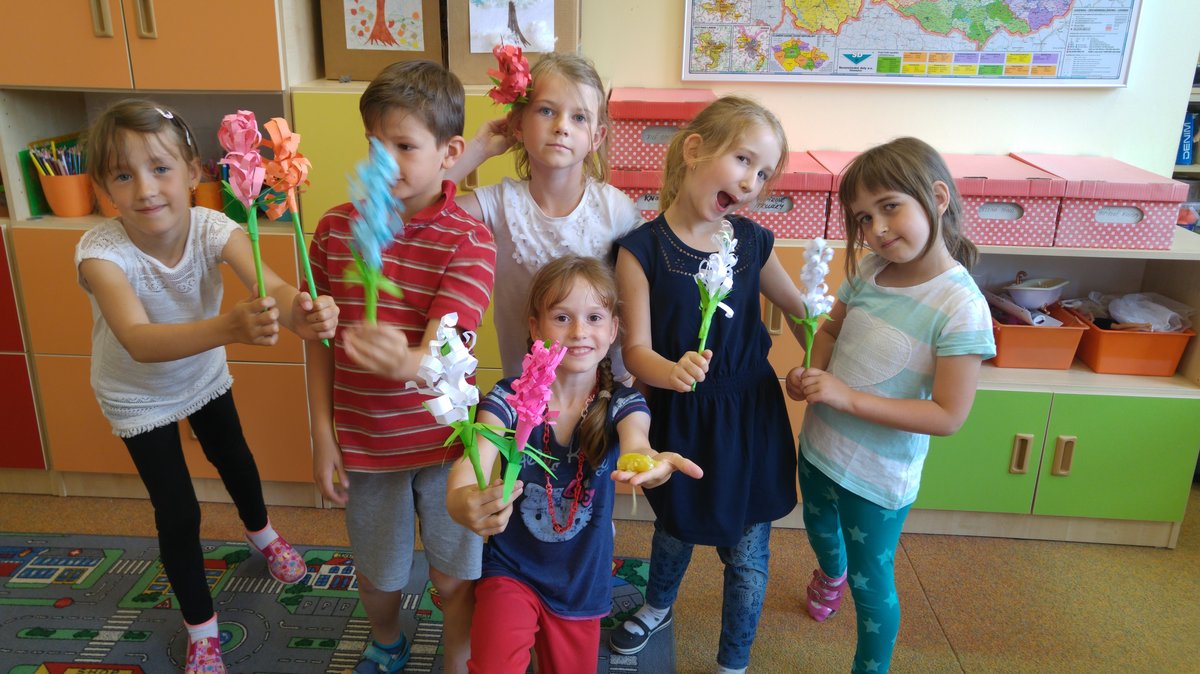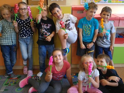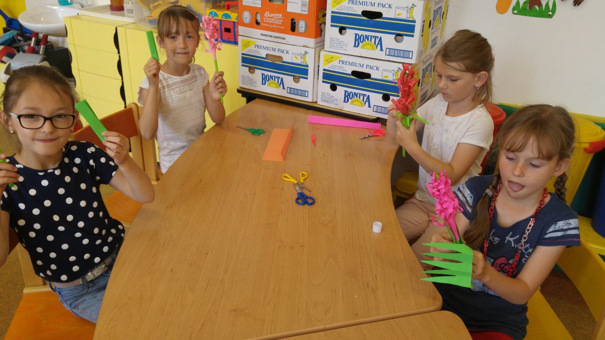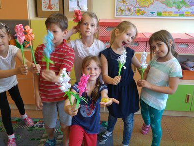 Dnes jsme si vyrobili barevné hyacinty, které naplníme do truhlíků při akci " KVĚTINOVÁ ZAHRÁDKA"