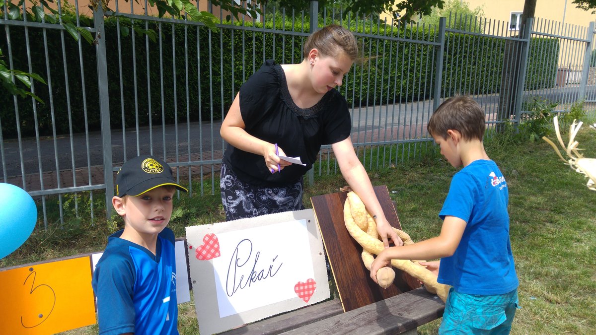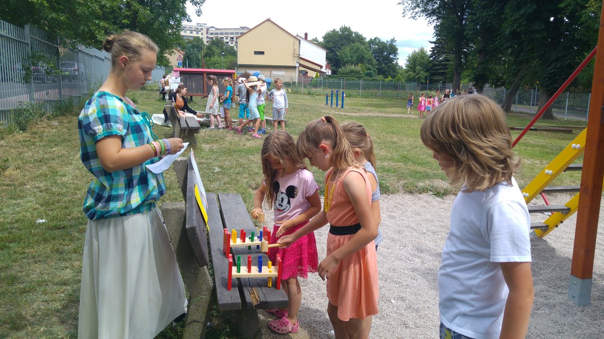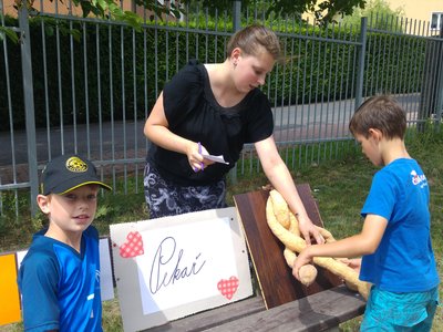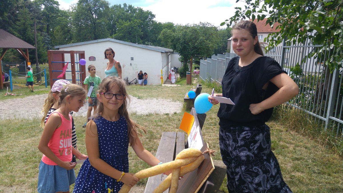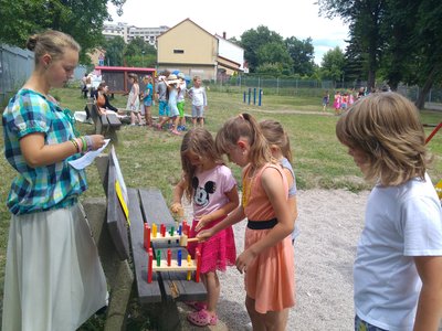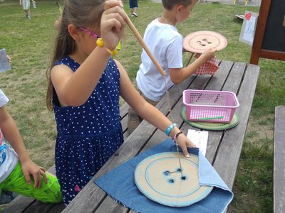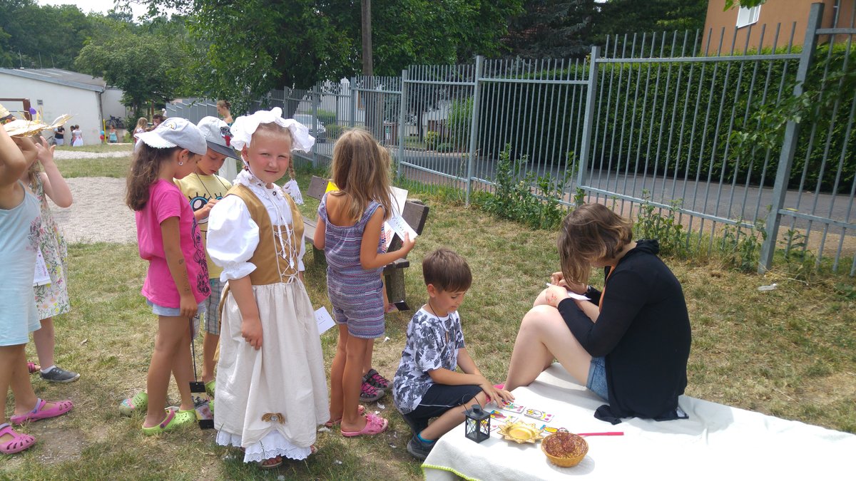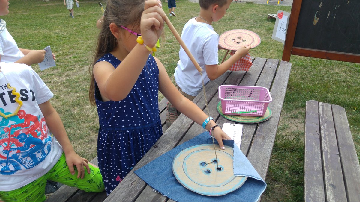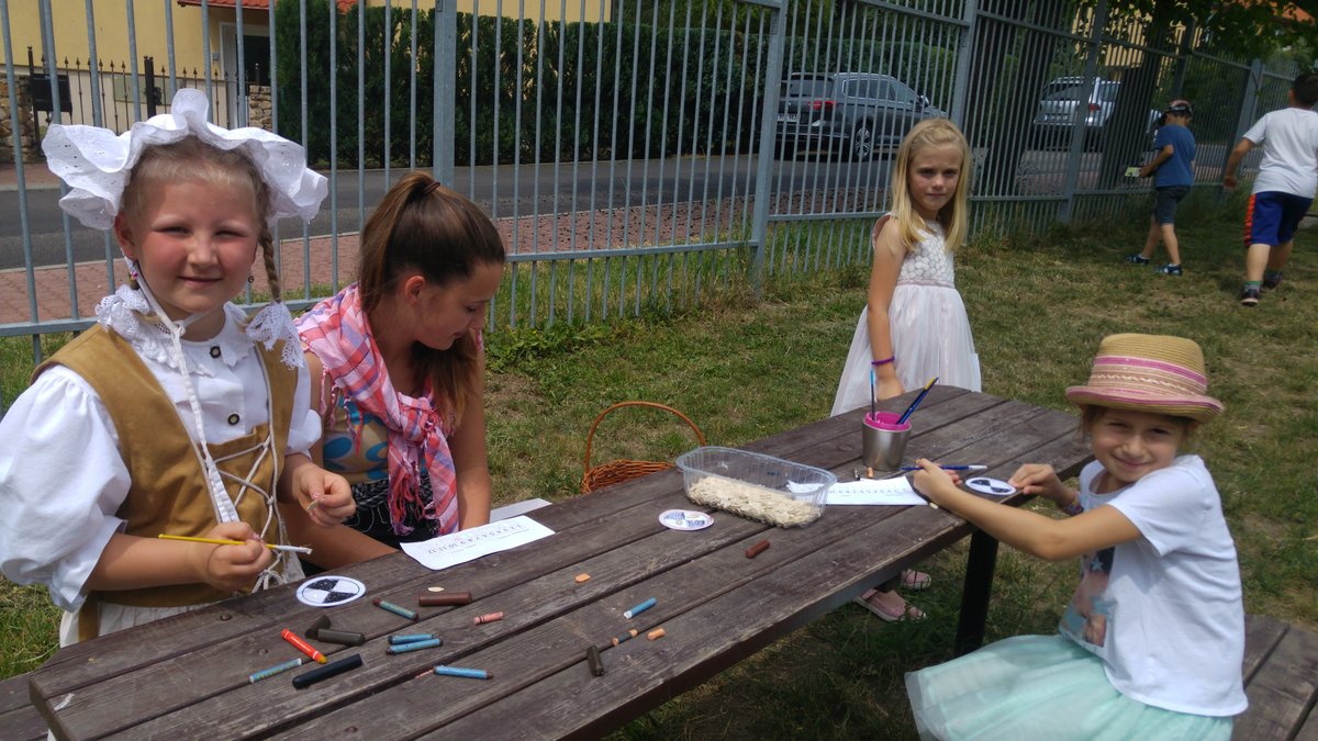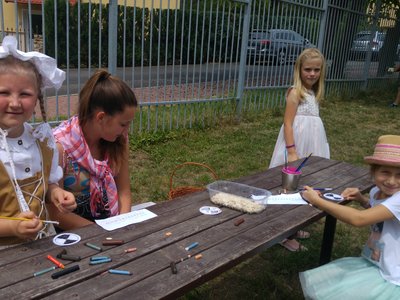 Dnes si deti vyzkoušely staročeská řemesla a po splněných úkolech je čekalo štěstíčko z poutě.