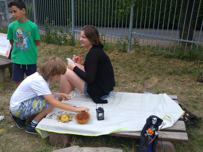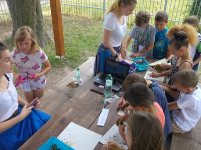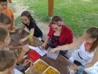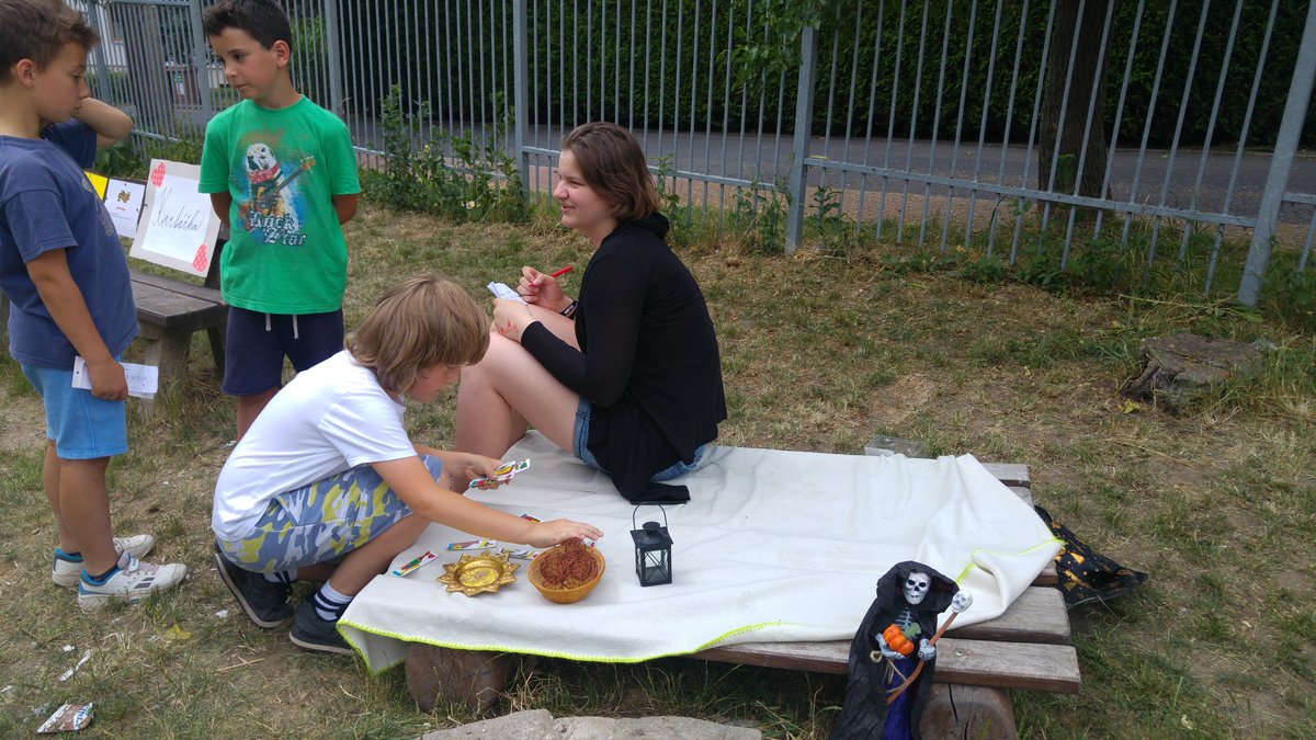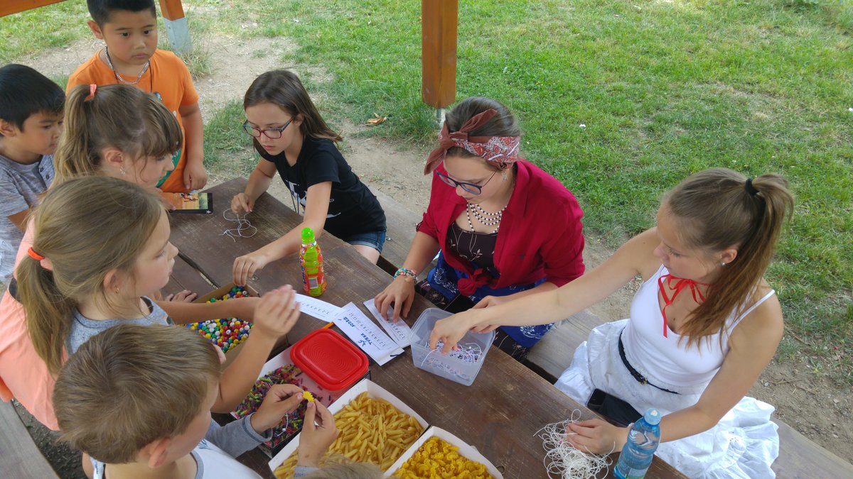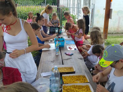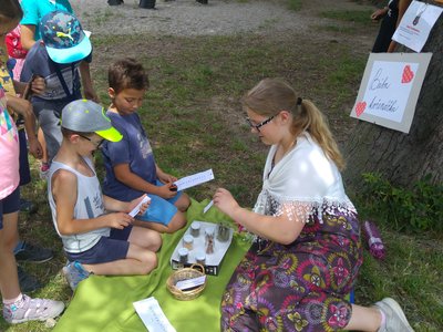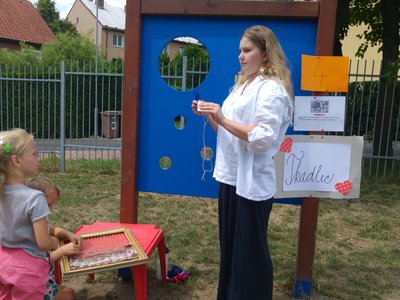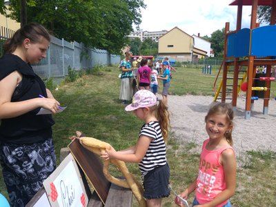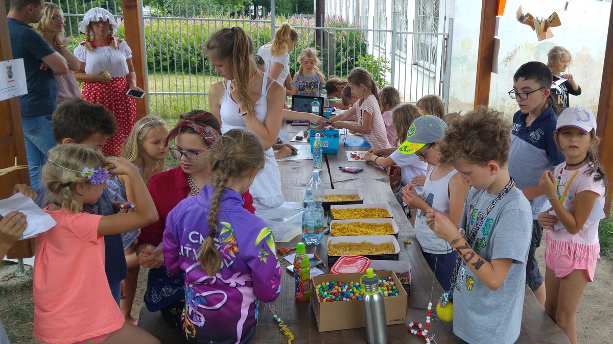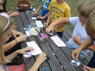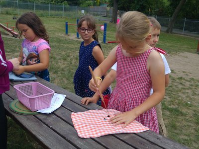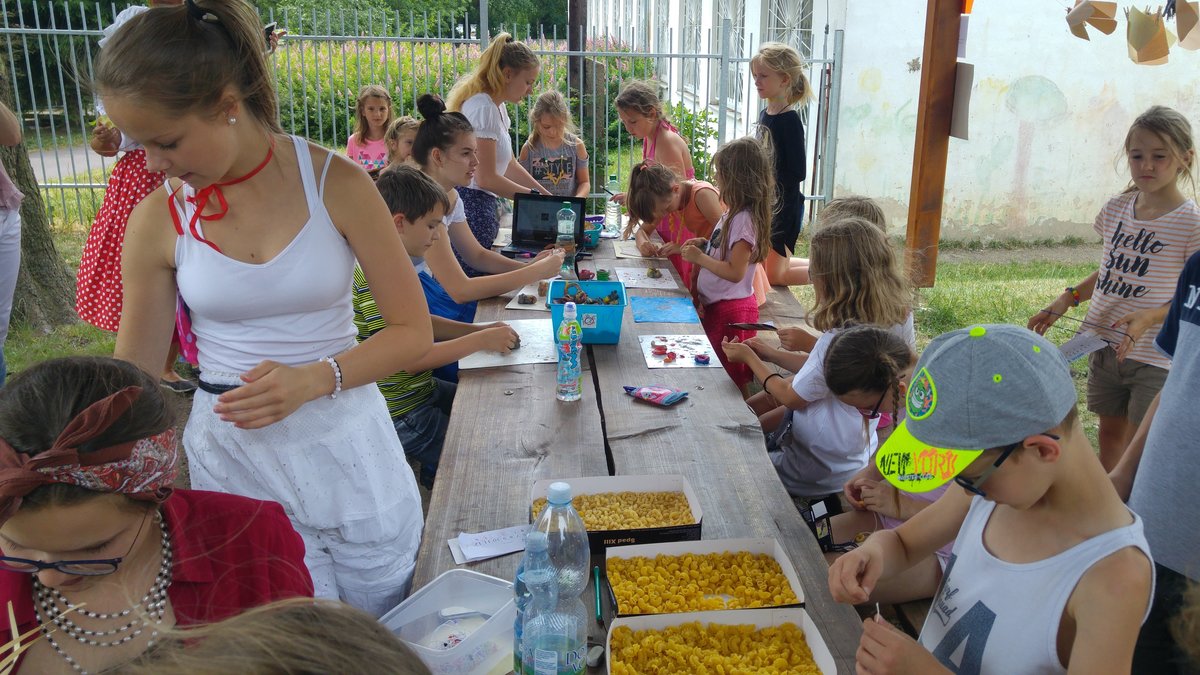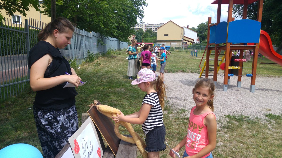 Dnes si deti vyzkoušely staročeská řemesla a po splněných úkolech je čekalo štěstíčko z poutě.