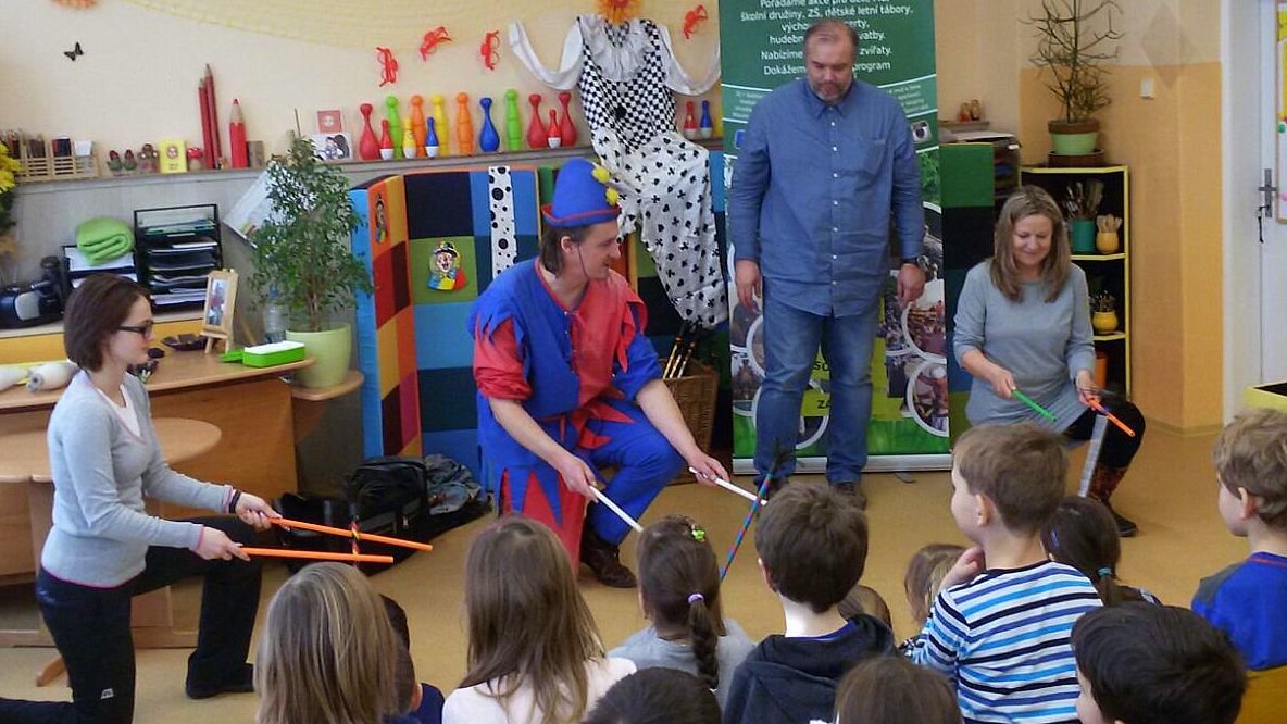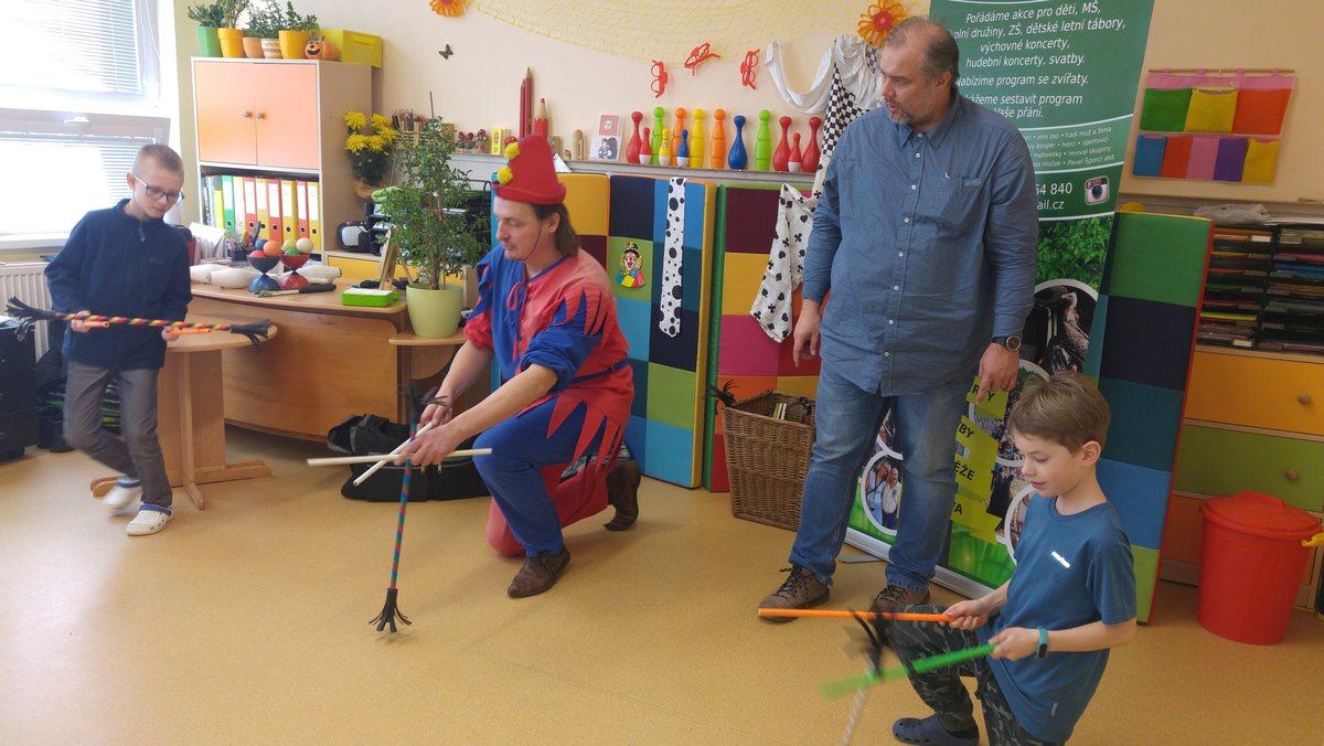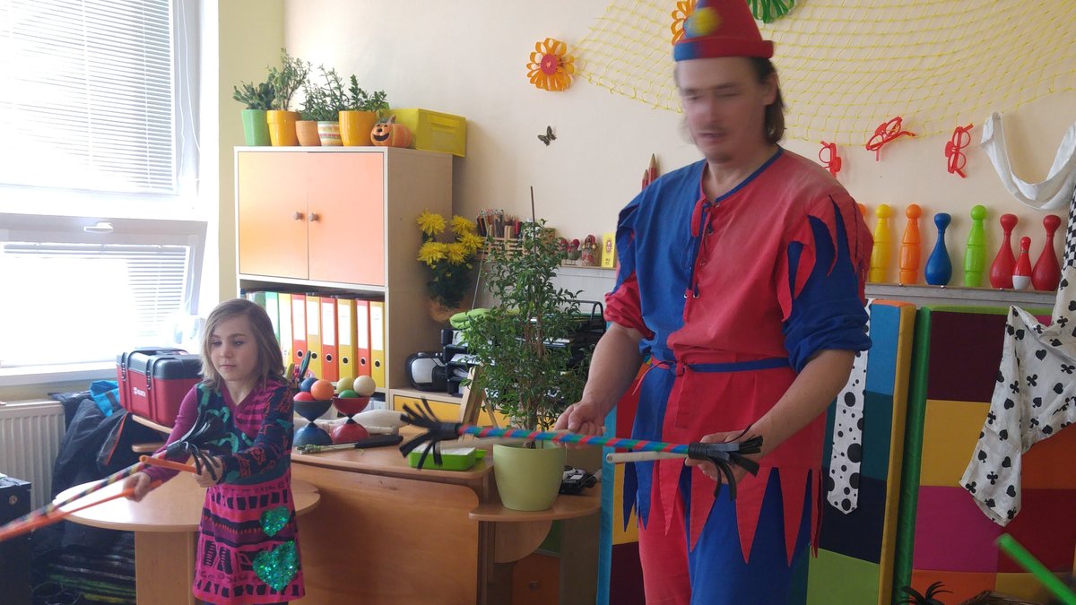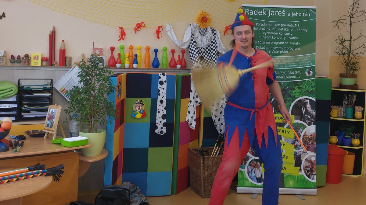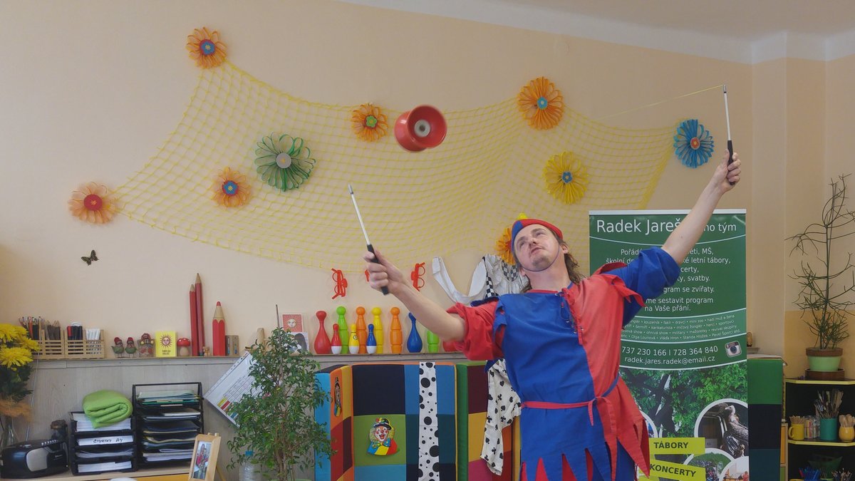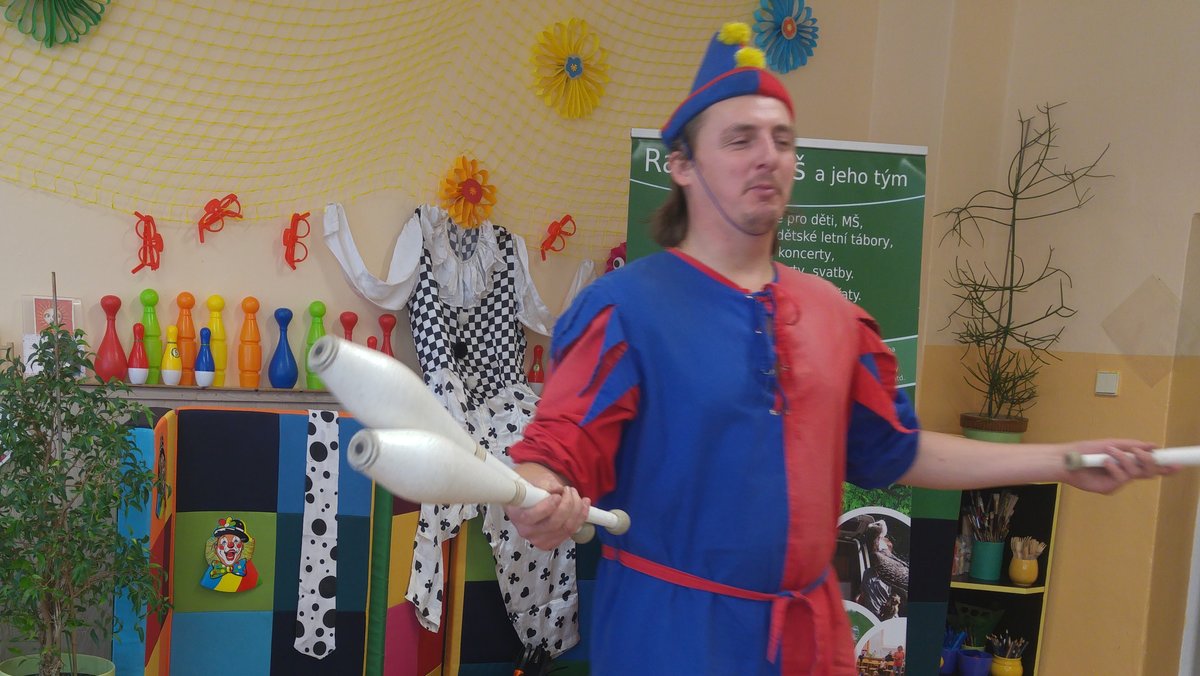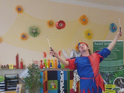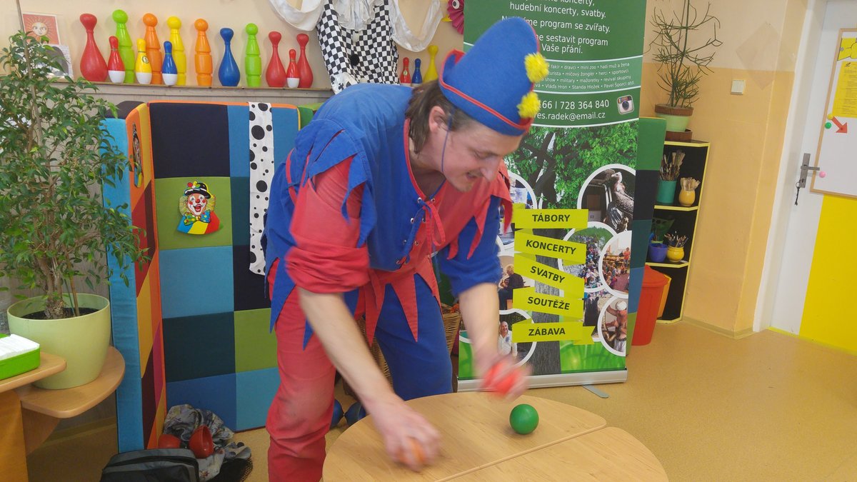 Dnes nás navštívil žonglér a naučil nás různé věci...