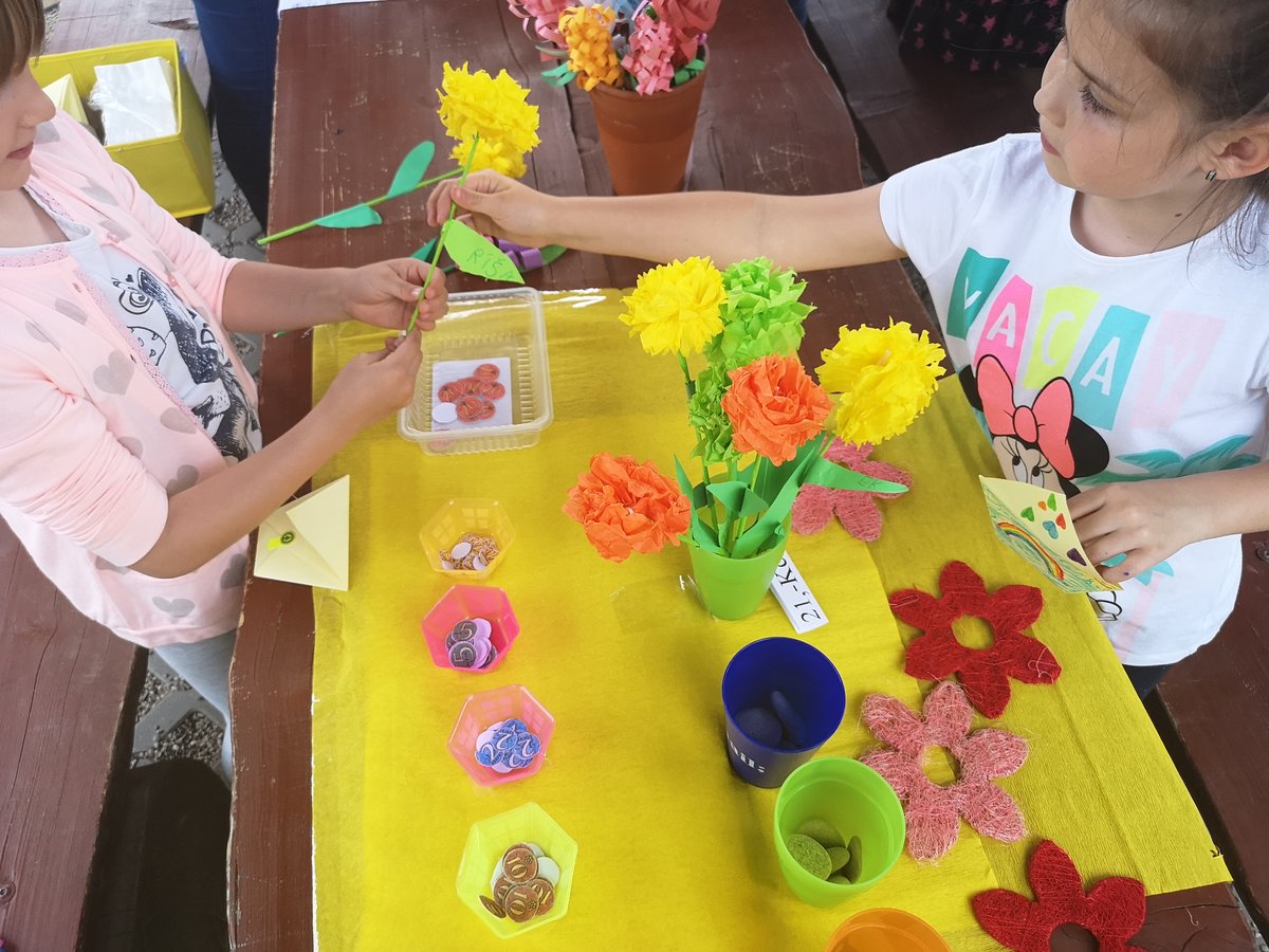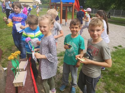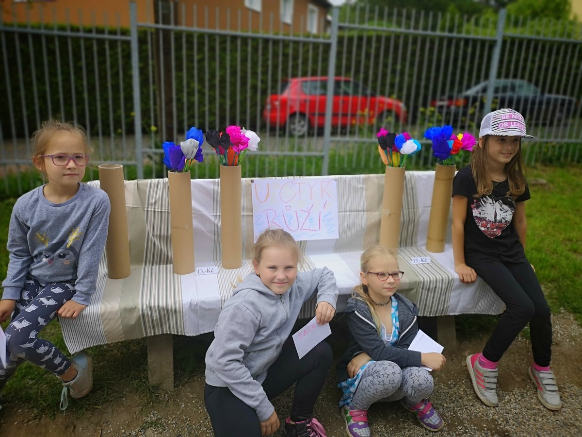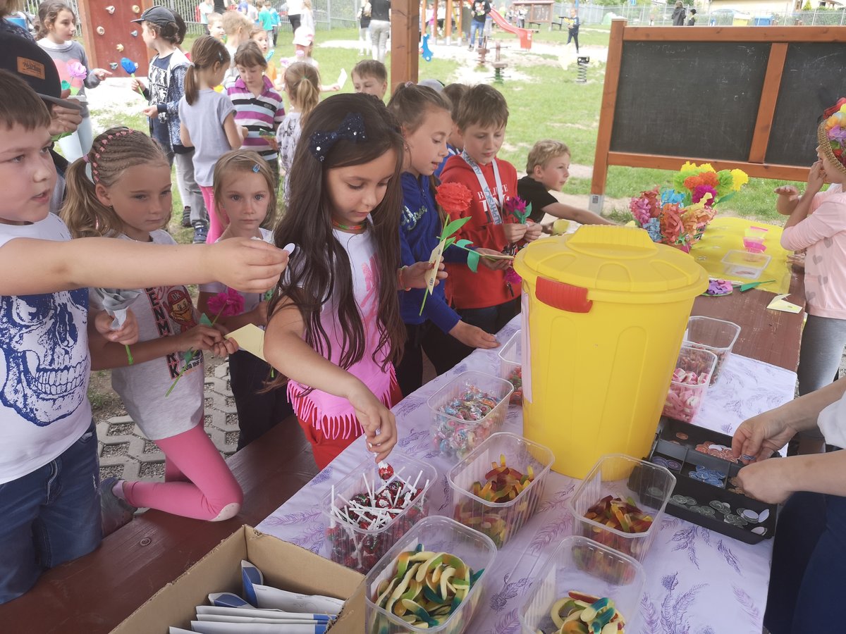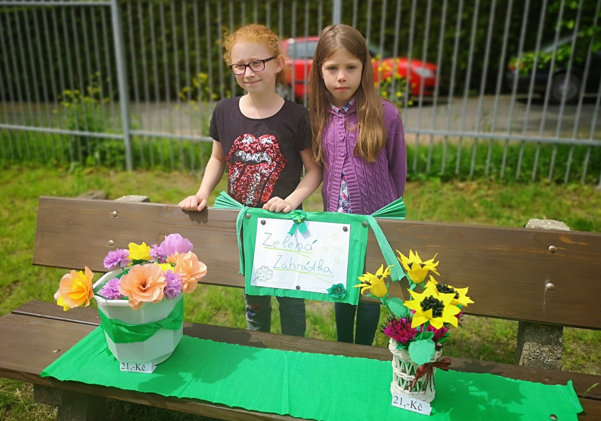 Celý týden jsme vyráběli květiny na prodej. Dnes si každé oddělení připravilo na zahradě stánek a všechny děti nakupovaly. Kdo neutratil peníze za kytičky, ten si mohl vybrat sladkosti v cukrárně. Všichni si tak procvičili matematiku