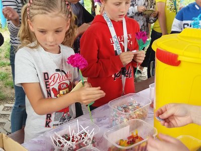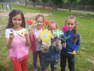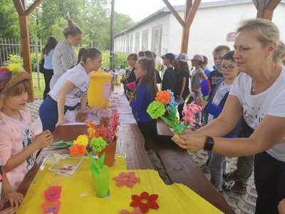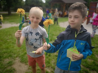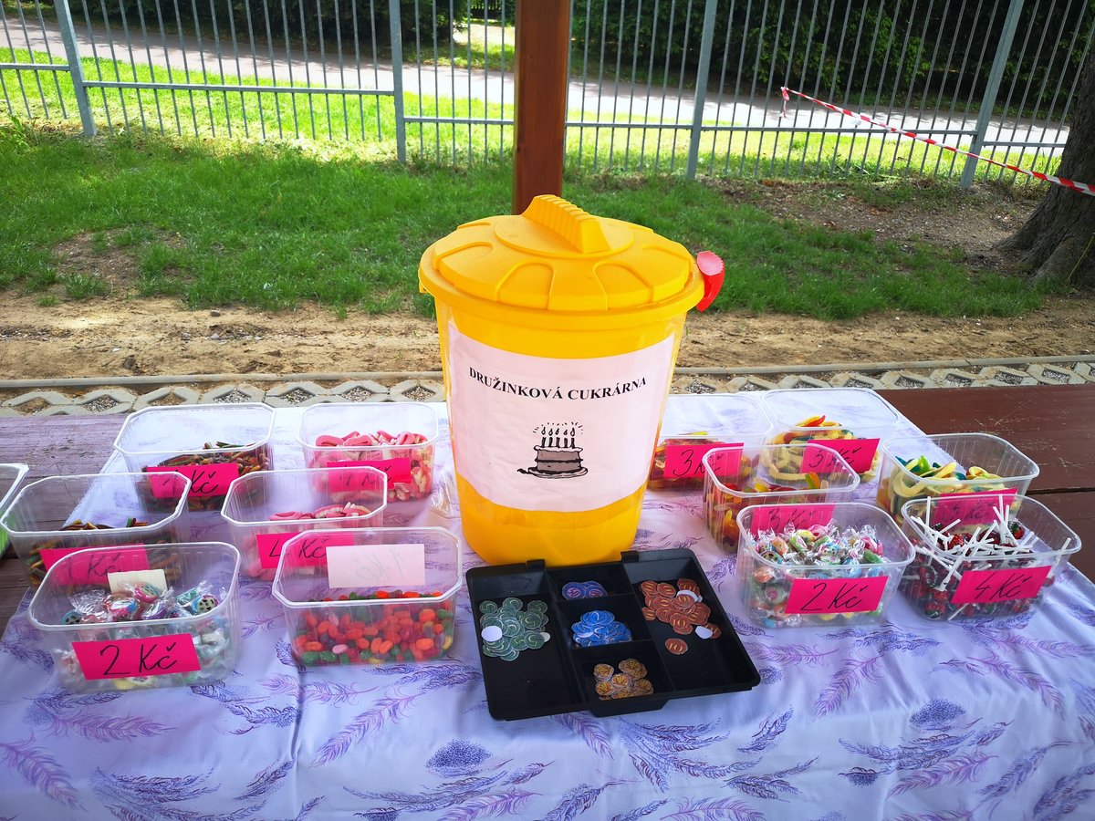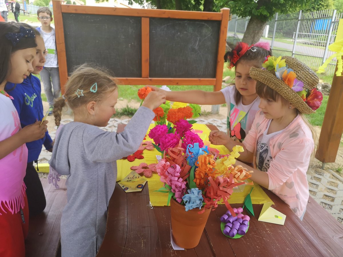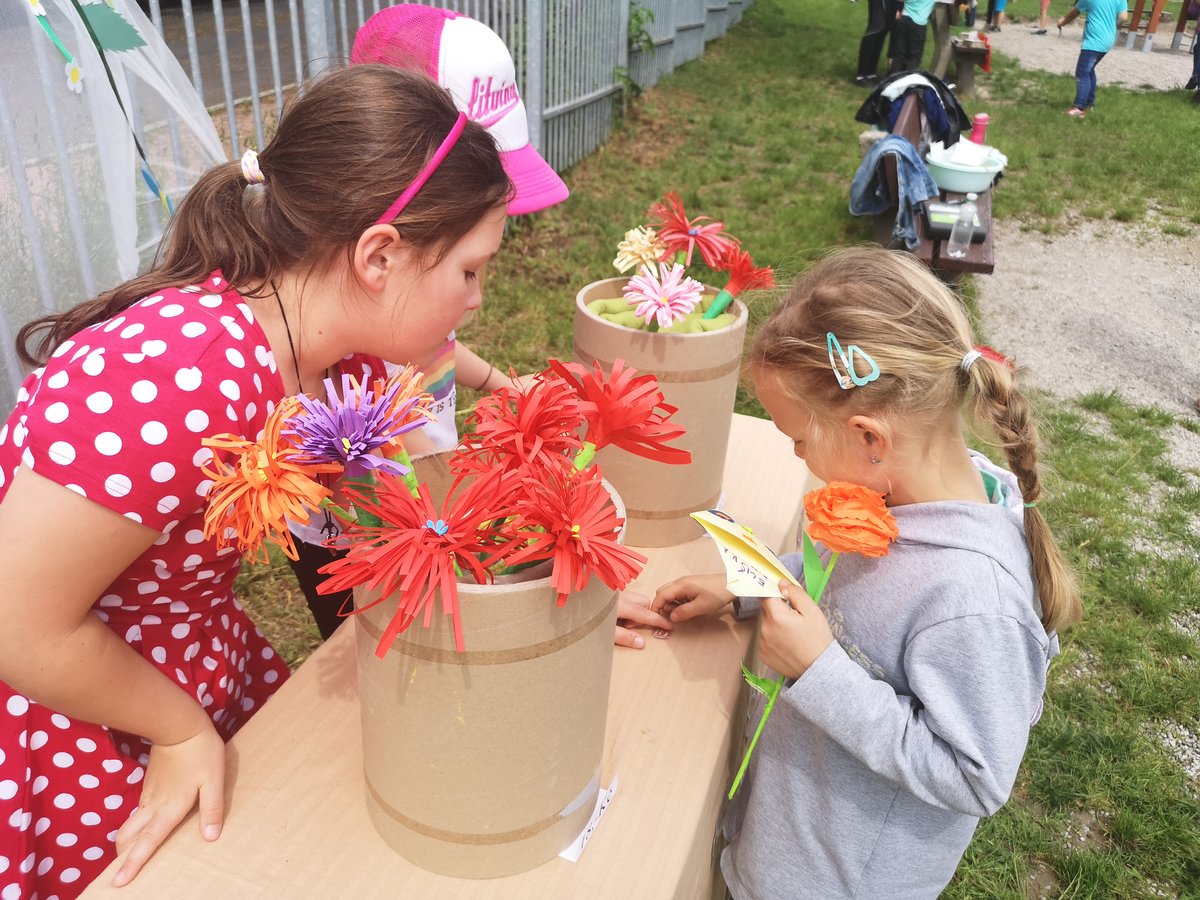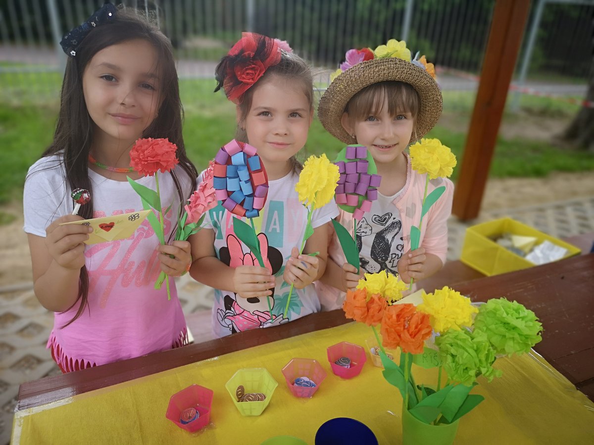 Celý týden jsme vyráběli květiny na prodej. Dnes si každé oddělení připravilo na zahradě stánek a všechny děti nakupovaly. Kdo neutratil peníze za kytičky, ten si mohl vybrat sladkosti v cukrárně. Všichni si tak procvičili matematiku