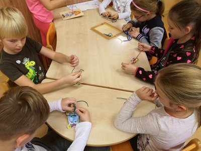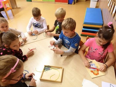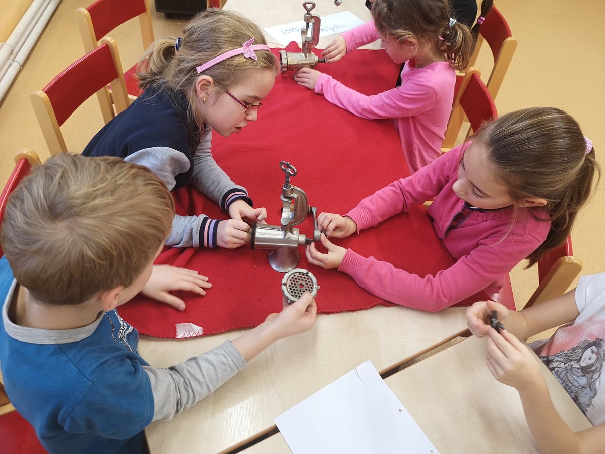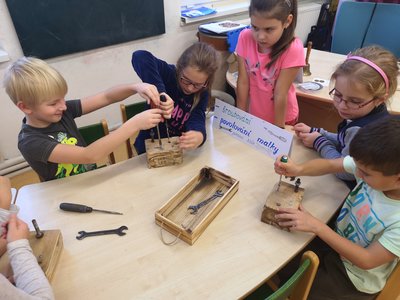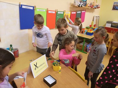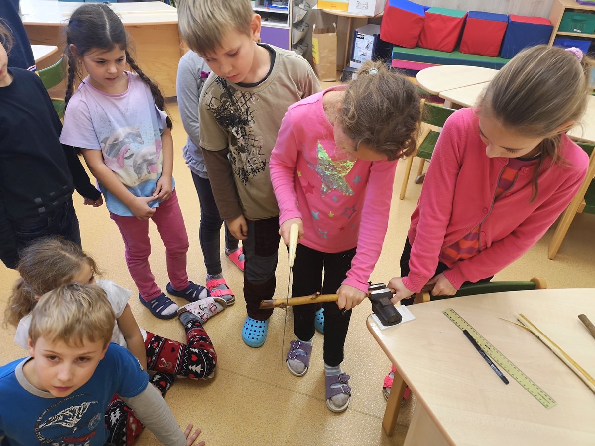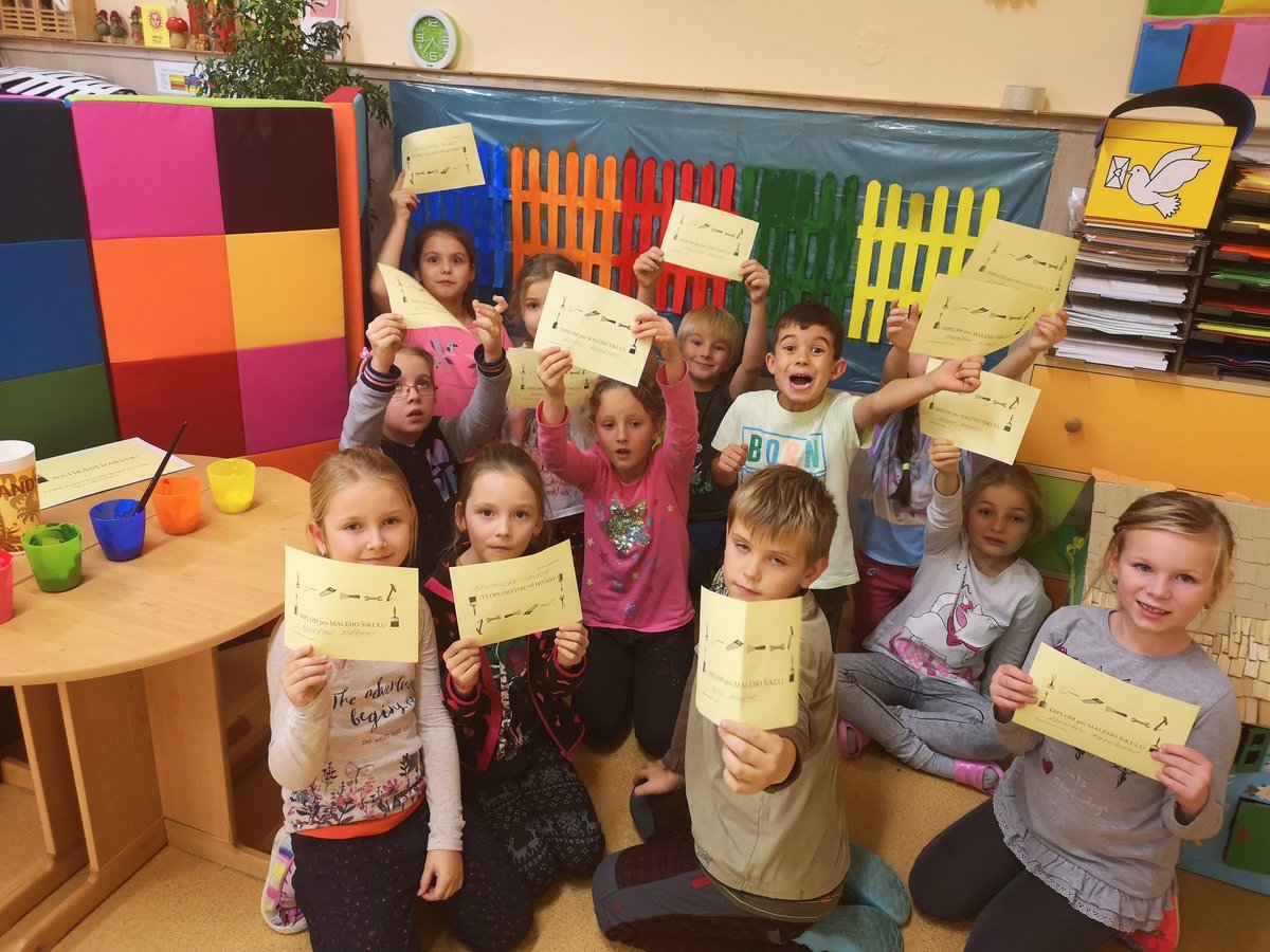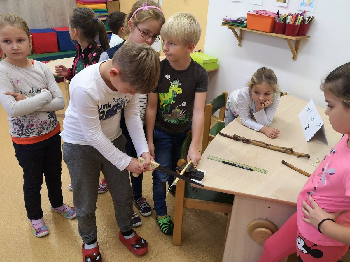 Dnes jsme prokázali svou zručnost při použití různých nářadí a pomůcek. Umíme například natřít plot, vystřihovat, uvázat tkaničku, zatloukat hřebíky, řezat pilkou, rozebrat a sestavit mlýnek na maso, navlékat nit i přišít knoflík. Za svou šikovnost jsme právem obdrželi diplom.
