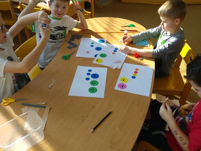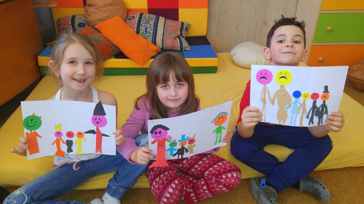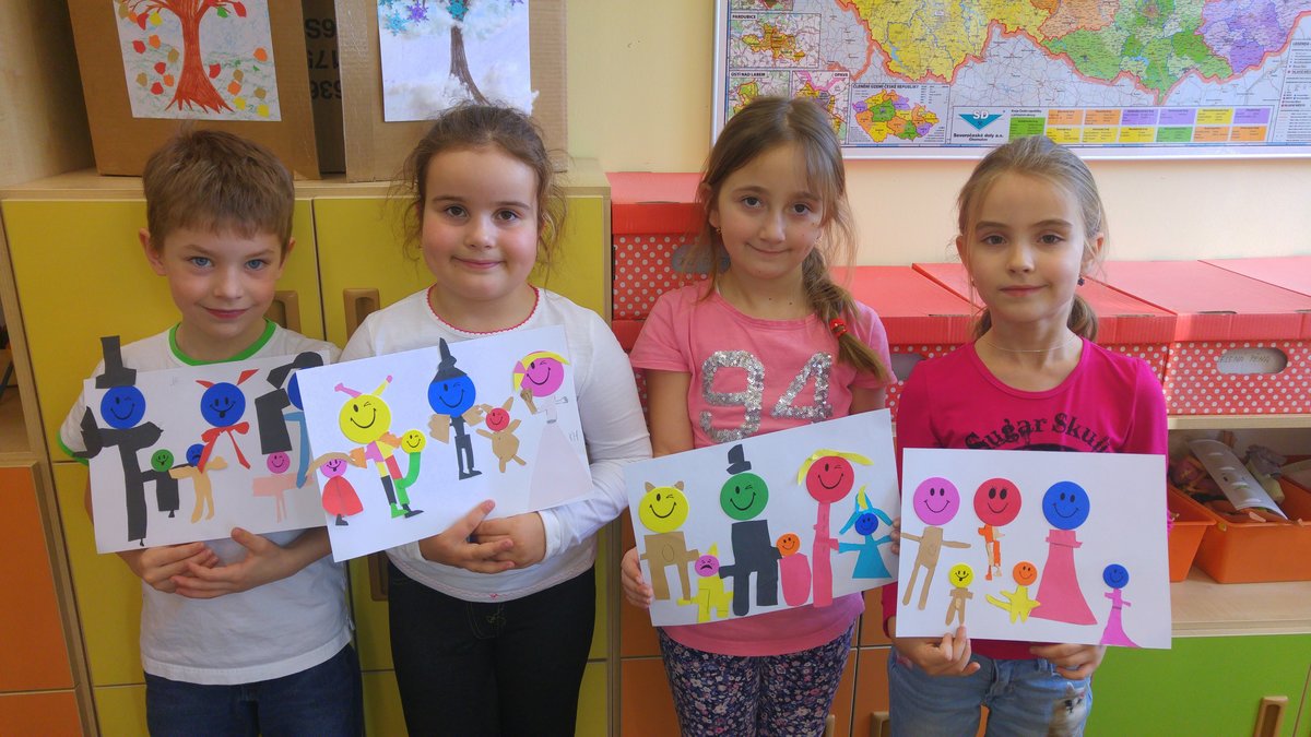 Zkusili jsme vystřihovat karnevalové převleky a vytvořili jsme dlouhý průvod masek...