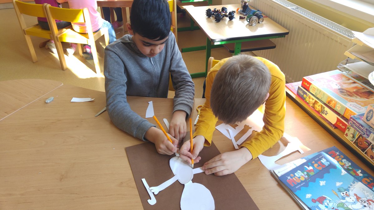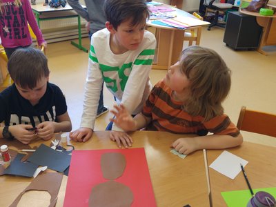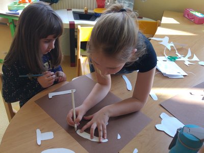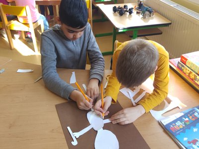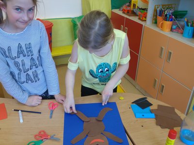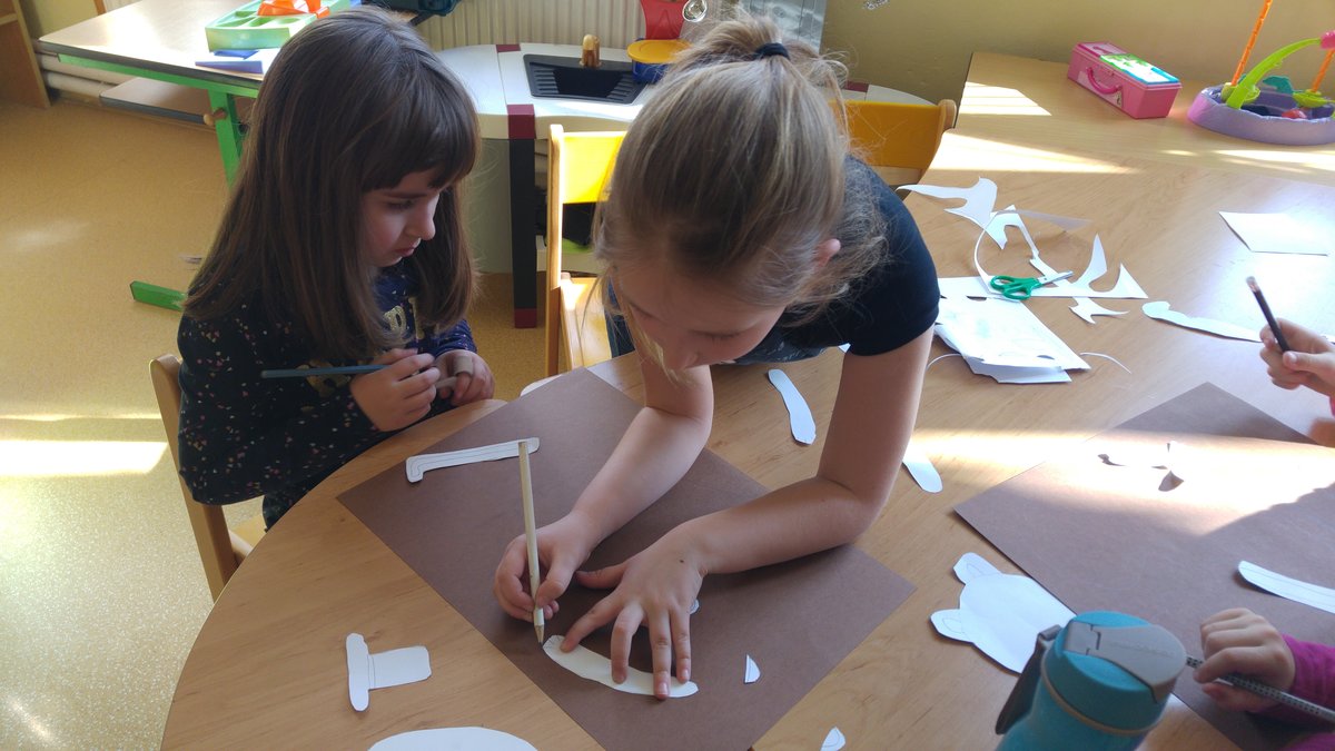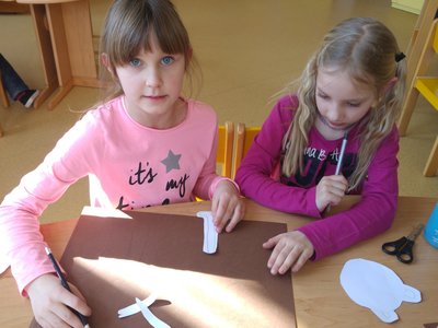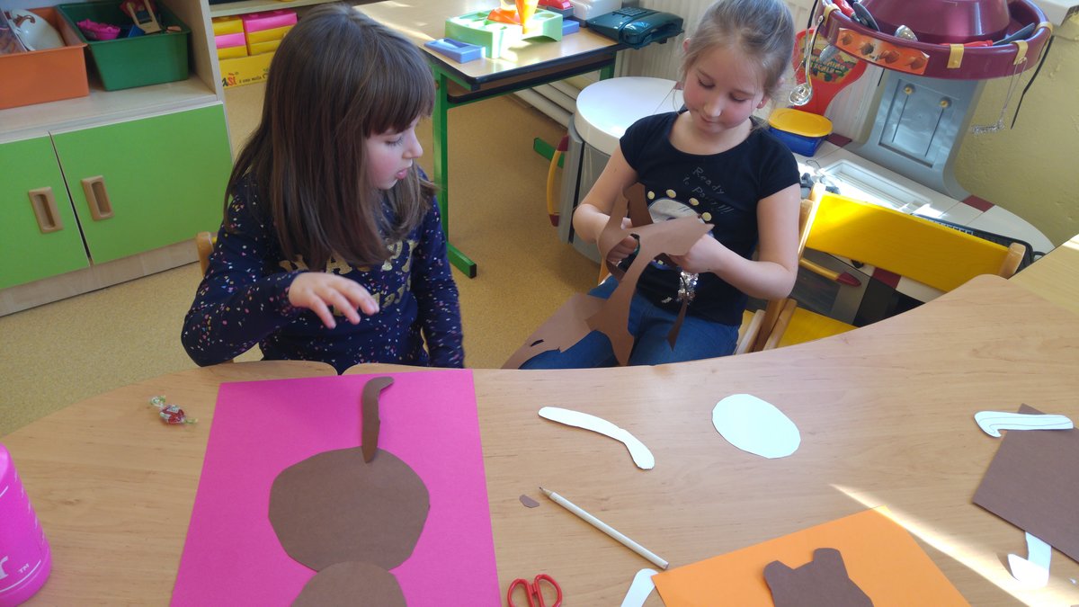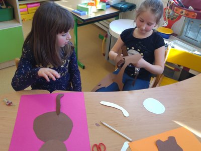 Dnes jsme vystřihávali a skládali z papíru, abychom si vyrobili krásné medvědy...