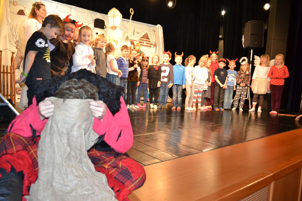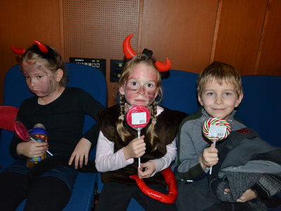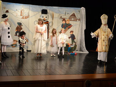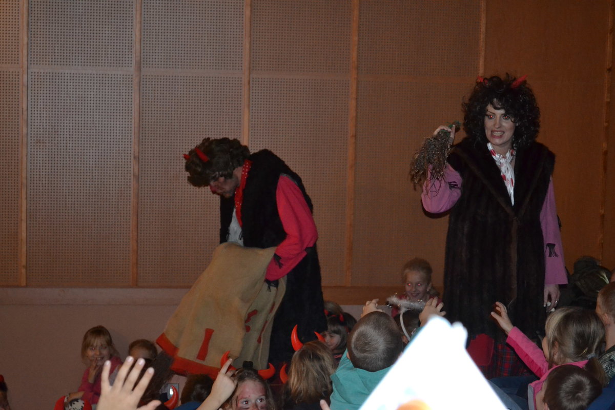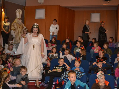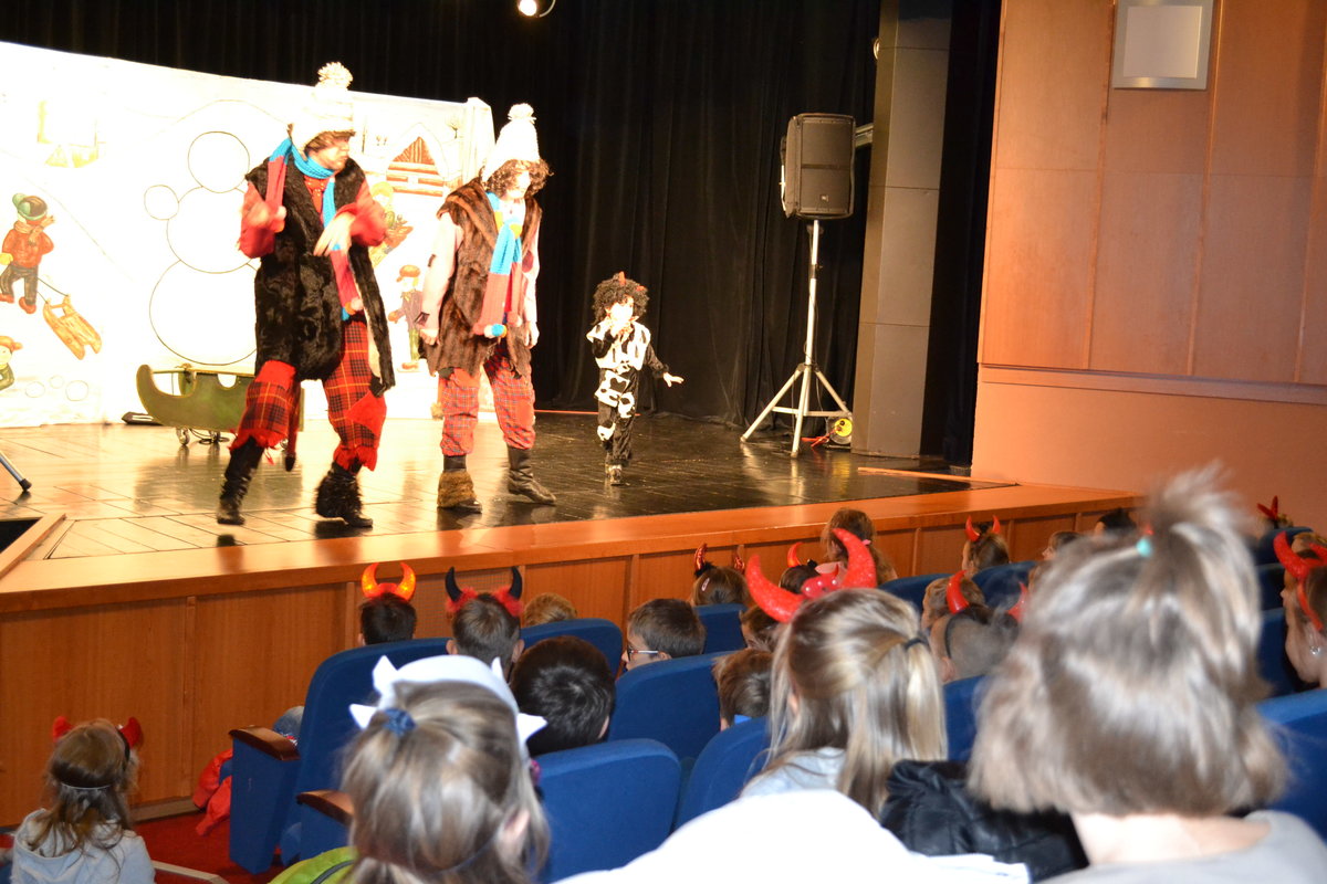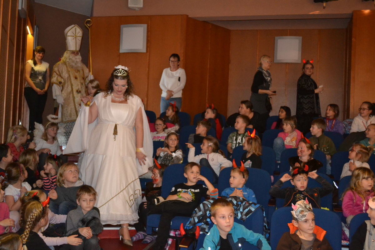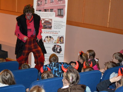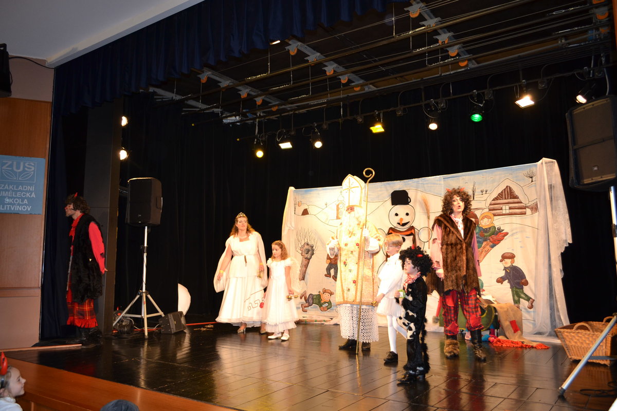 V ZUŠ JSME VIDĚLI POHÁDKU "JAK ČERTI SNĚHULICI ZACHRÁNILI" A POTOM PŘIŠEL MIKULÁŠ S ANDĚLY A ROZDÁVAL NADÍLKU. NEJPRVE JSME SI SPOLEČNĚ ZAZPÍVALI VÁNOČNÍ PÍSNĚ A UŽ SE TĚŠÍME NA ŠTĚDRÝ DEN.