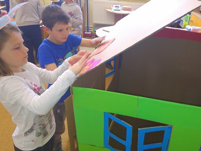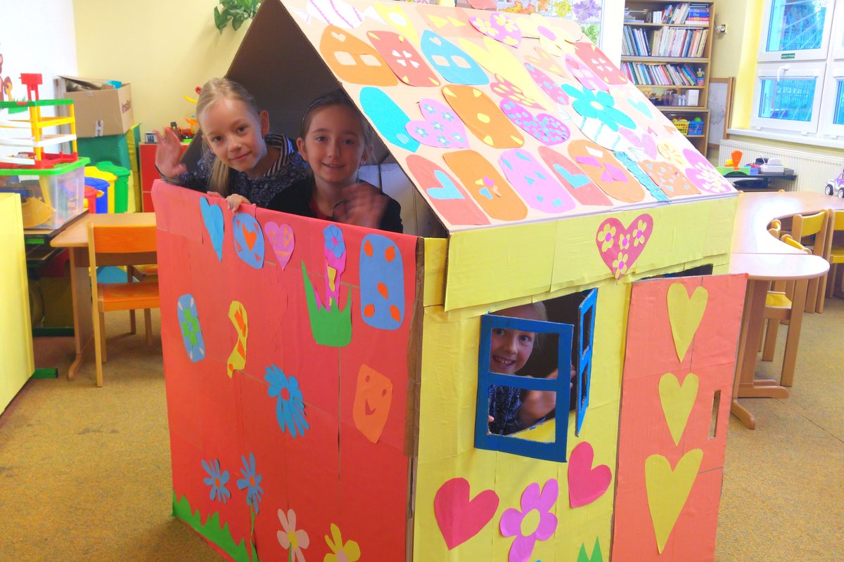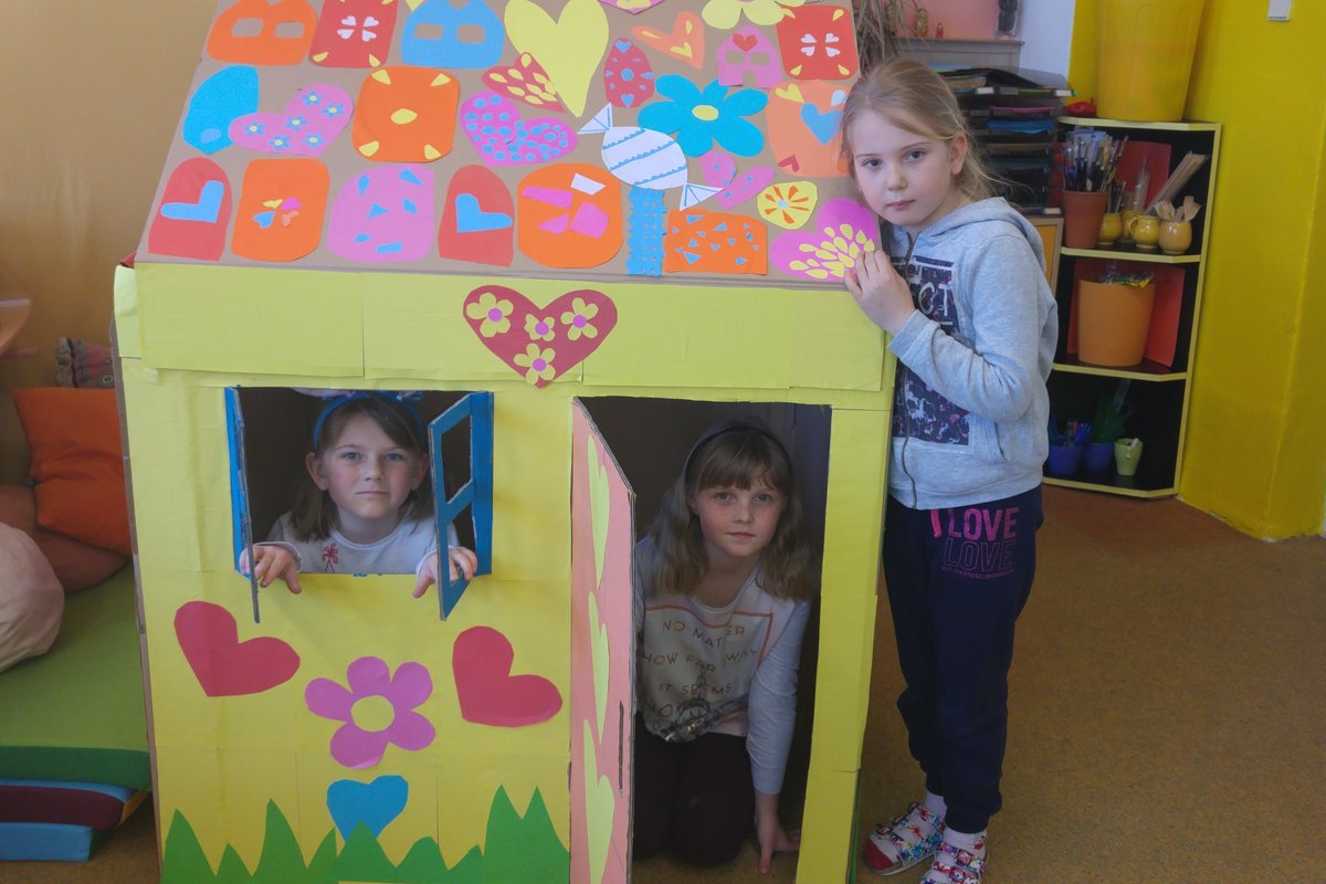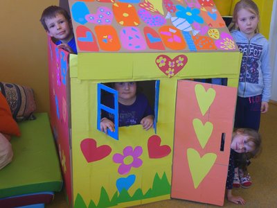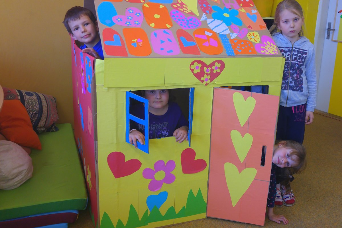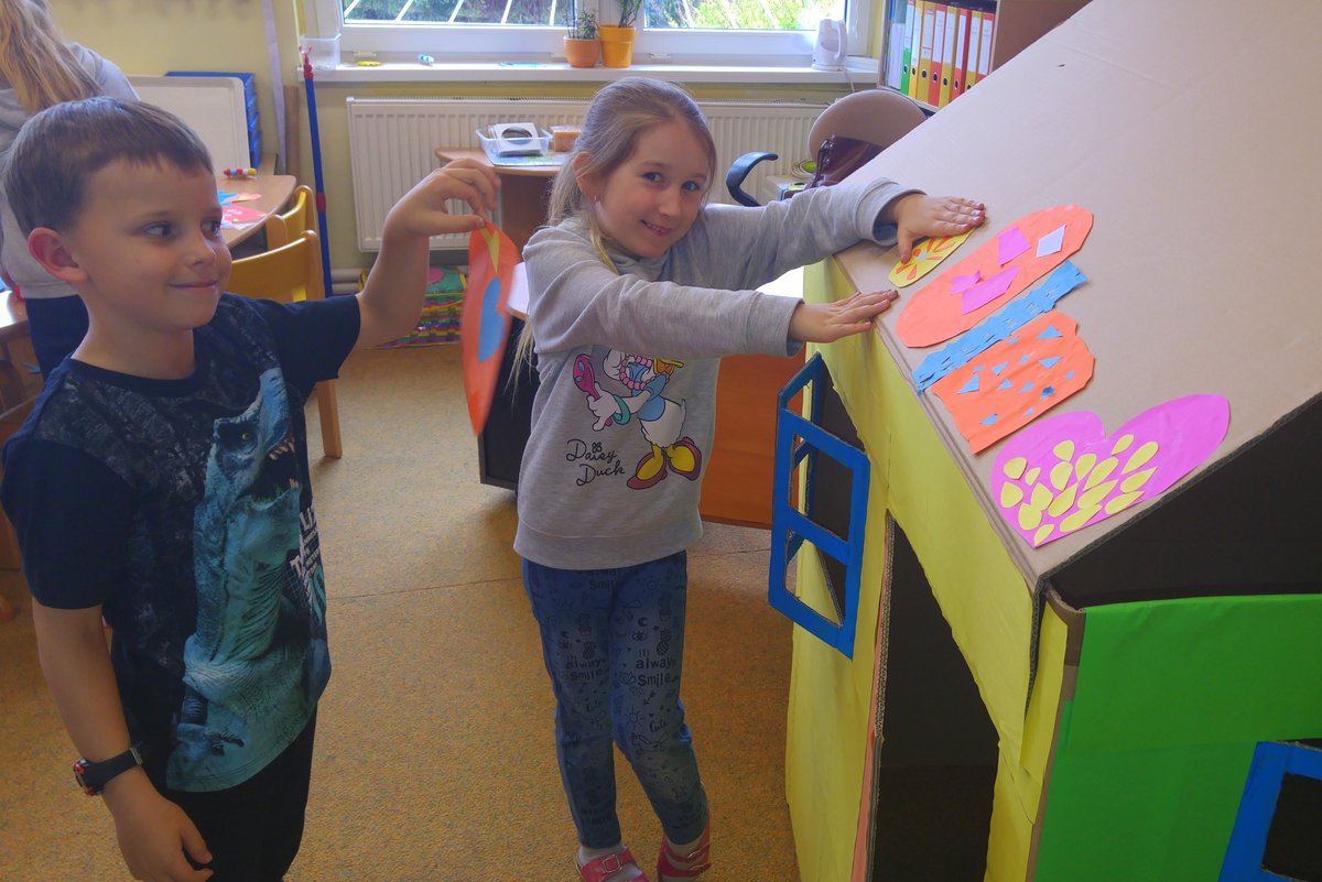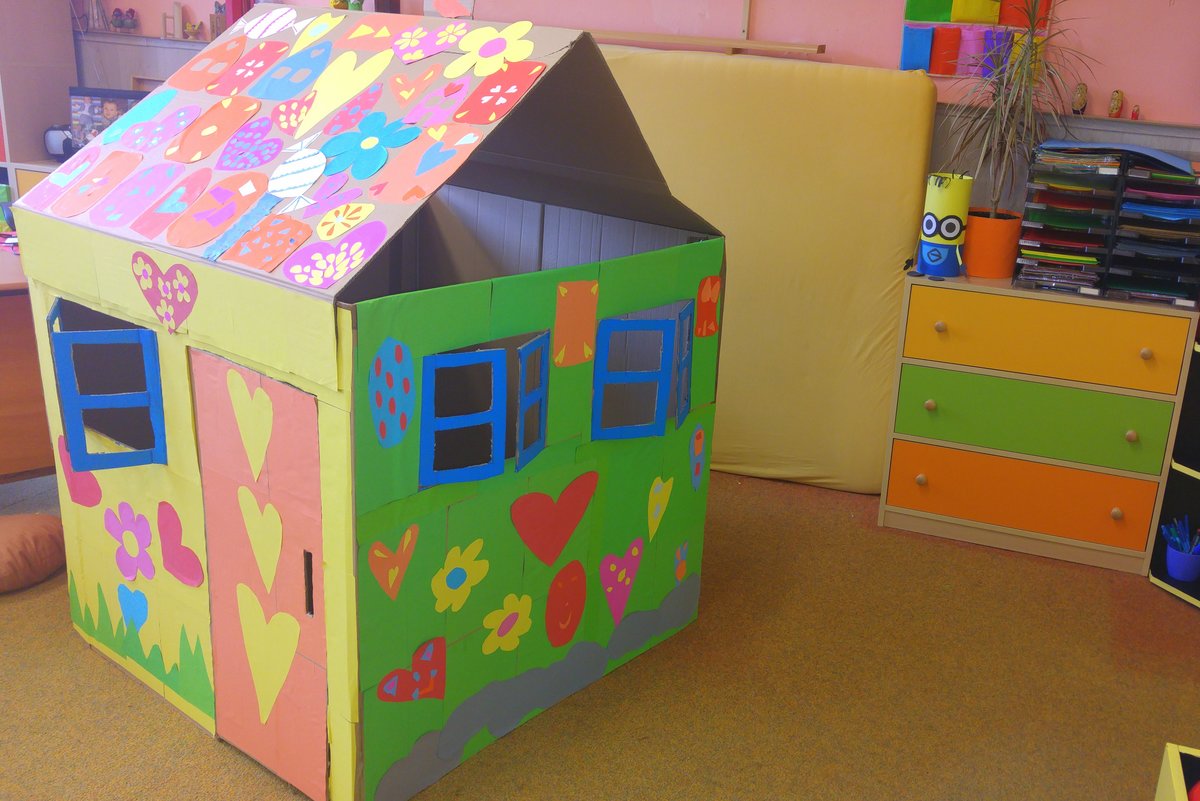 Vyrobit chaloupku s perníčky, to není jen tak! Celou jsme ji museli barevně polepit, vystříhat perníčky a ozdobit střechu i stěny.
