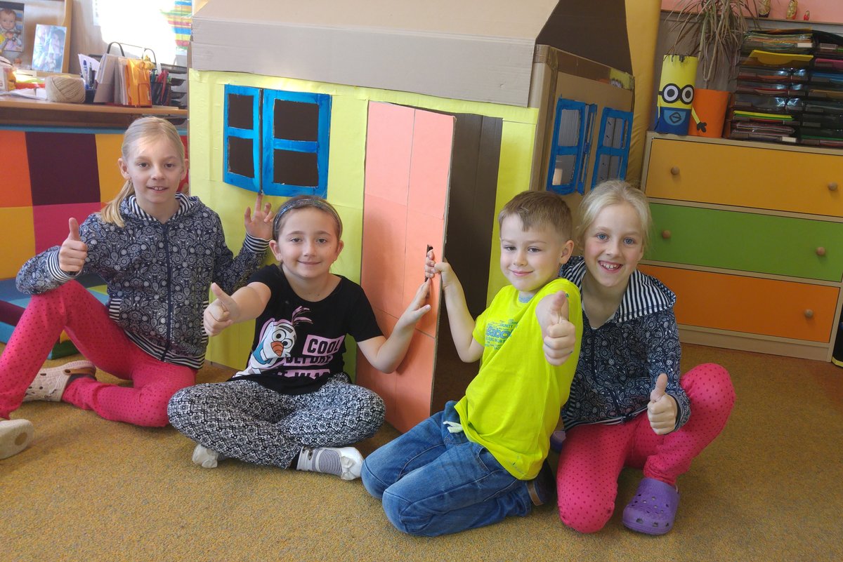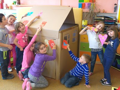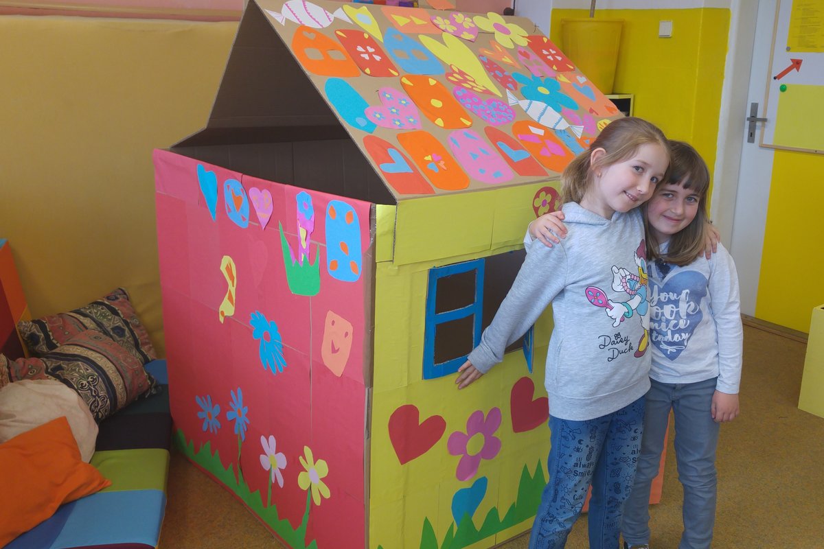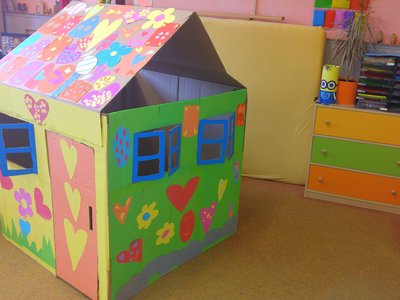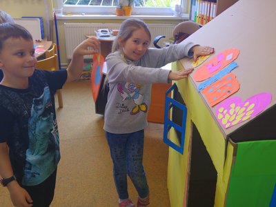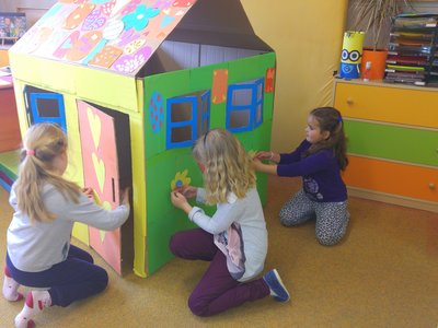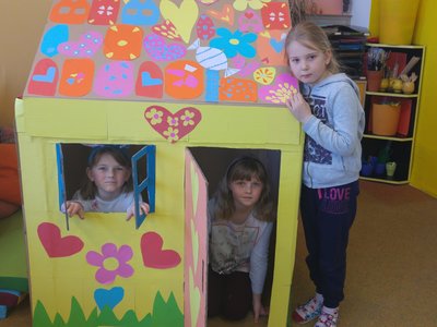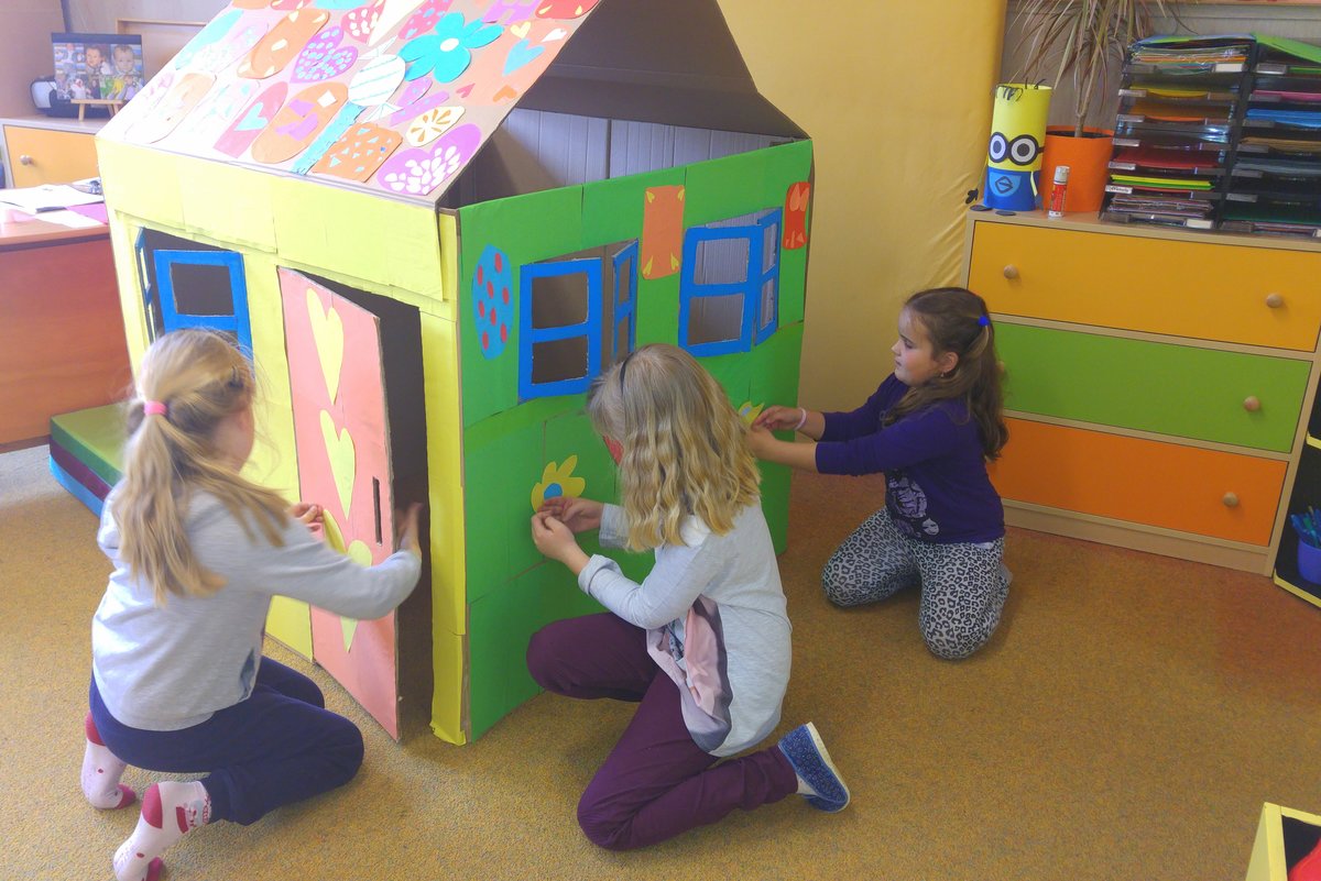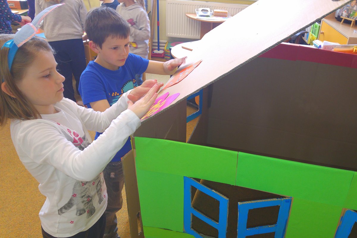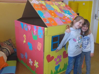 Vyrobit chaloupku s perníčky, to není jen tak! Celou jsme ji museli barevně polepit, vystříhat perníčky a ozdobit střechu i stěny.