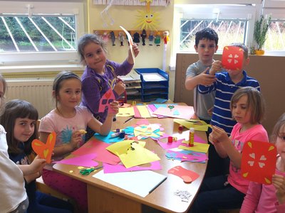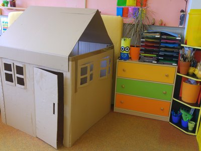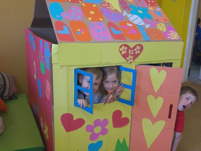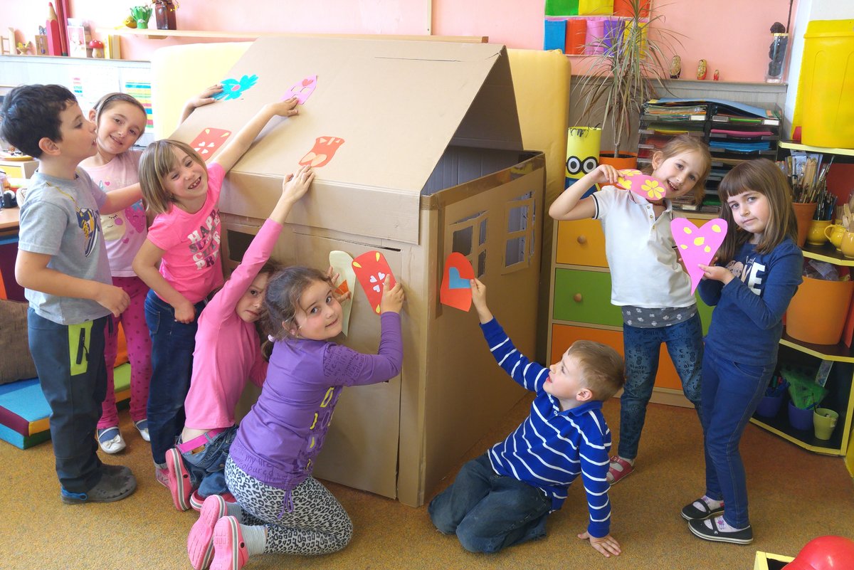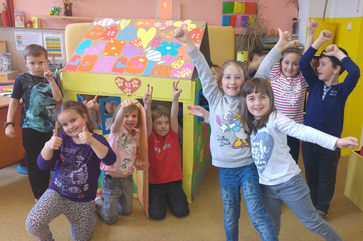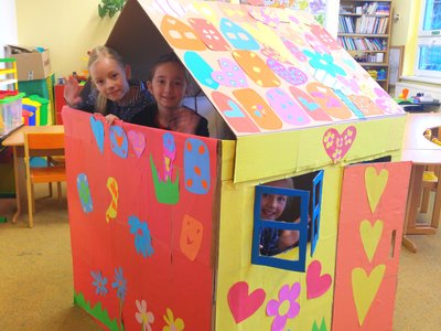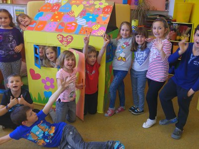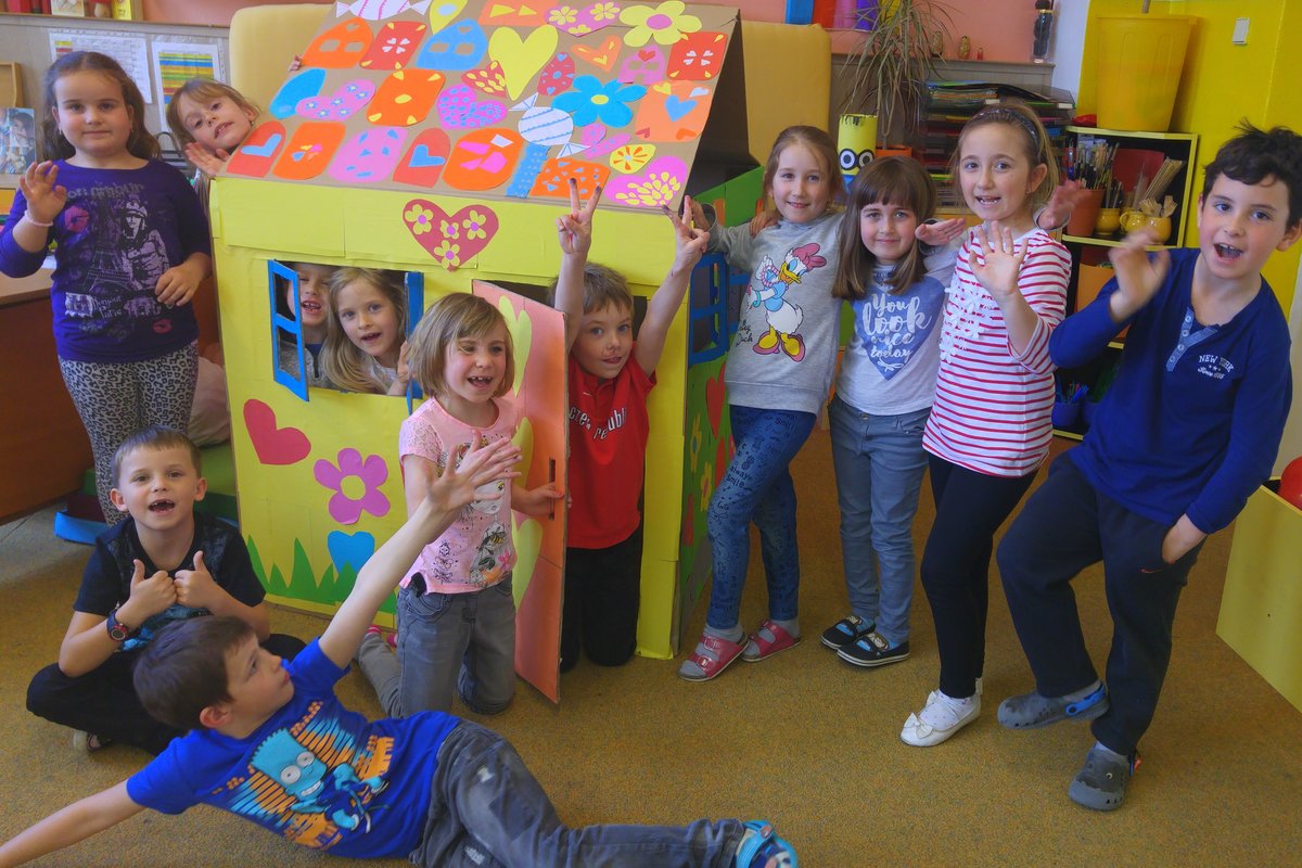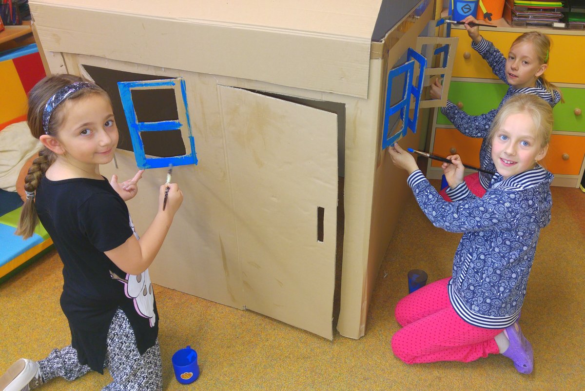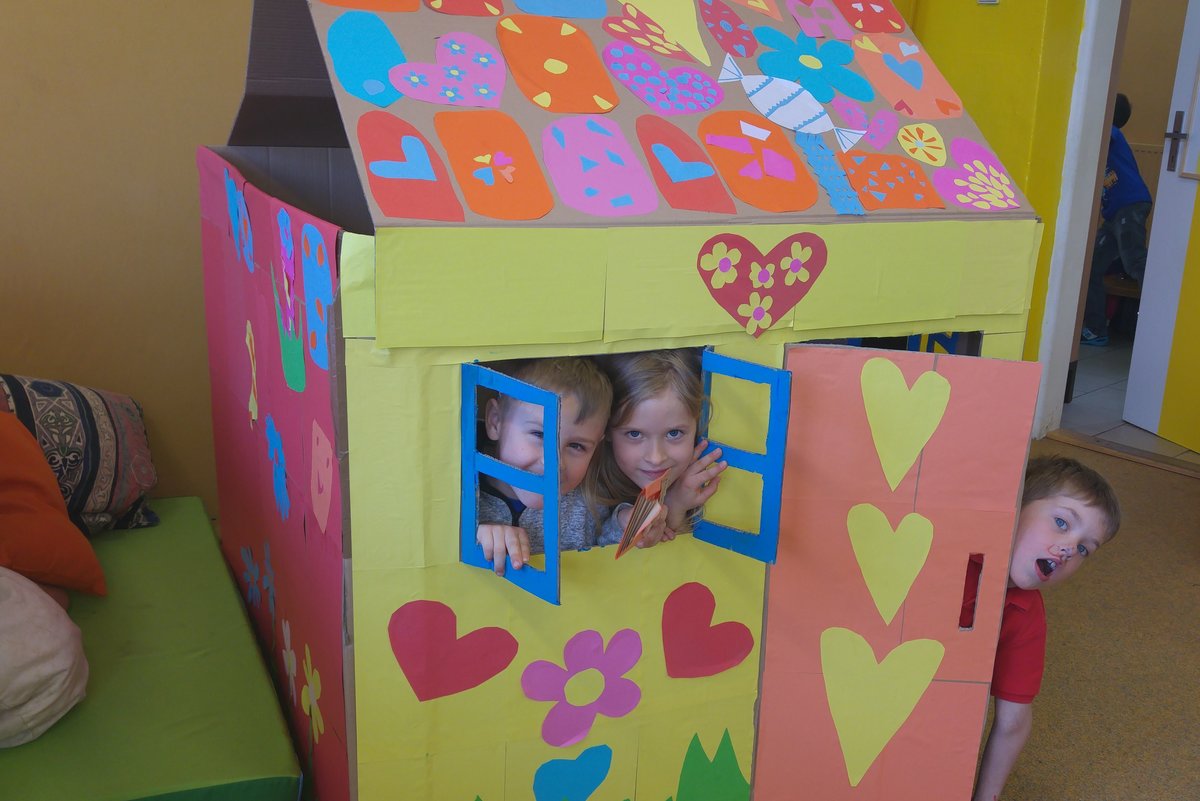 Vyrobit chaloupku s perníčky, to není jen tak! Celou jsme ji museli barevně polepit, vystříhat perníčky a ozdobit střechu i stěny.
