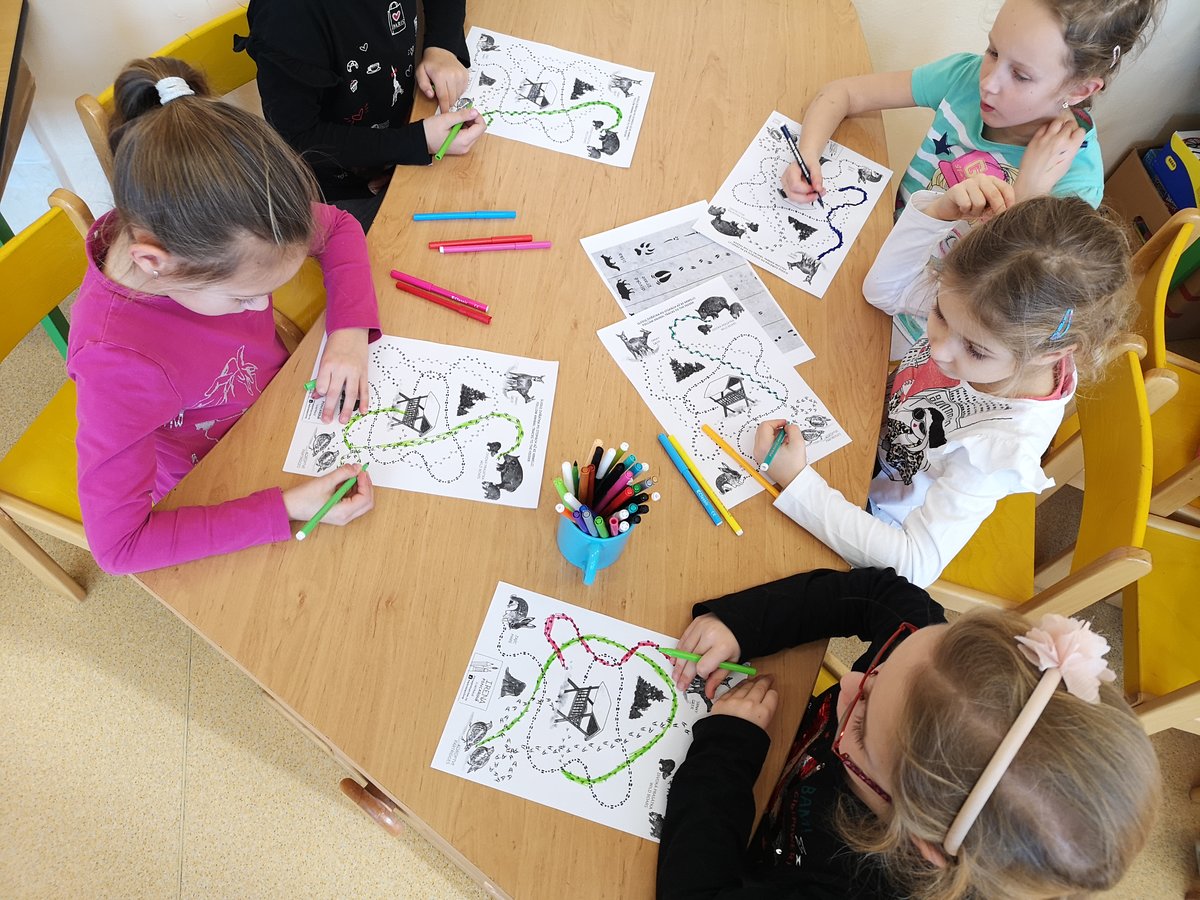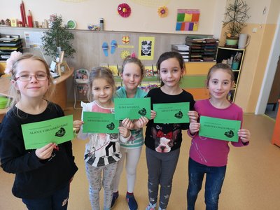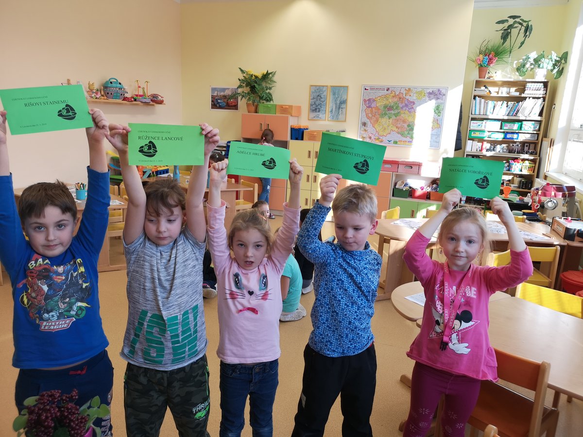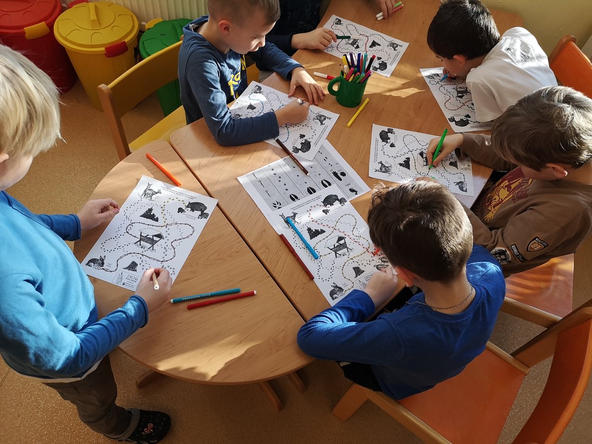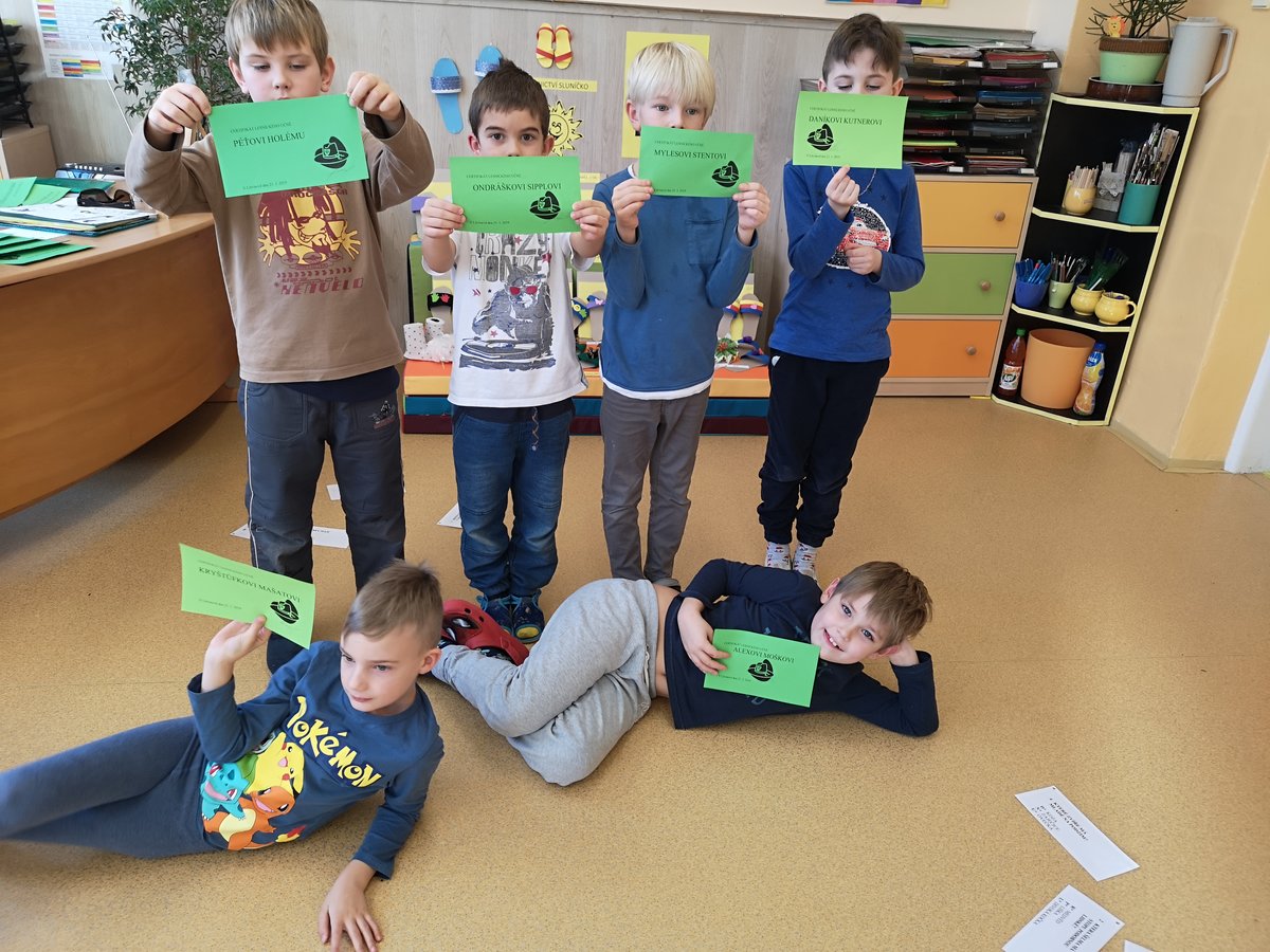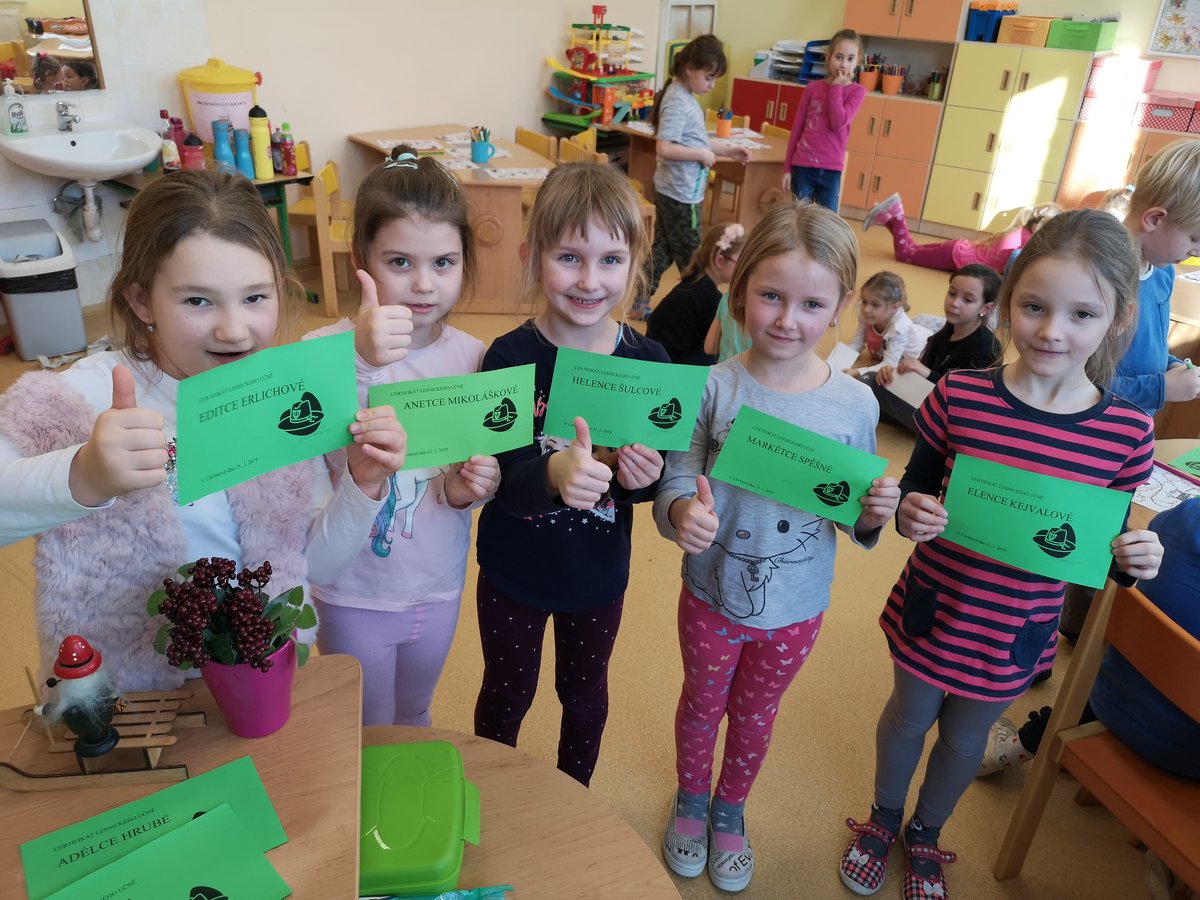 Poznáváme lesní zvířátka i jejich stopy a známe odpovědi na otázky ze života v lese. Za splnění jsme všichni získali certifikát lesního učně.