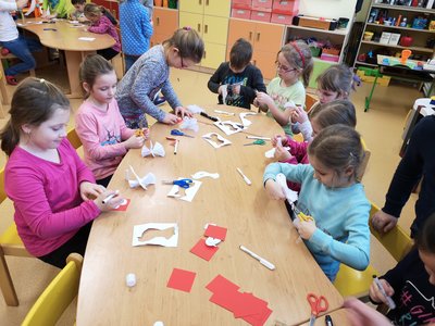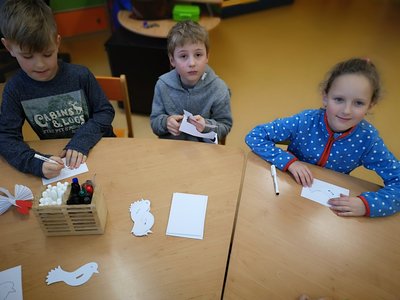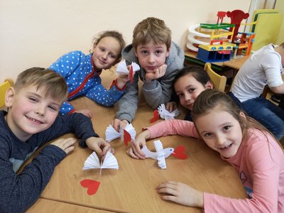 Dnes jsme vyráběli poštovní holoubky s Valentýnským pozdravem.