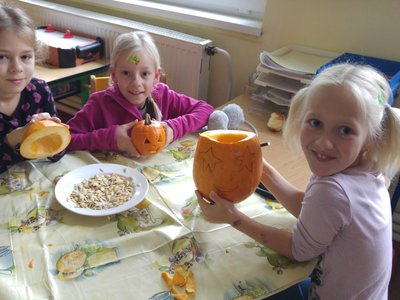 Vyrábíme dýňové svícny, dlabeme dýně a učíme se strašit.....