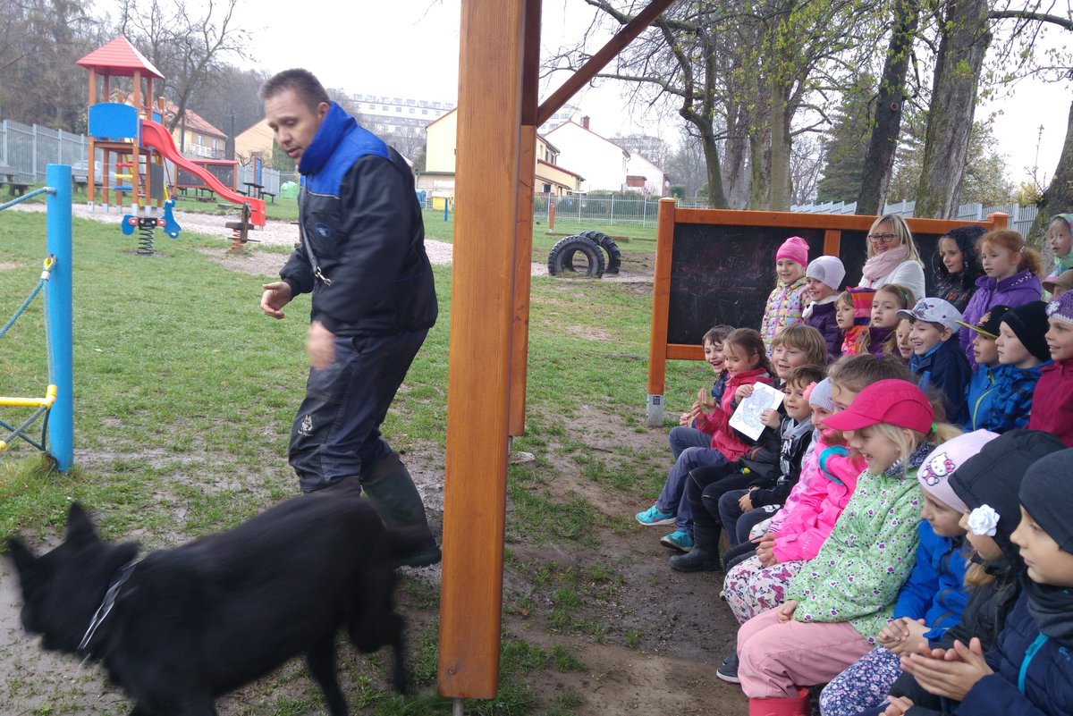 Dnes nás navštívila Městská policie se svými pejsky, kteří nám ukazali svou poslušnost a důležitost při hledání pachatelů .....