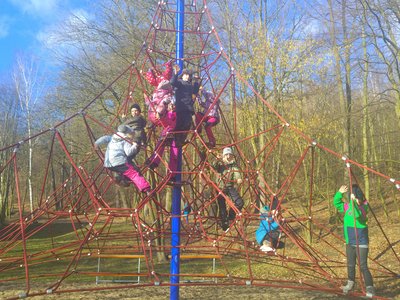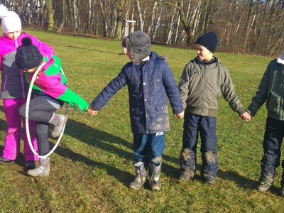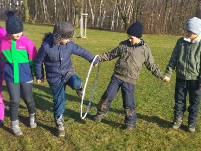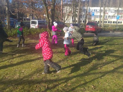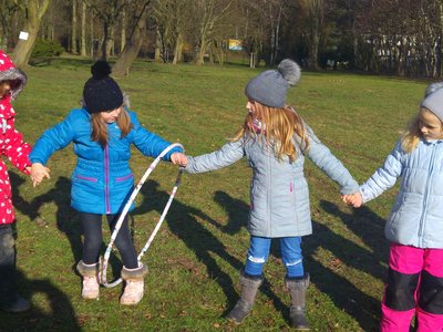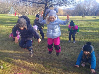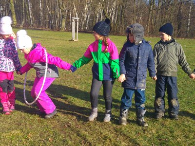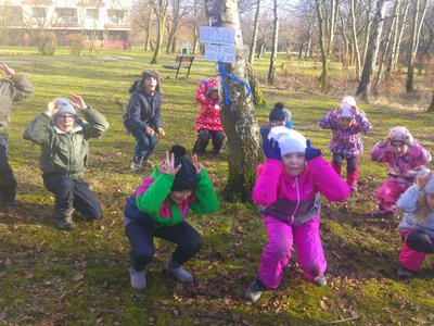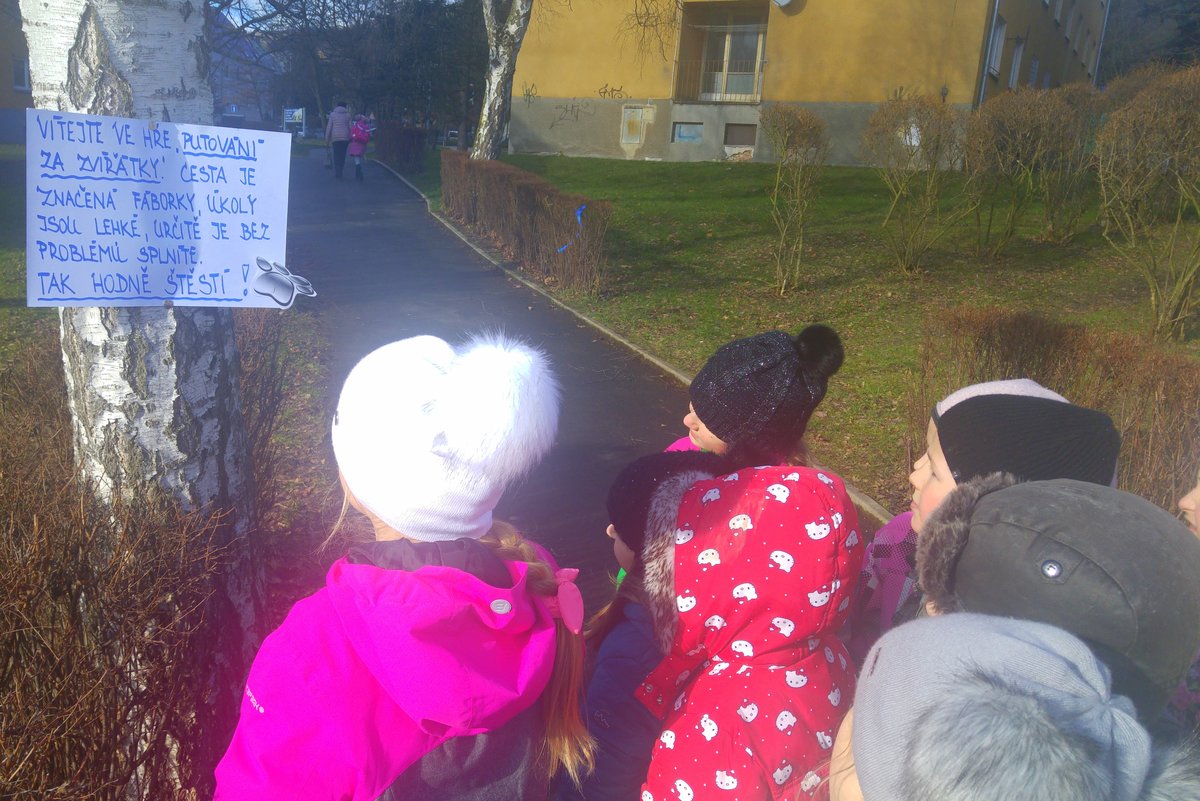 Dnešní počasí nám přálo a cesta za zvířátky byla veselá a hravá. Moc děkujeme modré družince za přípravu jednotlivých úkolů.