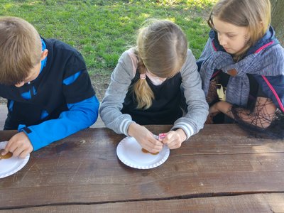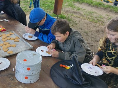 z připravených disciplím. Nechybělo ani opékání špekáčků a na závěr jsme spálili černé vejce se špatnými vlastnostmi a zazpívali si písně u táborového ohně.