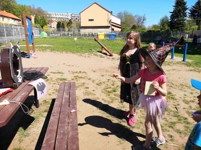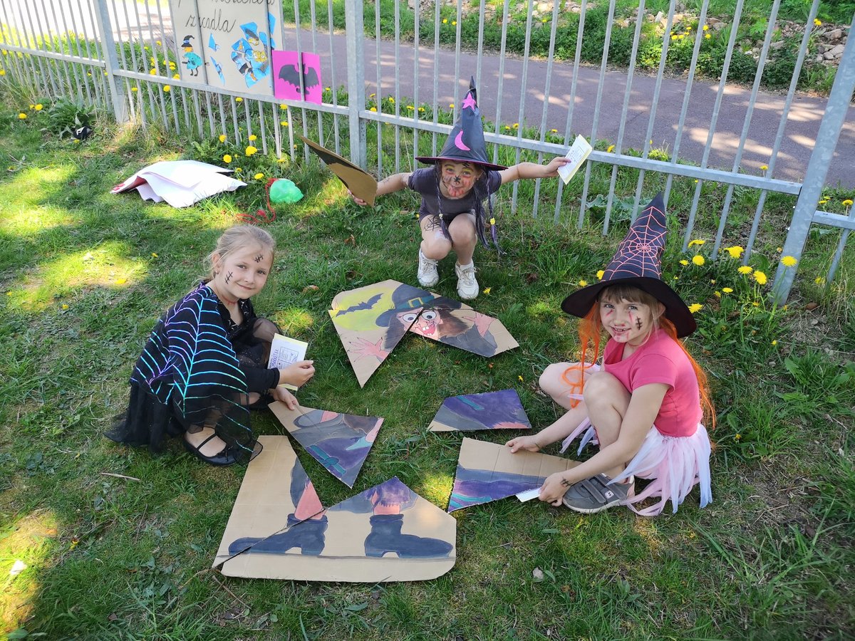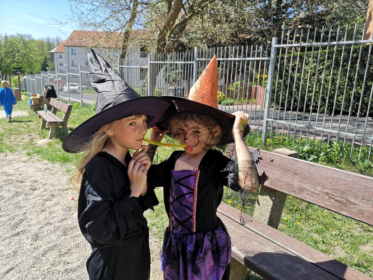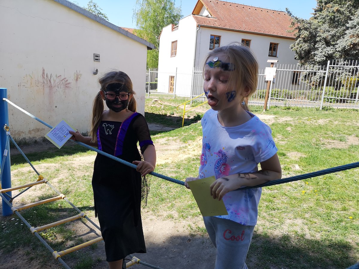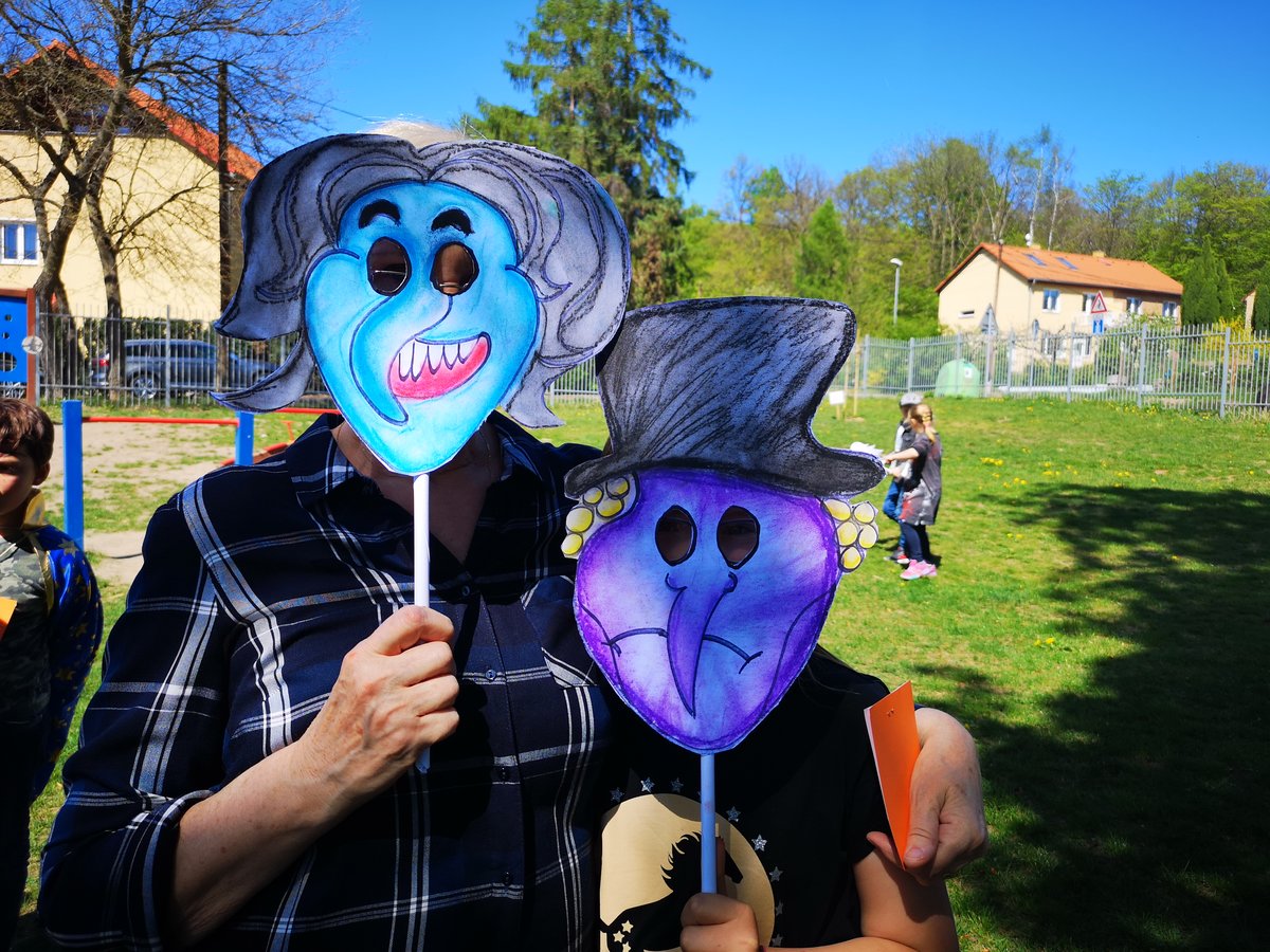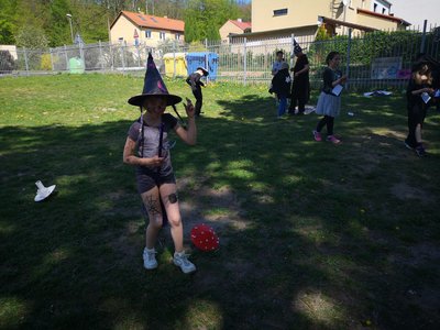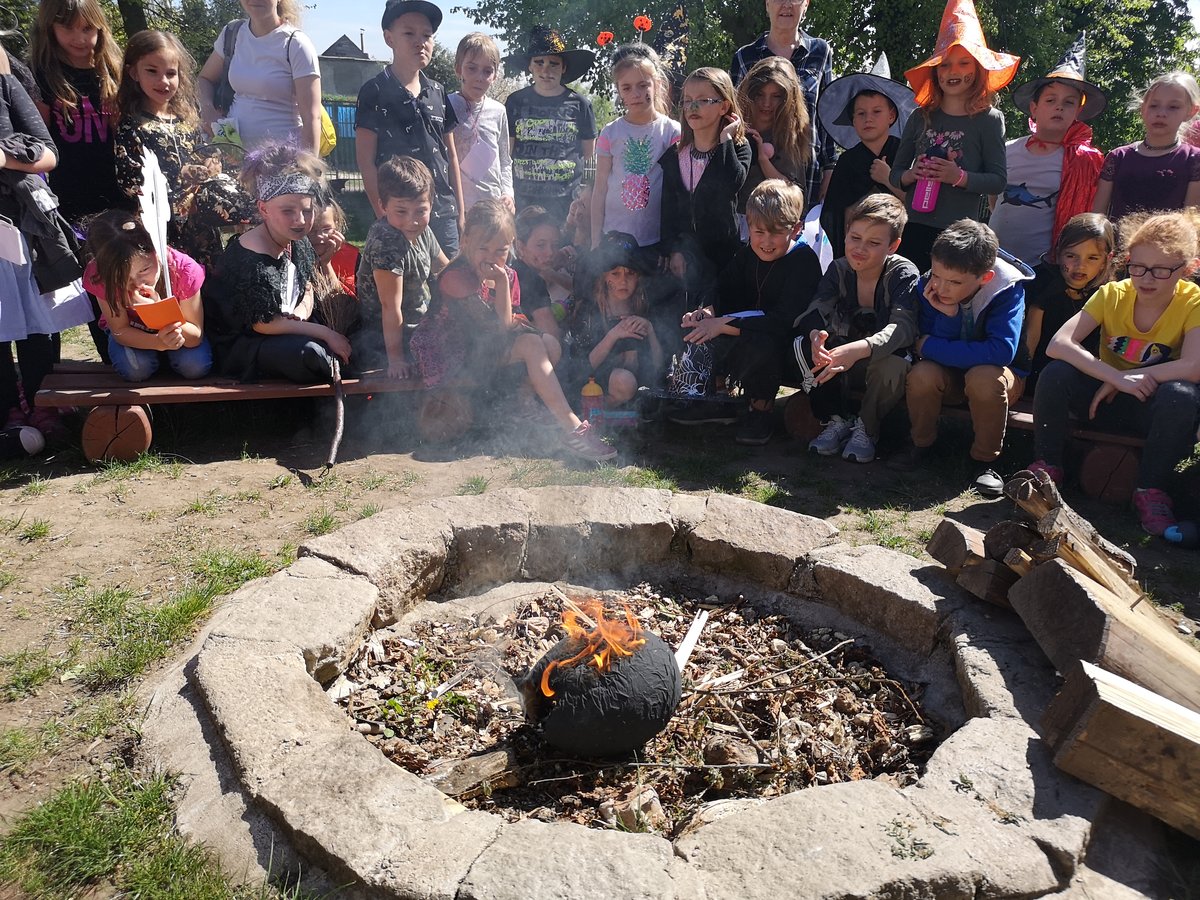 Dnešní počasí nám přálo a tak mohli všichni lovit pavouky, překusovat žížaly, lítat na koštěti a plnit ostatní úkoly. V závěru jsme spálili všechny špatné vlastnosti v černém vejci a zazpívali jsme si za doprovodu paní učitelky Martinky. Děkujeme paní učitelce a všem žákům z 5.C za přípravu stanovišť a obsluhu u jednotlivých úkolů.