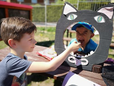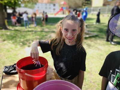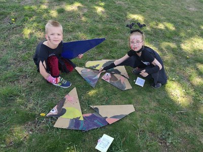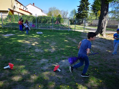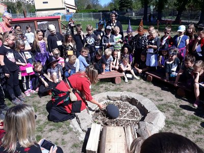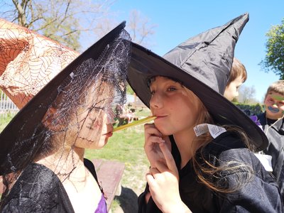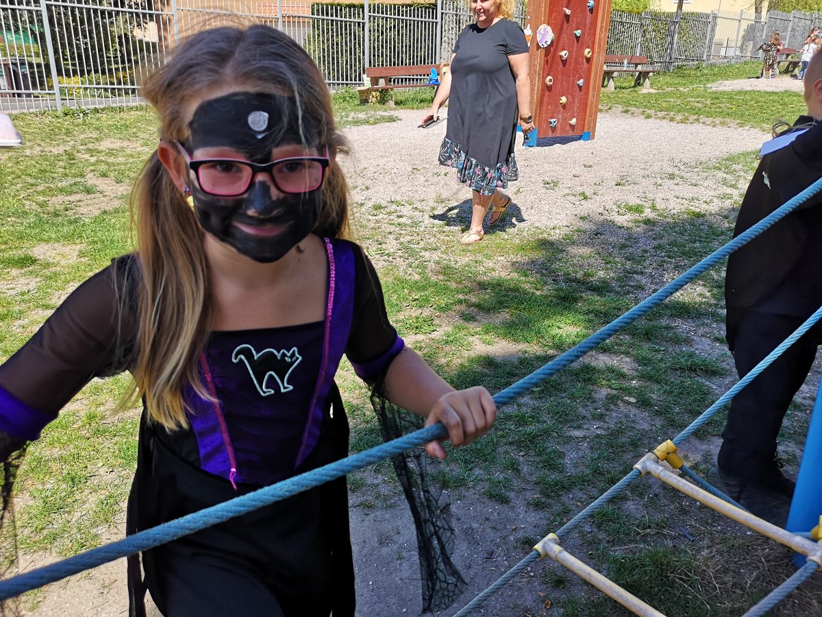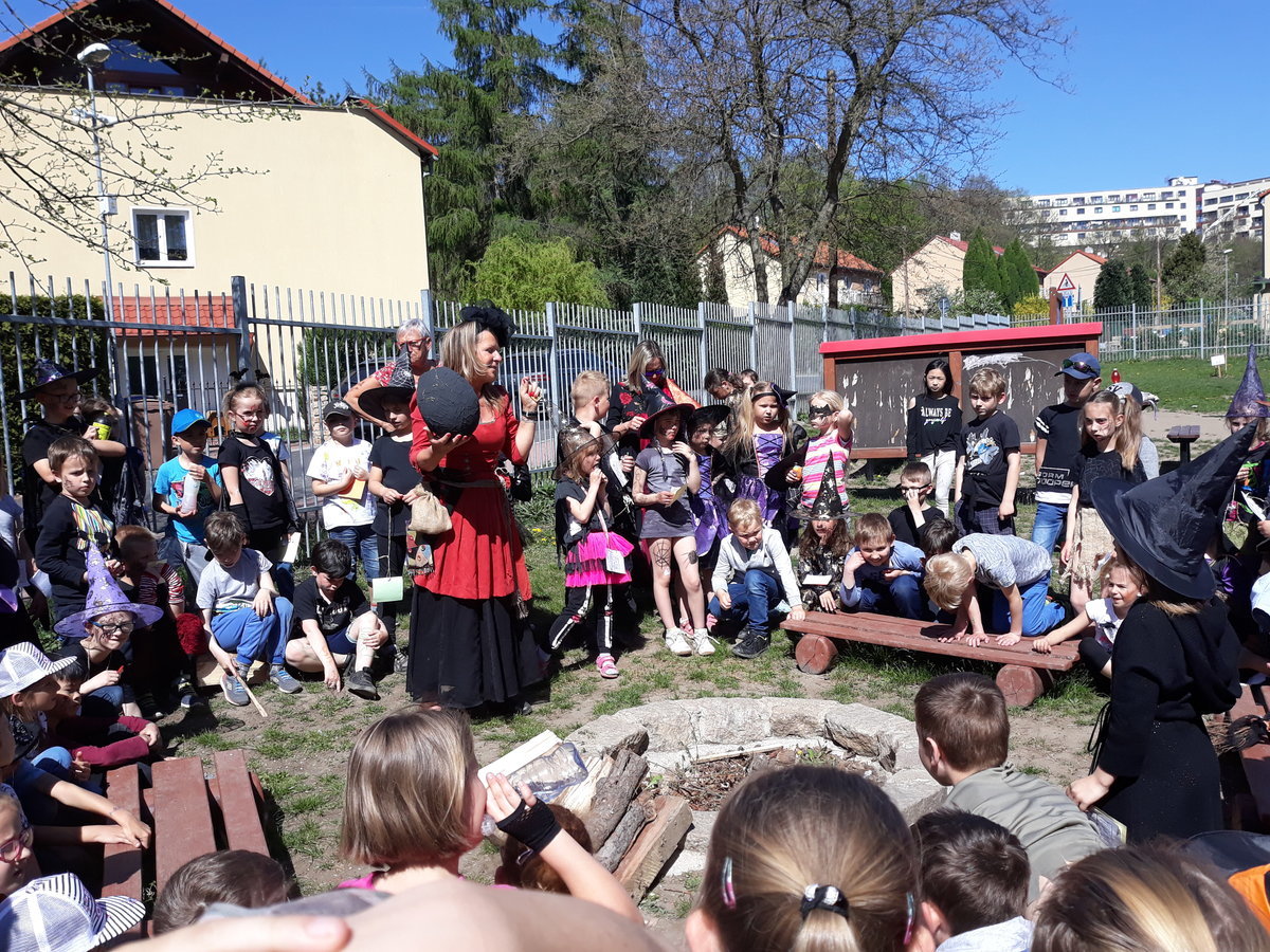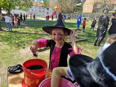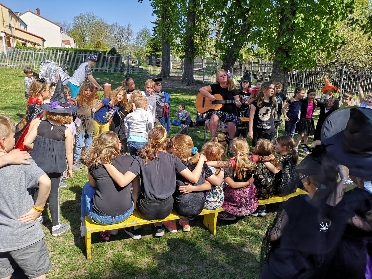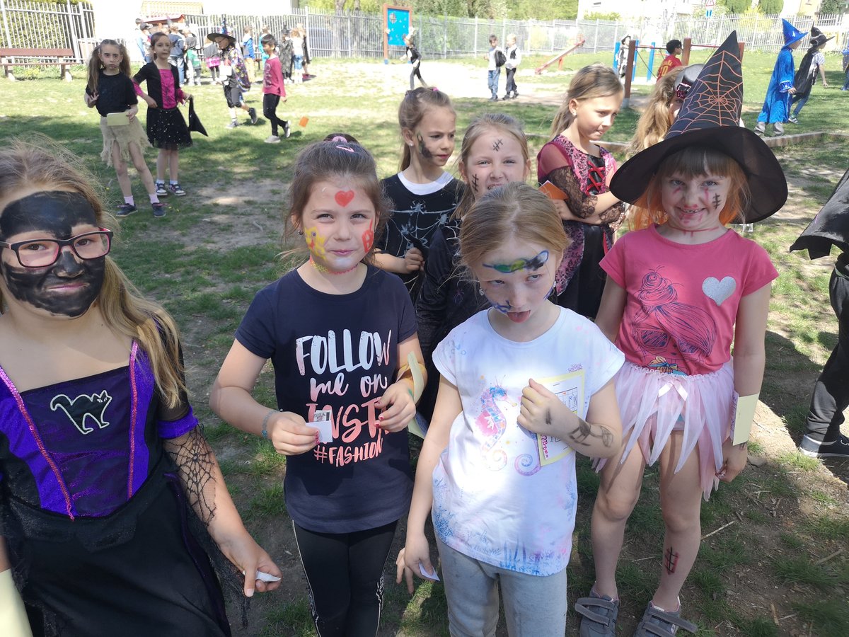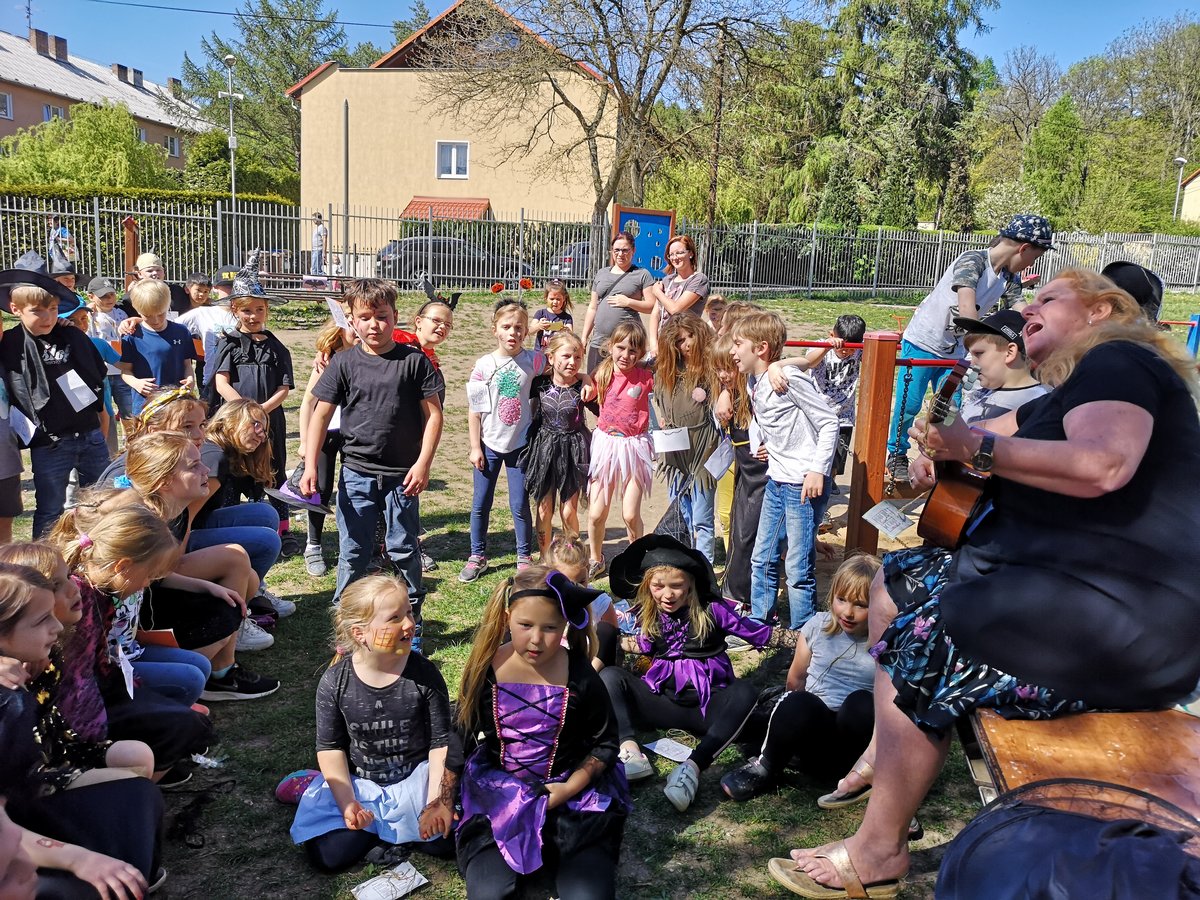 Dnešní počasí nám přálo a tak mohli všichni lovit pavouky, překusovat žížaly, lítat na koštěti a plnit ostatní úkoly. V závěru jsme spálili všechny špatné vlastnosti v černém vejci a zazpívali jsme si za doprovodu paní učitelky Martinky. Děkujeme paní učitelce a všem žákům z 5.C za přípravu stanovišť a obsluhu u jednotlivých úkolů.