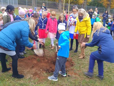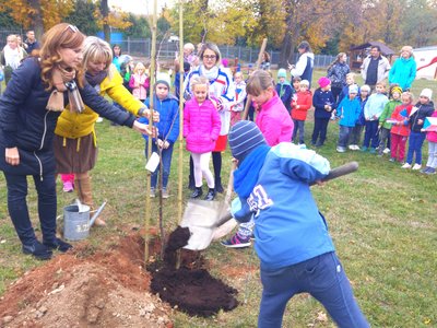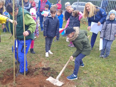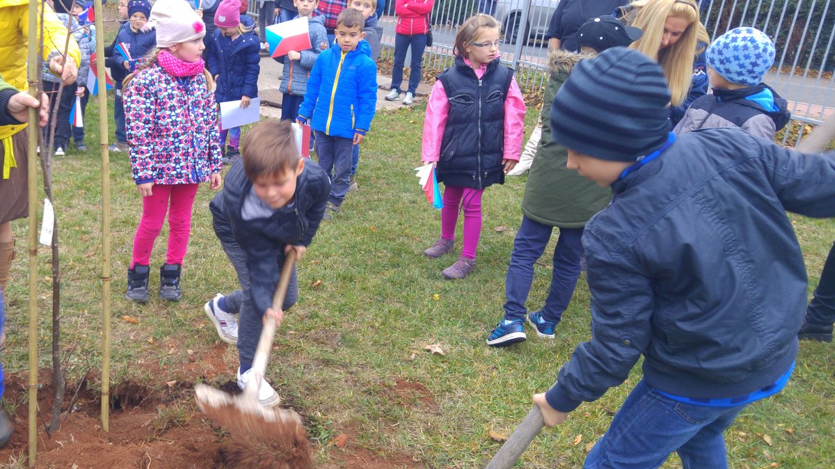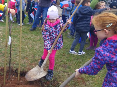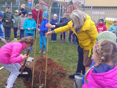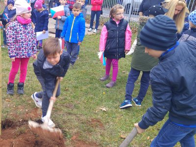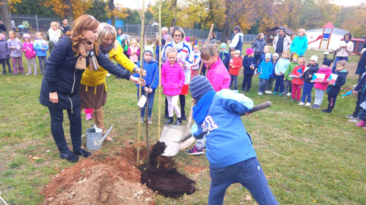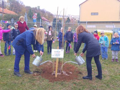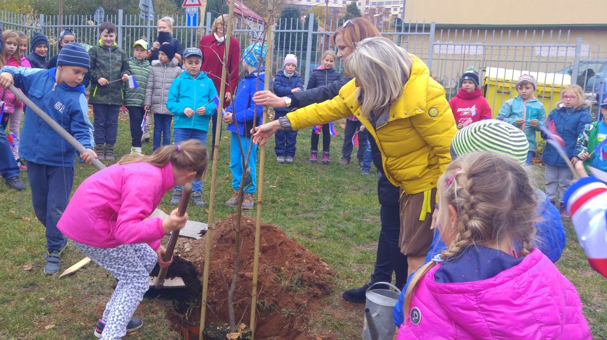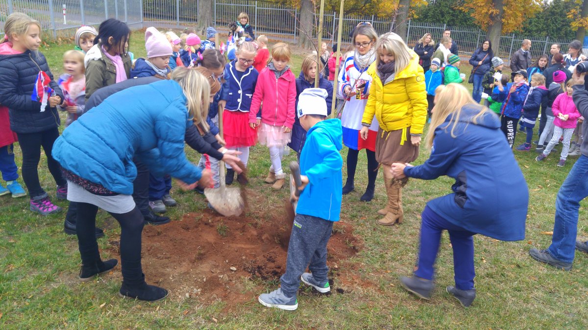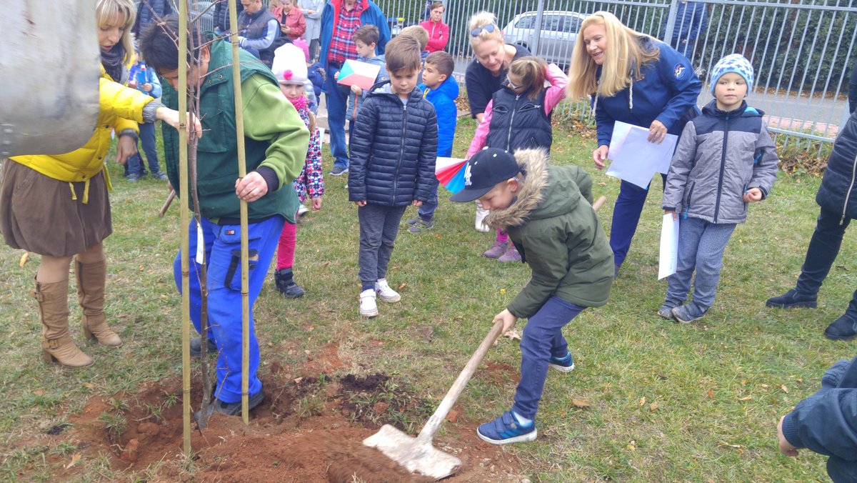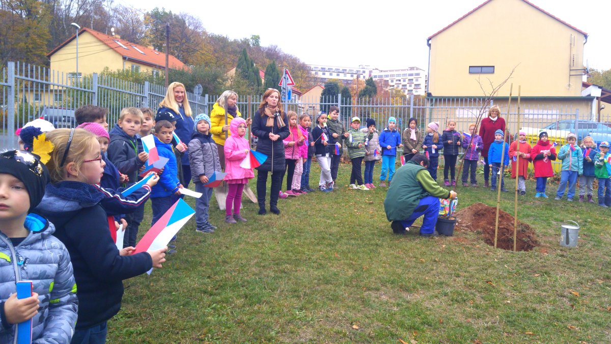 Dnes jsme zasadili náš národní strom, který budeme pravidelně zalévat a bude nám vždy připomínat 100leté narozeniny naší republiky.
