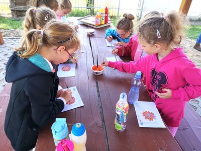 Vyráběli jsme sluníčka pro naše maminky k svátku.
