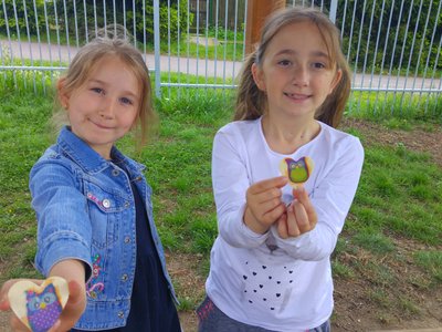 Maminkám k svátku jsme vyráběli srdíčka z lásky...