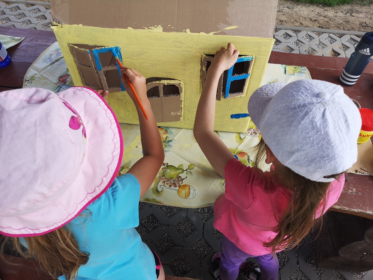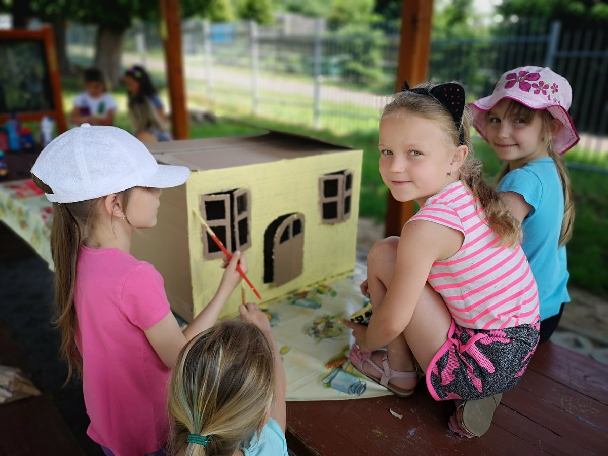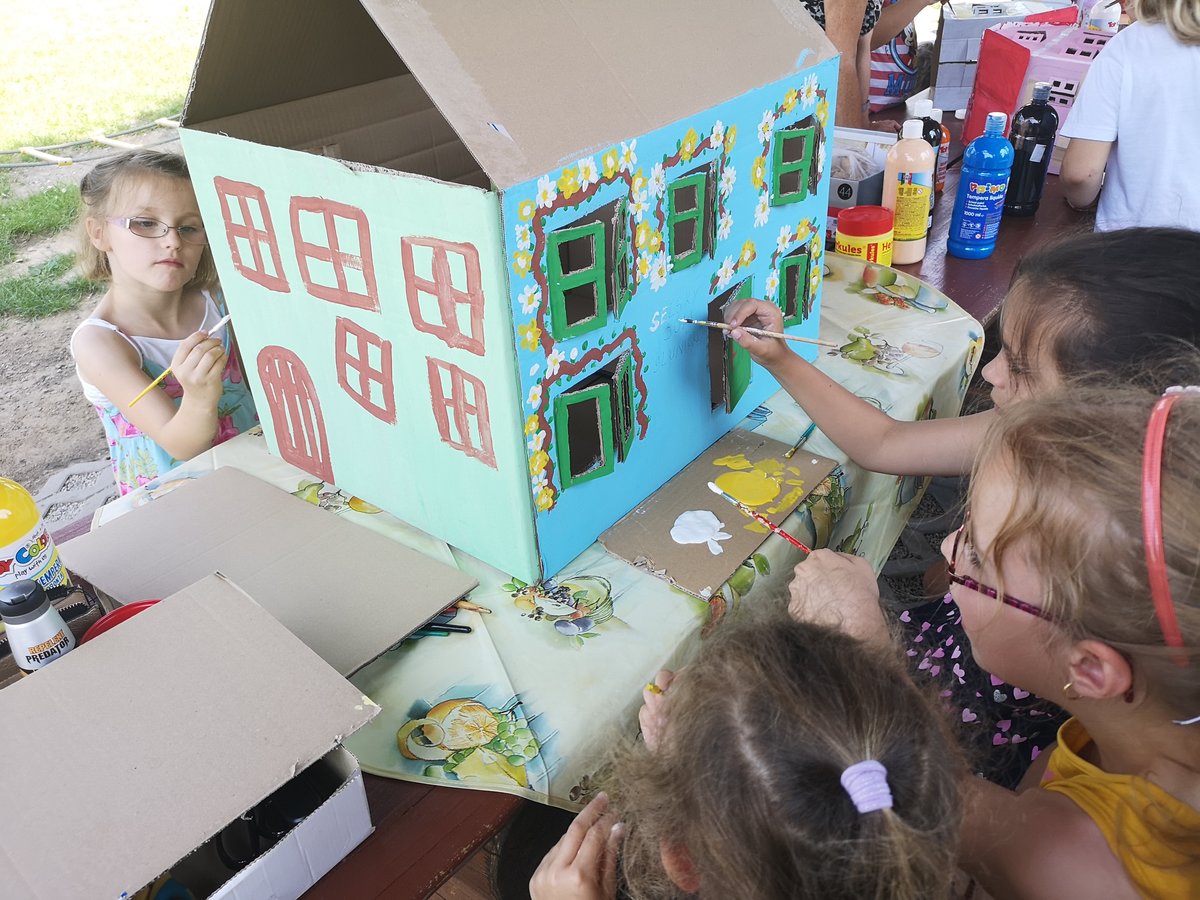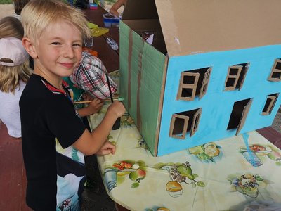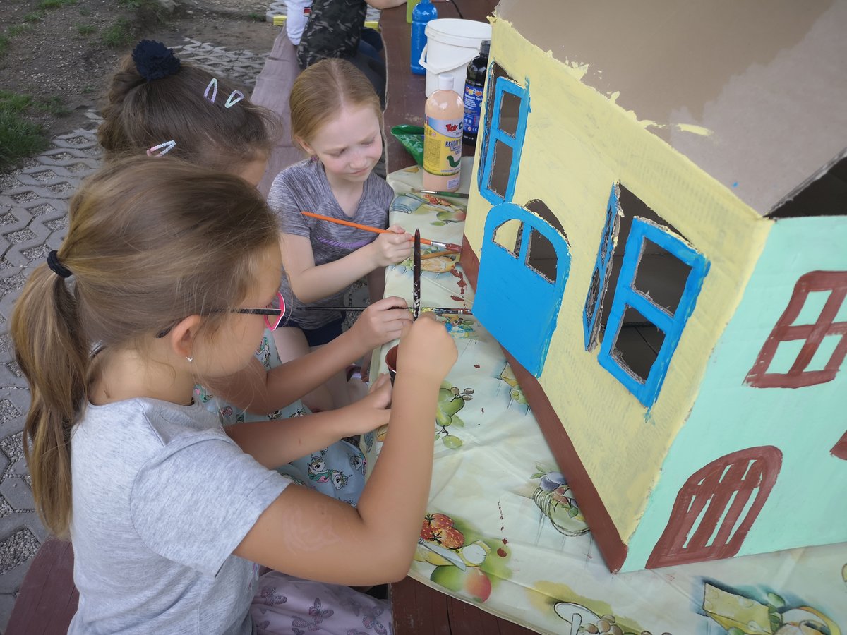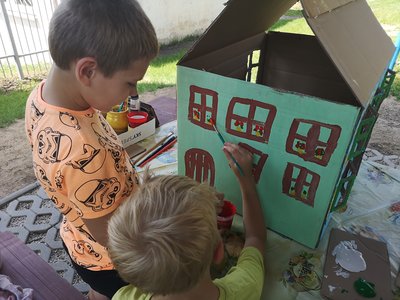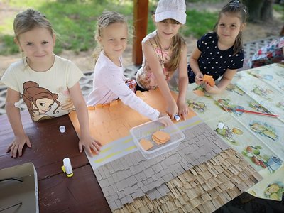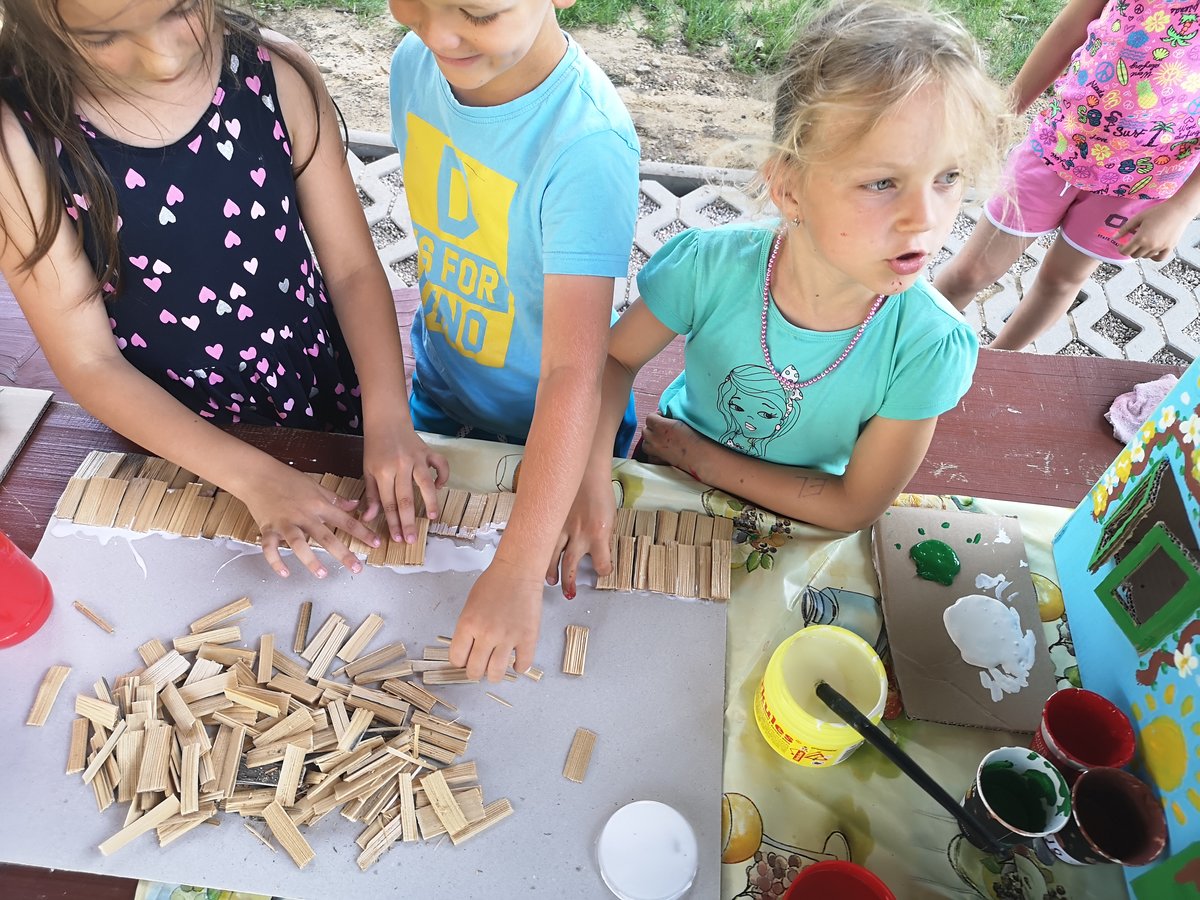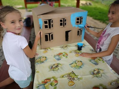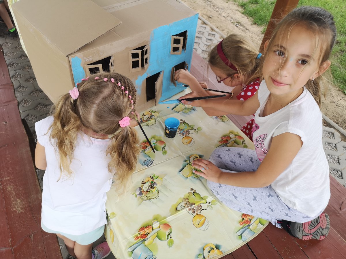 Porovnávali jsme domy moderní s těmi, ve kterých ještě bydleli babičky a dědečkové. Každá družinka vyrobila nějaký dům na výstavu a krášlí nám šatnu družinky.