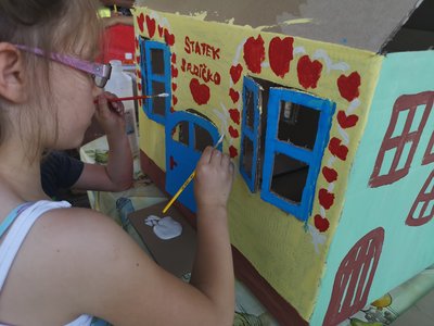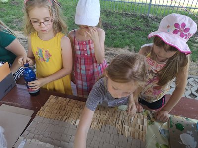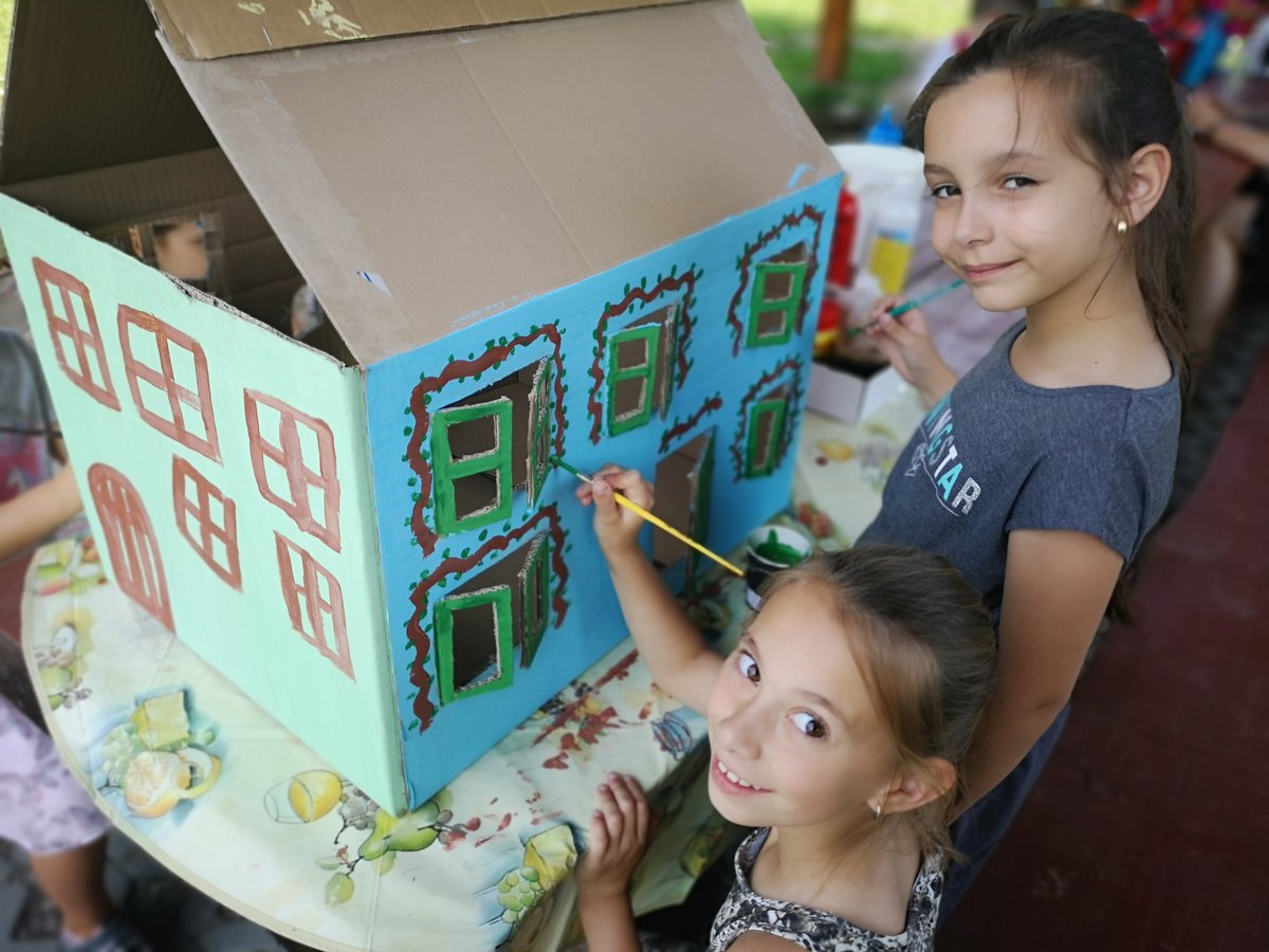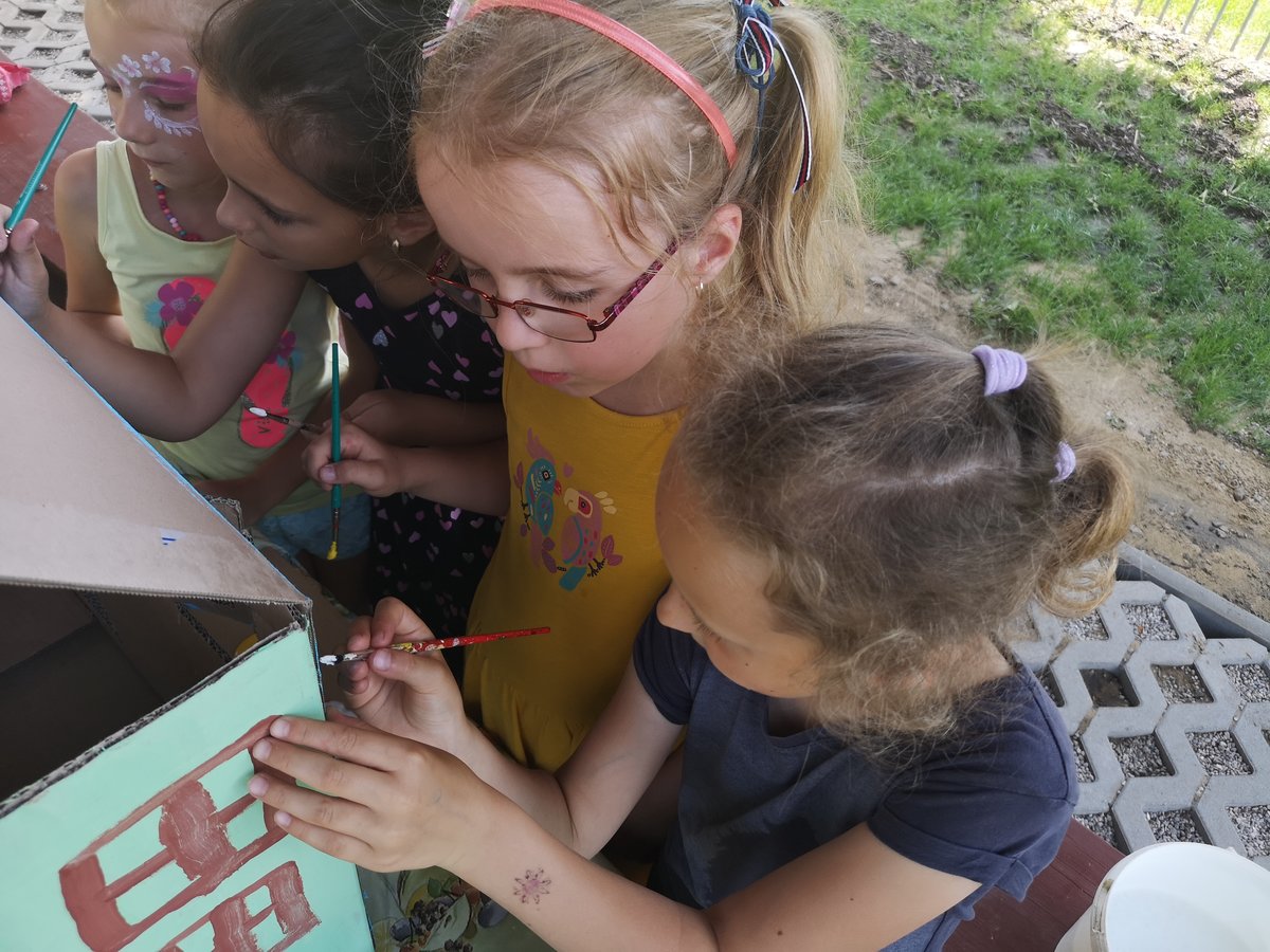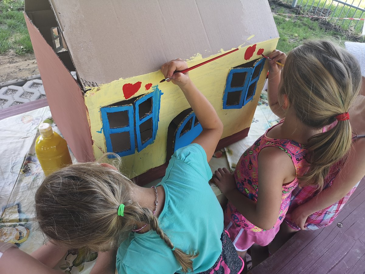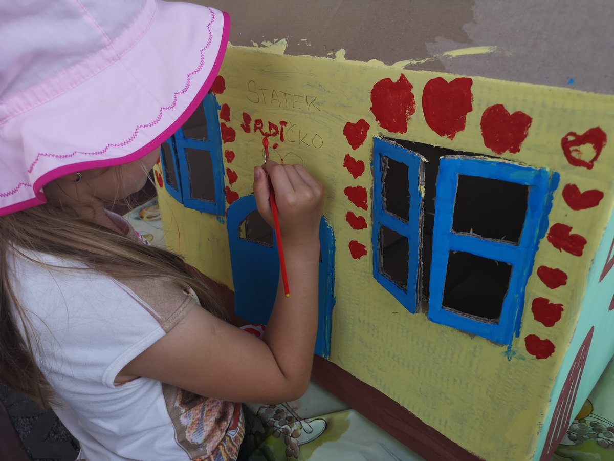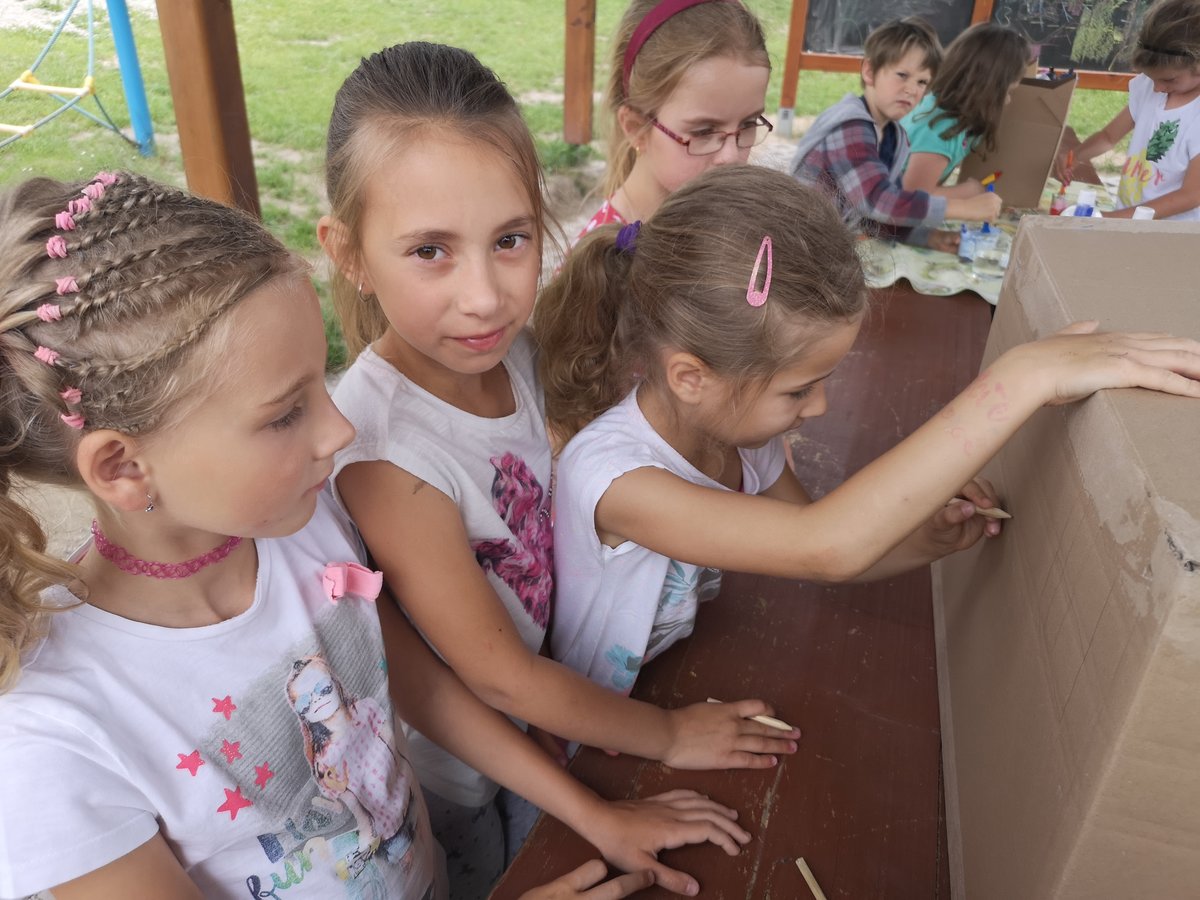 Porovnávali jsme domy moderní s těmi, ve kterých ještě bydleli babičky a dědečkové. Každá družinka vyrobila nějaký dům na výstavu a krášlí nám šatnu družinky.