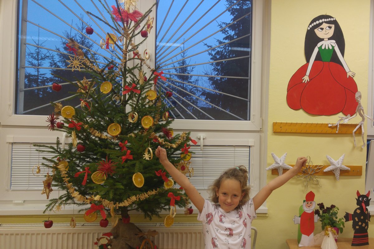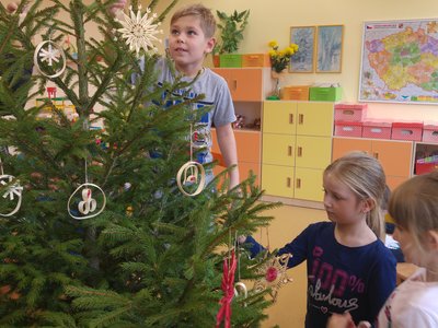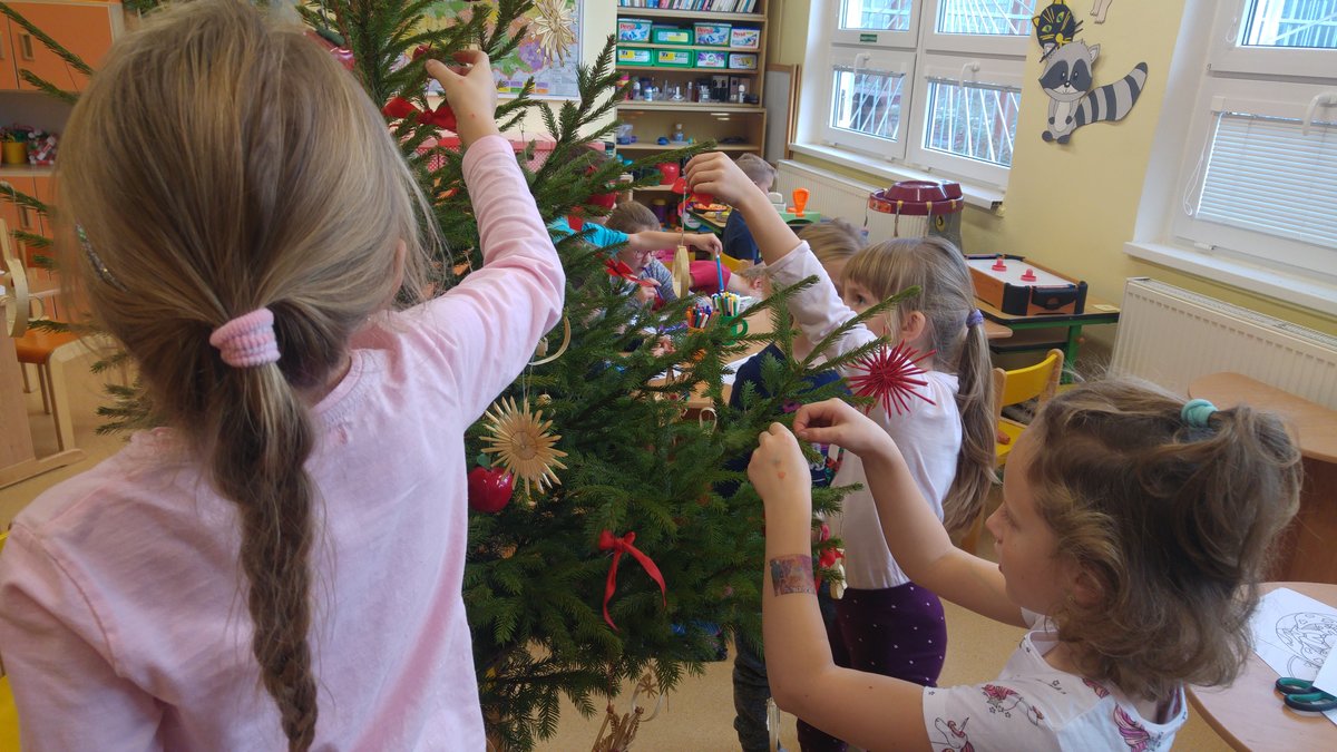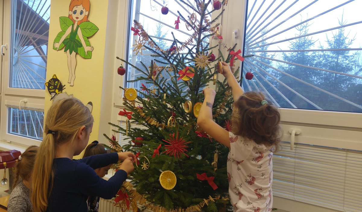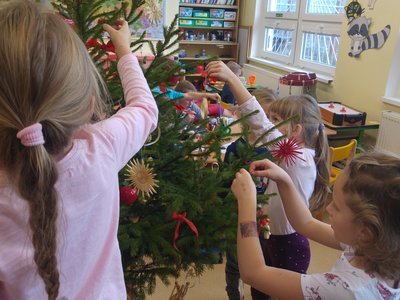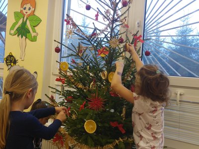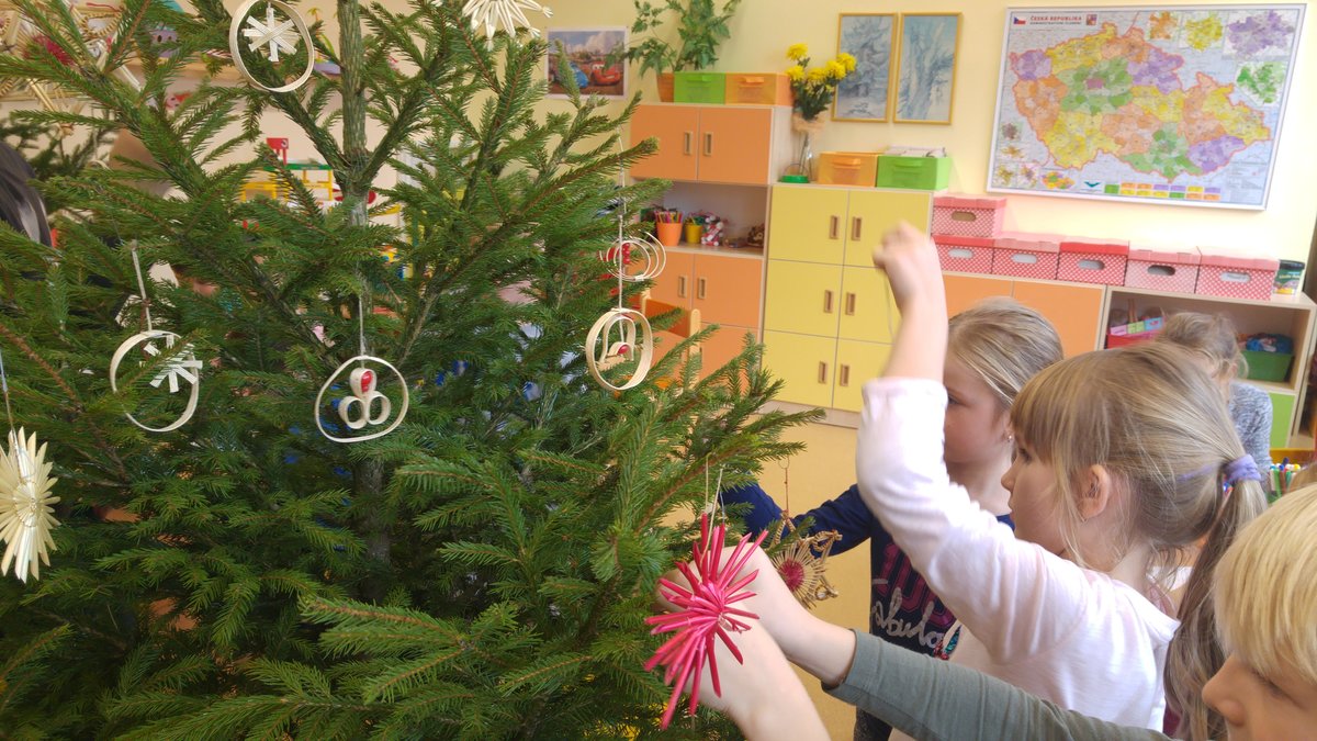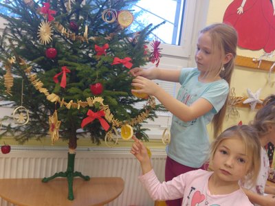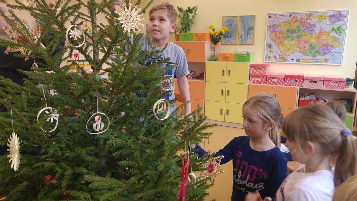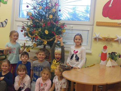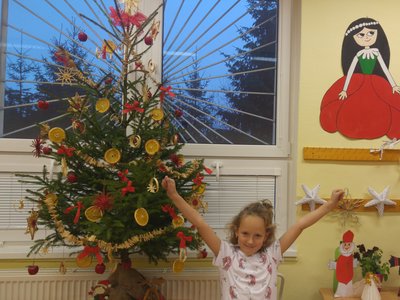 Elišky tatínek nám dnes přinesl krásný smrček a nazdobili jsme ho pěkně
