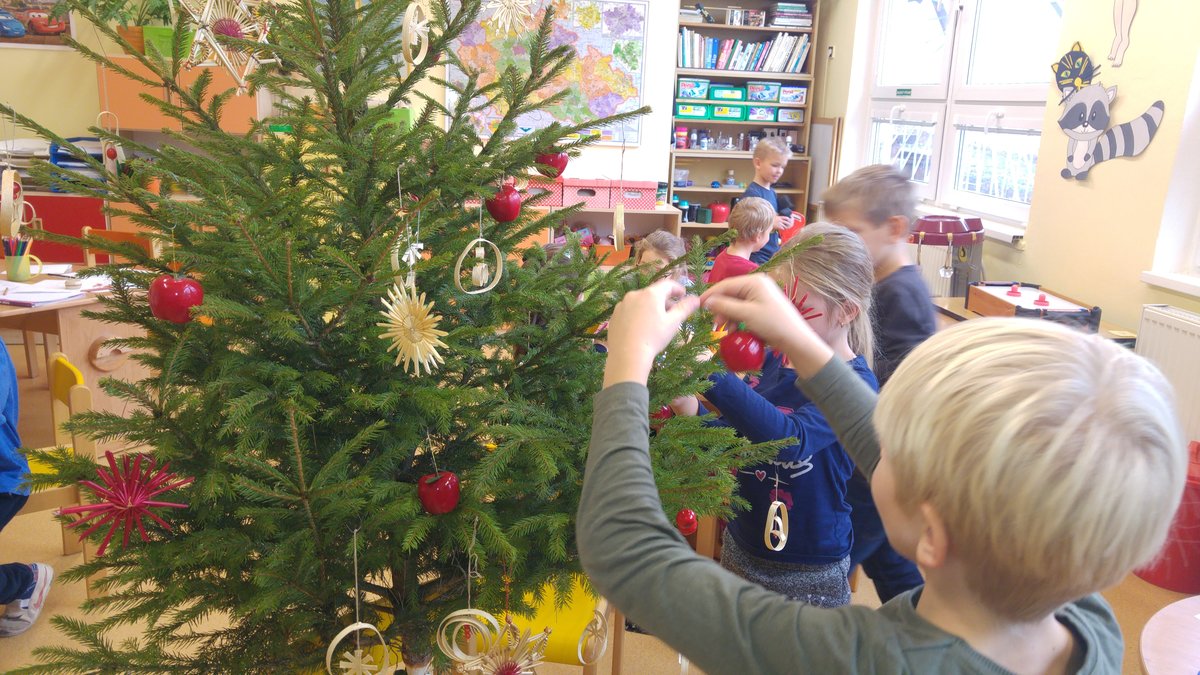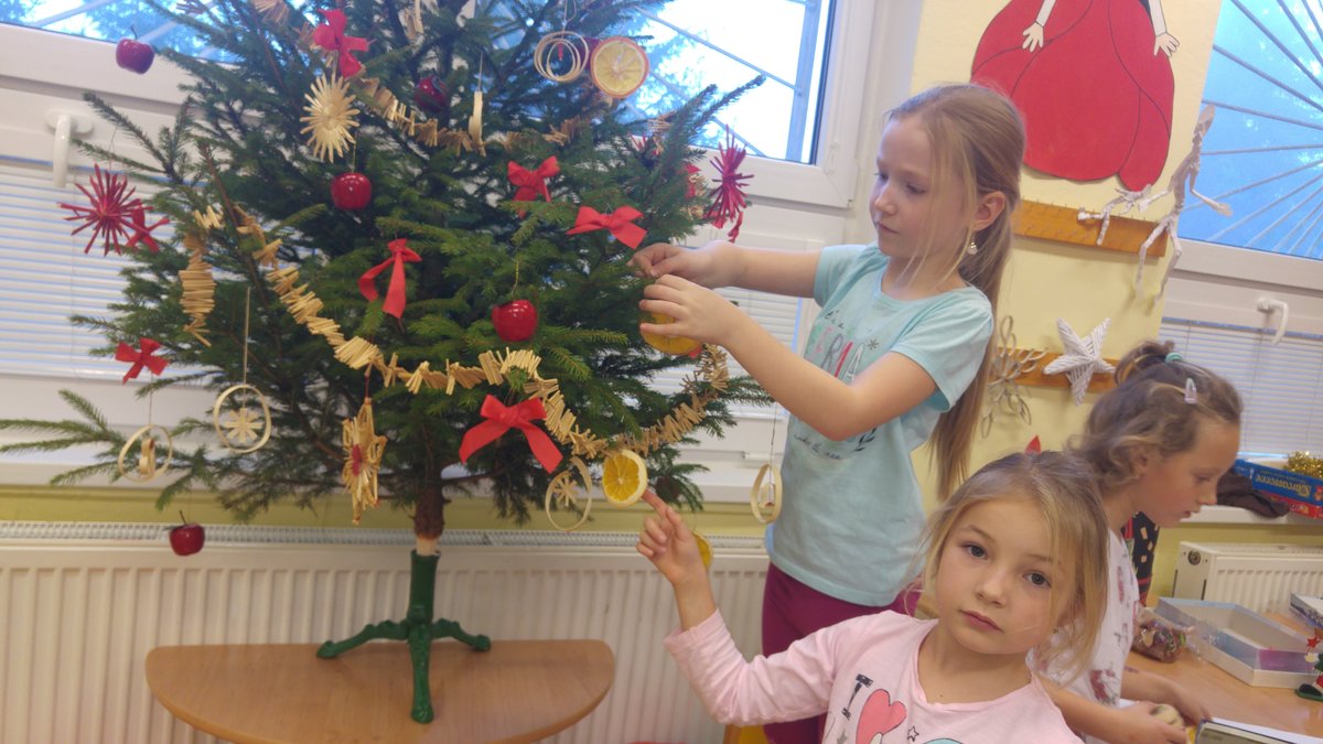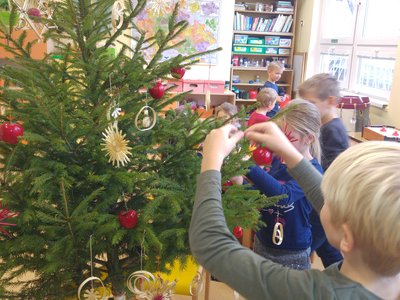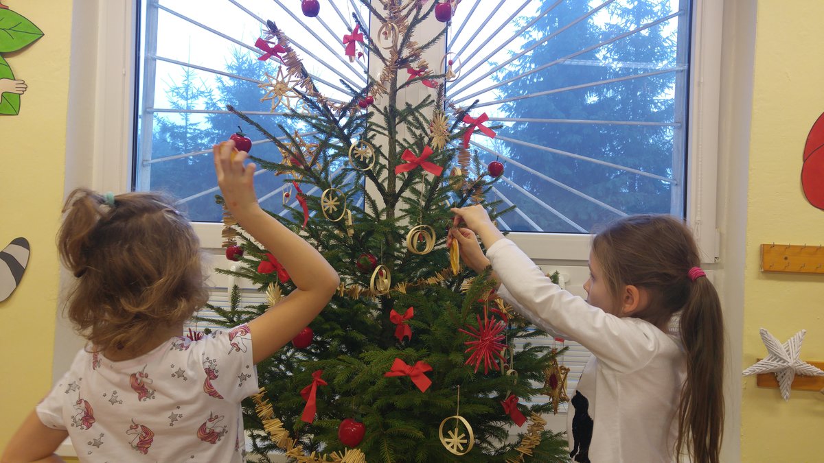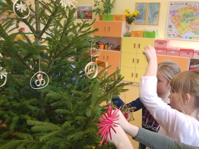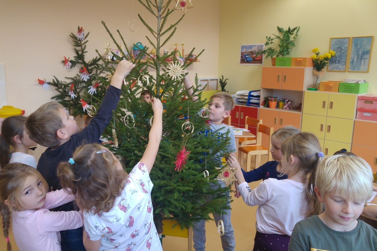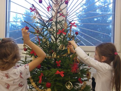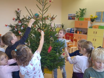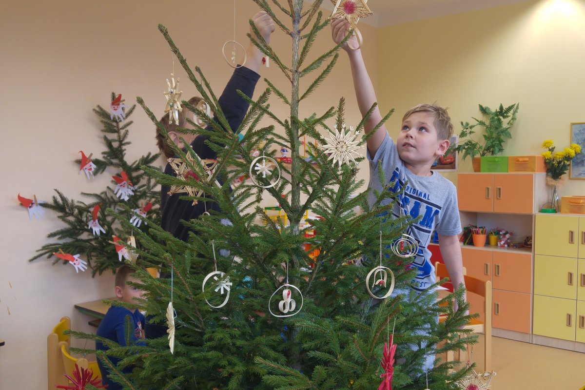Elišky tatínek nám dnes přinesl krásný smrček a nazdobili jsme ho pěkně