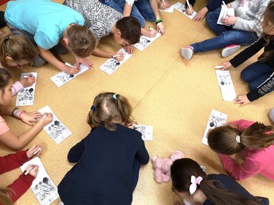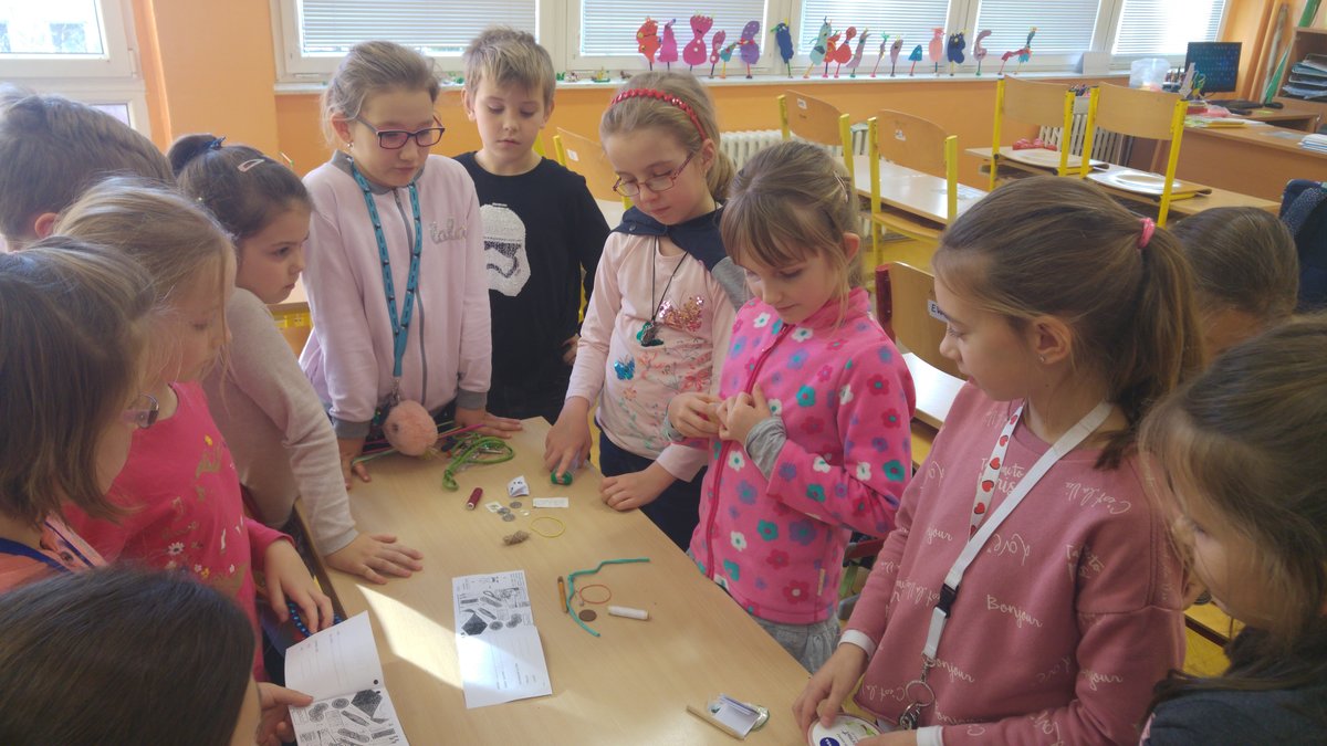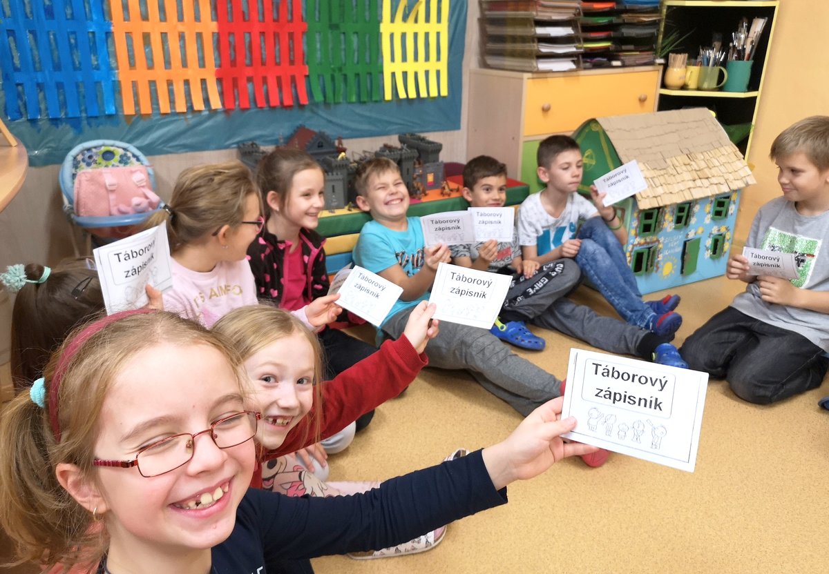 Každý z nás obdržel svůj zápisník, který nás bude doprovázet až do letních prázdnin. Máme před sebou dvanáct zajímavých úkolů, za které si po splnění budeme razítkovat body ve tvaru sluníčka. První úkol už plníme a je to naše malá KPZ.