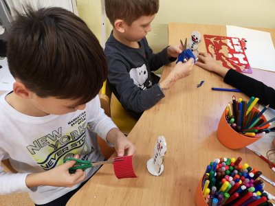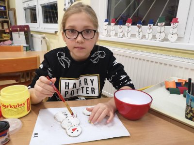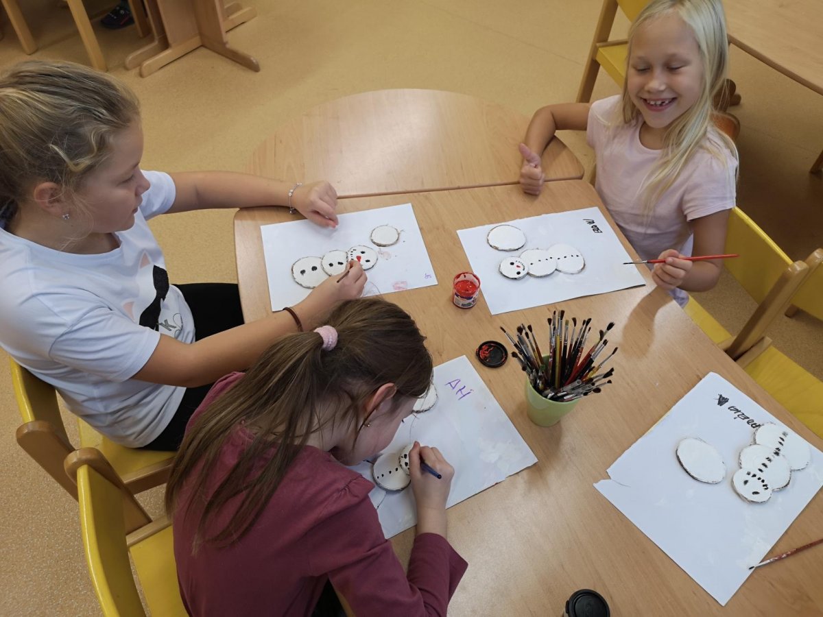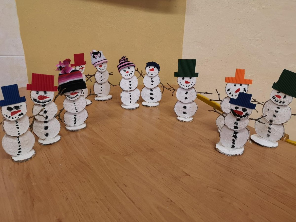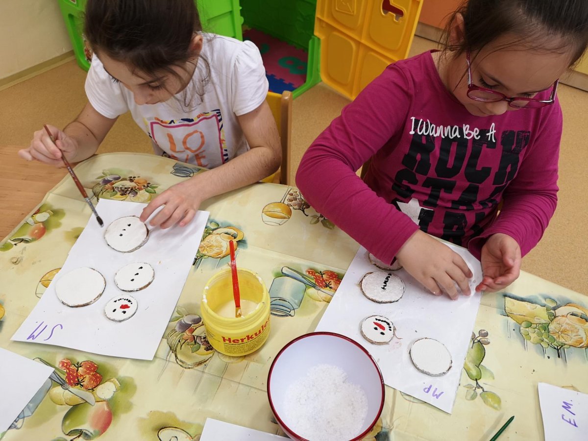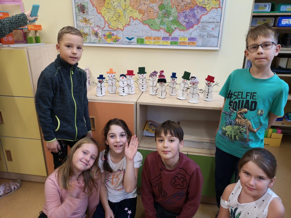 Předpověď počasí slibuje, že brzy napadne sníh a my už se nemůžeme dočkat. Postavili jsme si sněhuláky s předstihem a dělají nám příjemnou společnost v družince na parapetu.