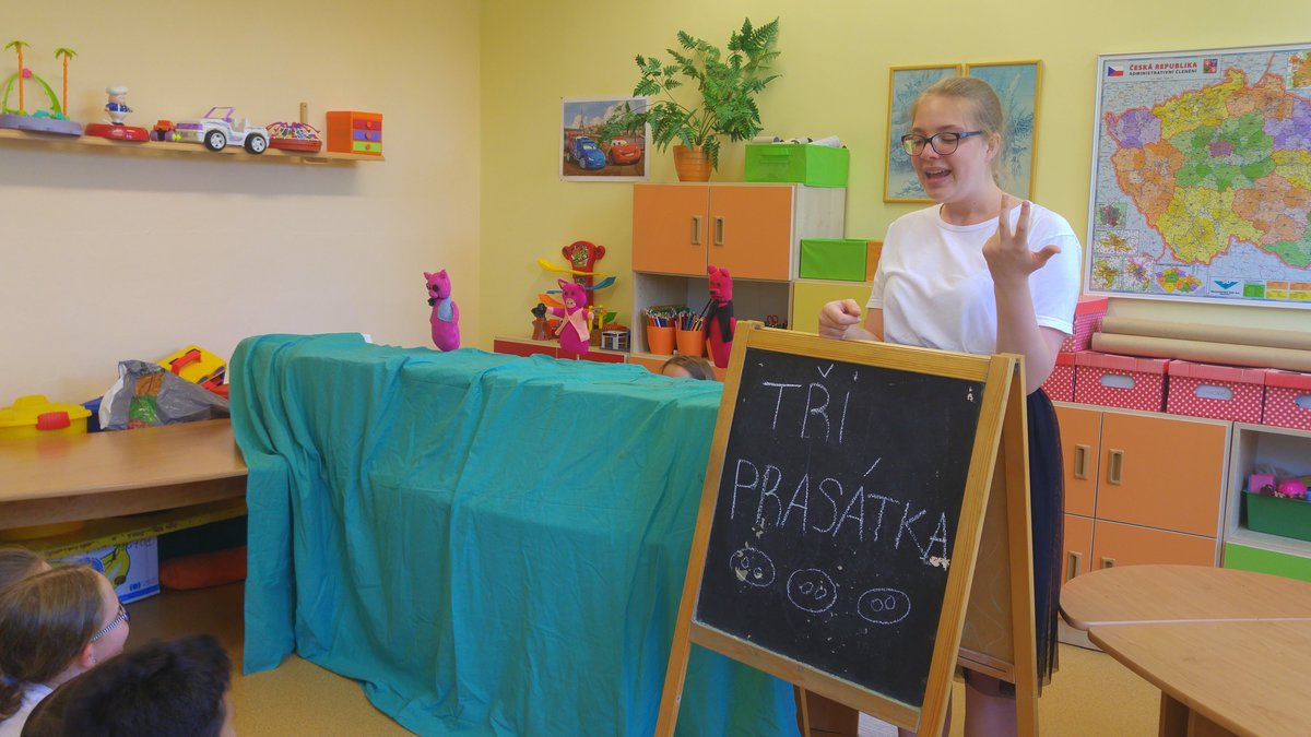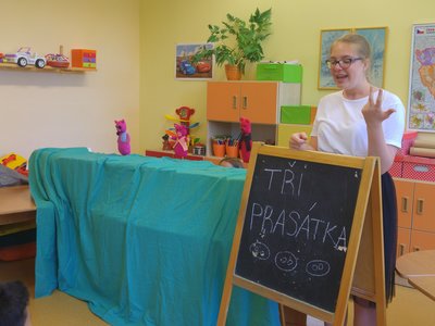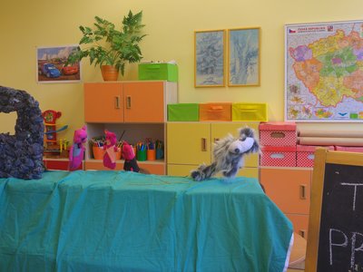 Studentky, které jsou v naší škole na praxi, dnes dětem zahrály loutkovou pohádku a moc se líbila.