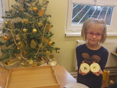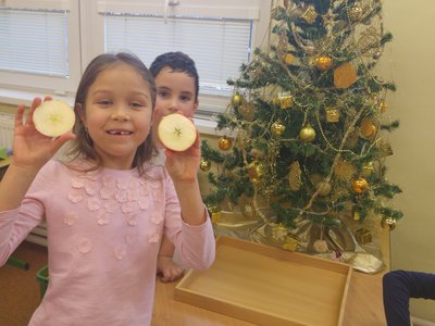 Vánoční přípravy neprožívají jen dospělí...i my máme spoustu práce. Strojíme stromečky, zdobíme perníčky, hledáme hvězdičky v jablíčkách a vyrábíme přáníčka a dárečky.