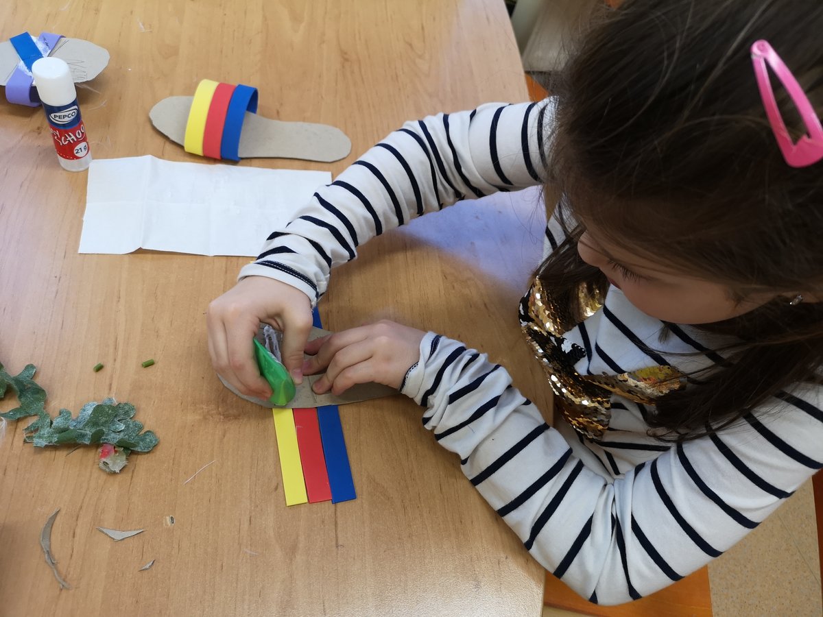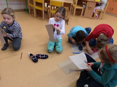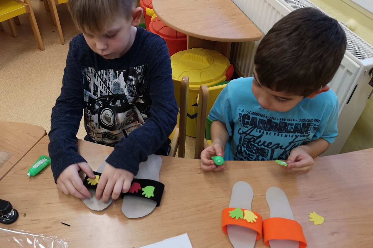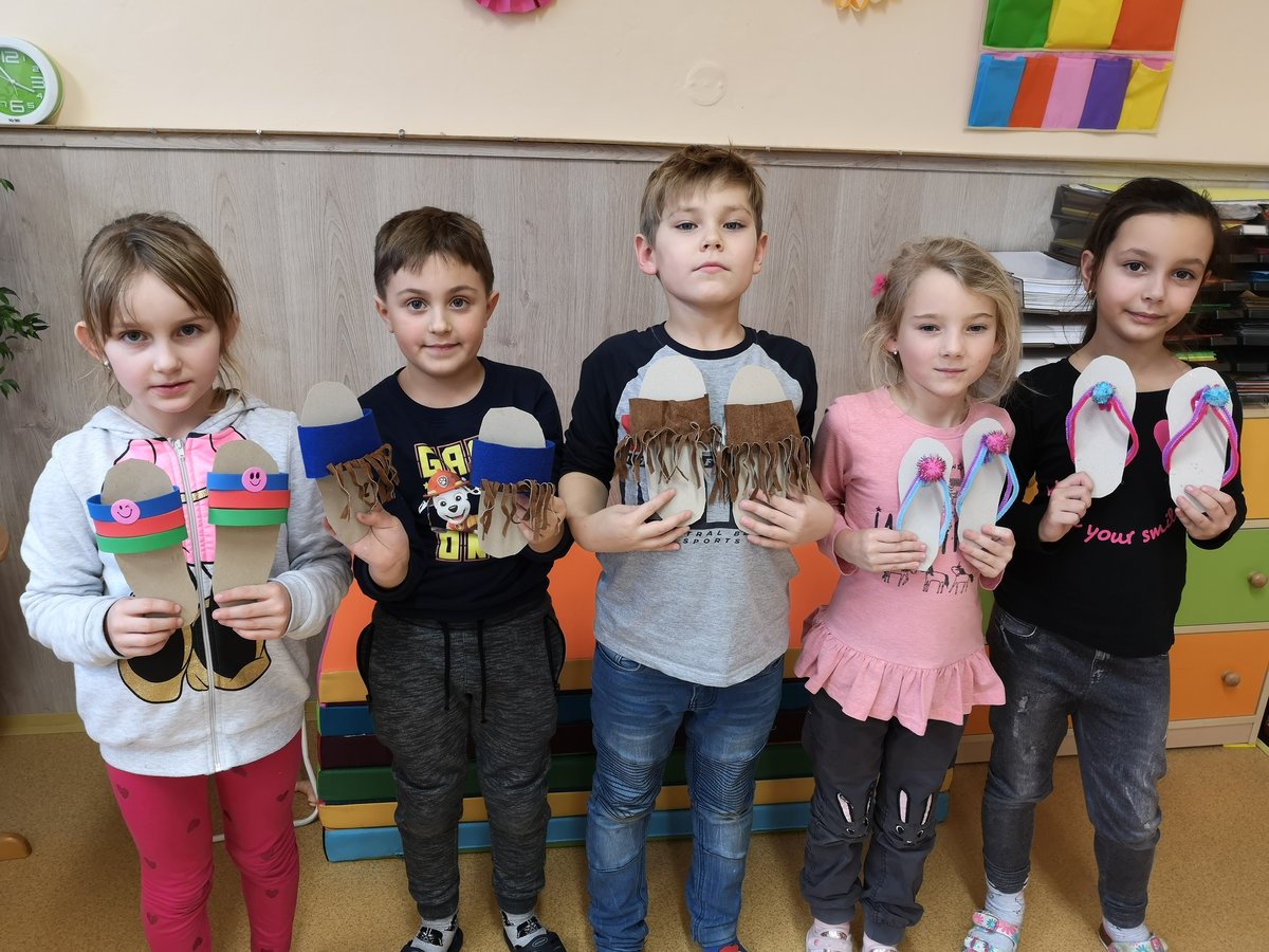 Vyprávěli jsme si o Baťovi a zahráli jsme si na obuvníky. Každý si vyrobil své vlastní boty a máme obuvnictví Sluníčko.