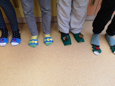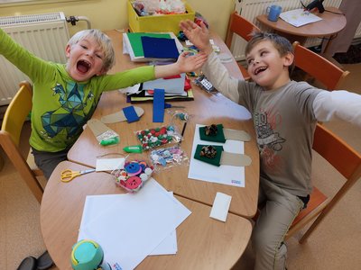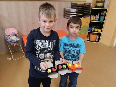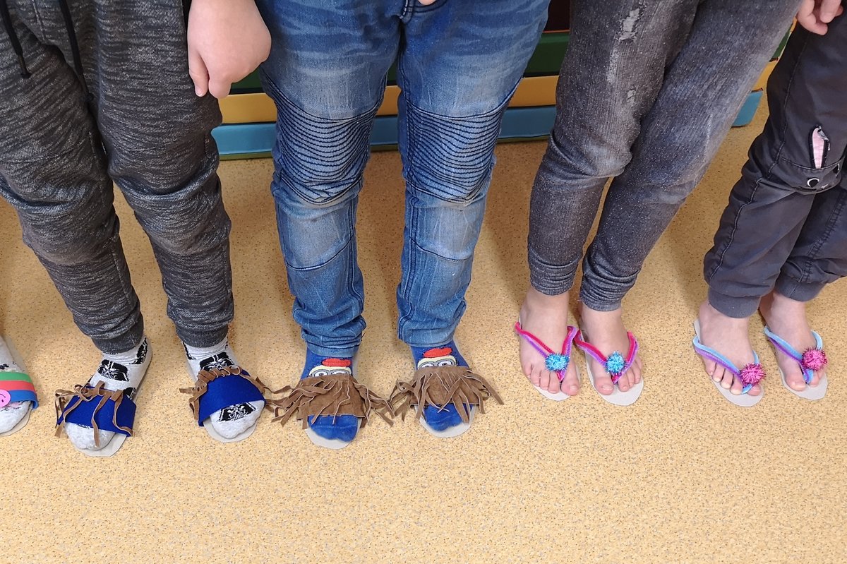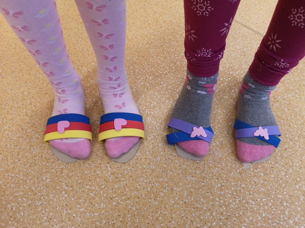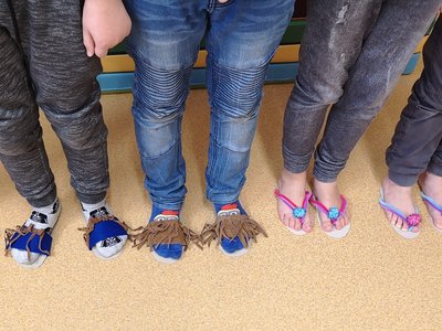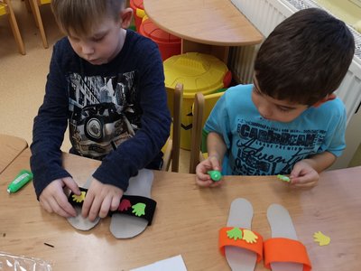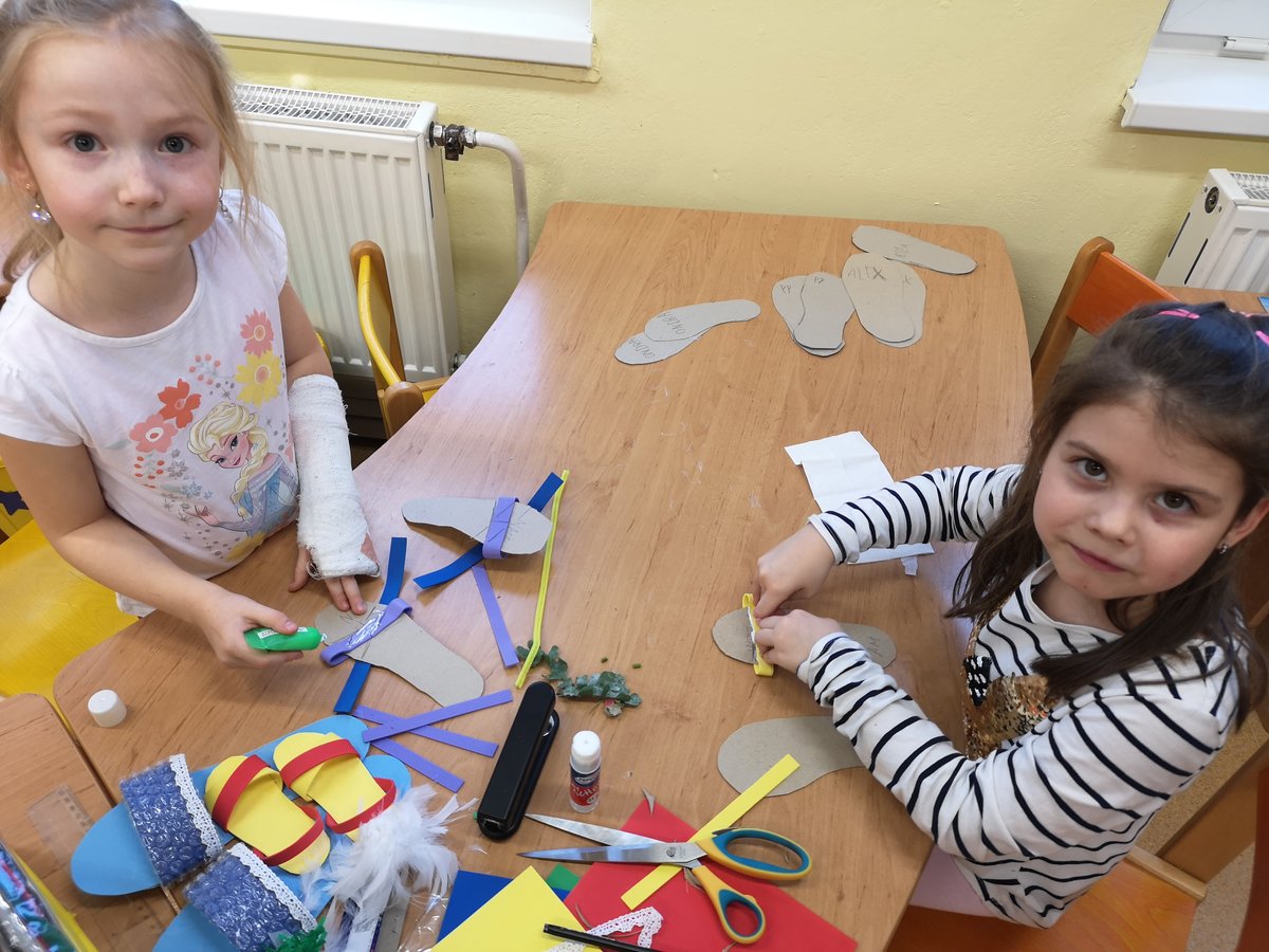 Vyprávěli jsme si o Baťovi a zahráli jsme si na obuvníky. Každý si vyrobil své vlastní boty a máme obuvnictví Sluníčko.