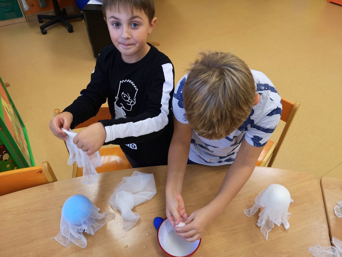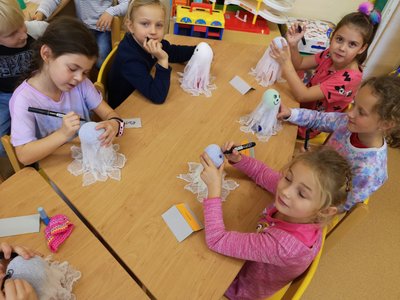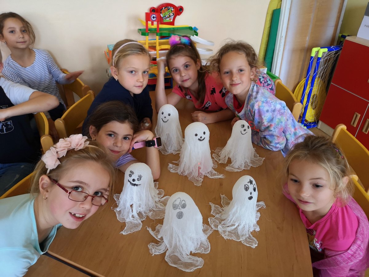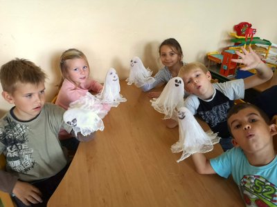 Halooween se blíží a my se těšíme na veselé strašení. Když si dáme pod vyrobeného ducha svíčkovou baterku, budeme mít krásnou lampičku.