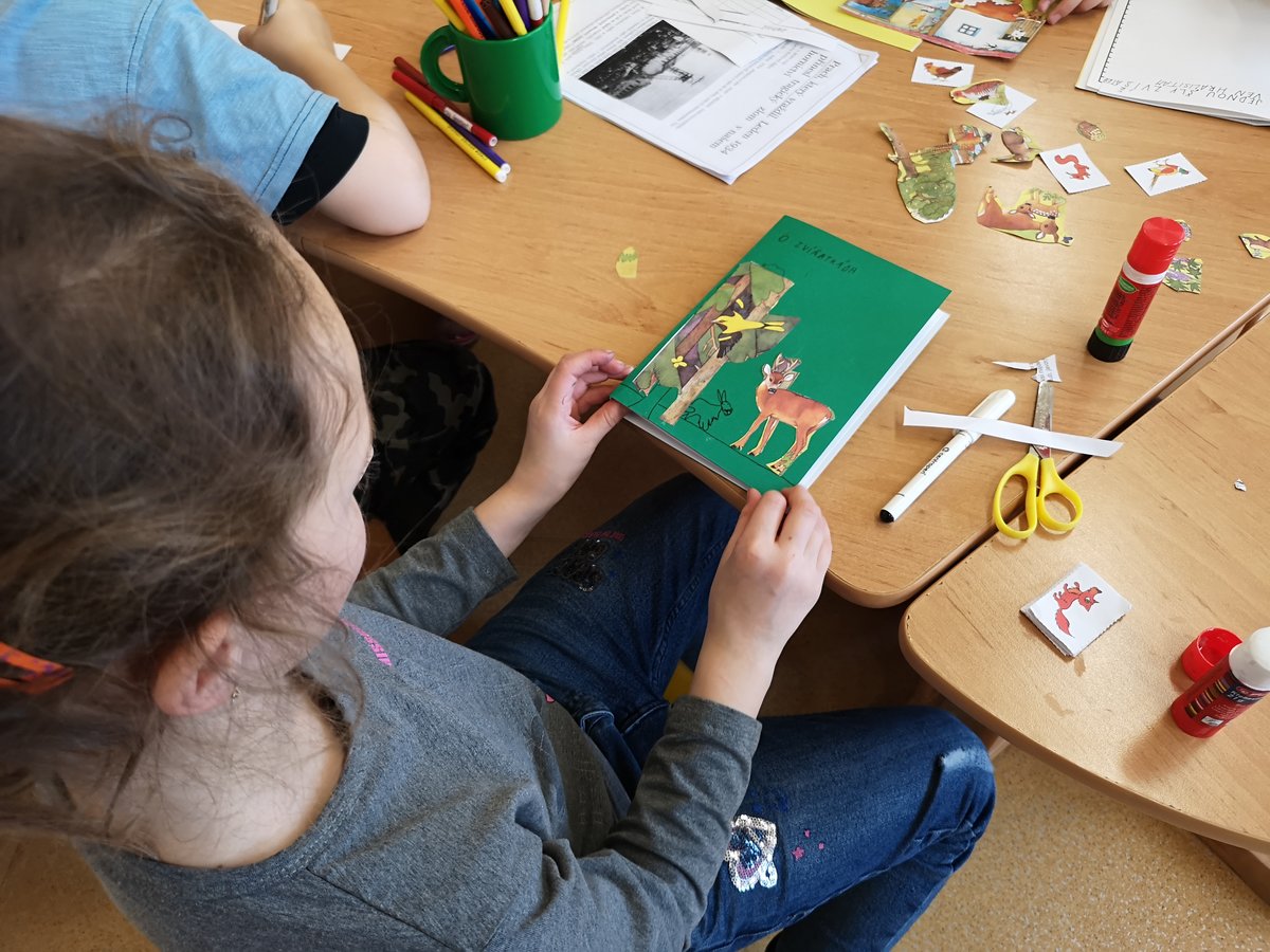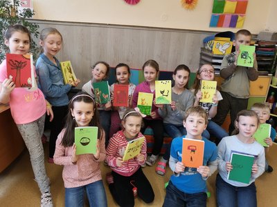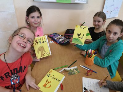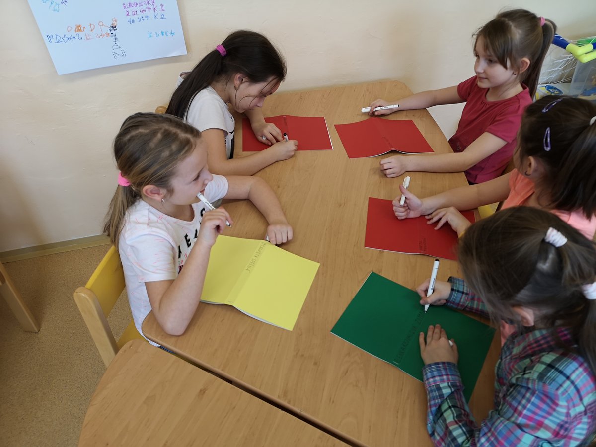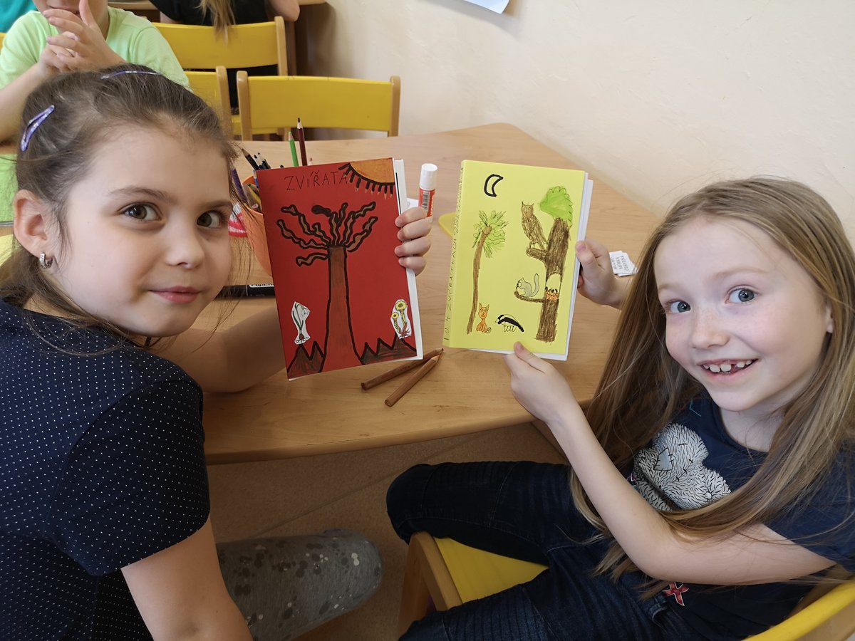 Navrhli jsme si vlastní obal knihy a vymýšleli jsme vlastní příběh. Ti nejodvážnější nám ze své knihy i předčítali a moc se nám jejich přiběhy líbily.