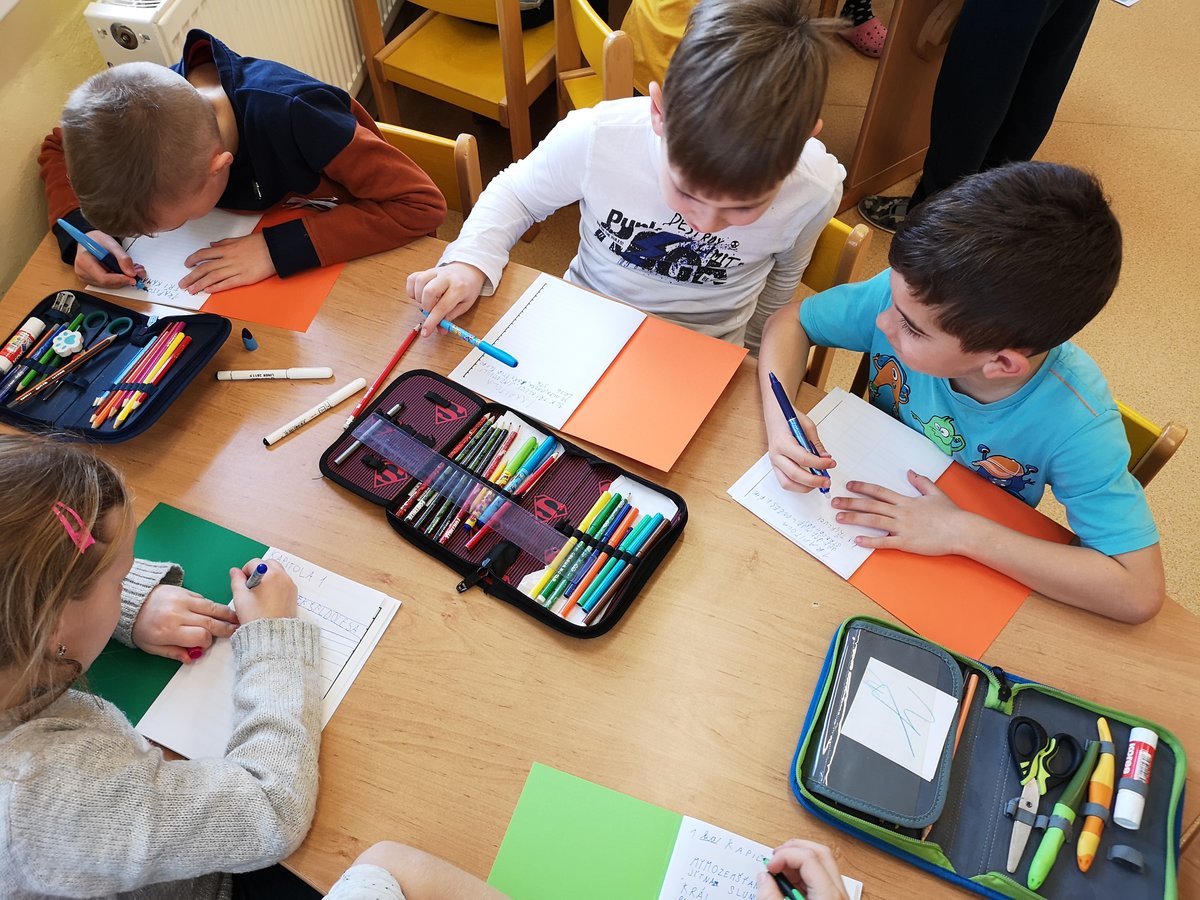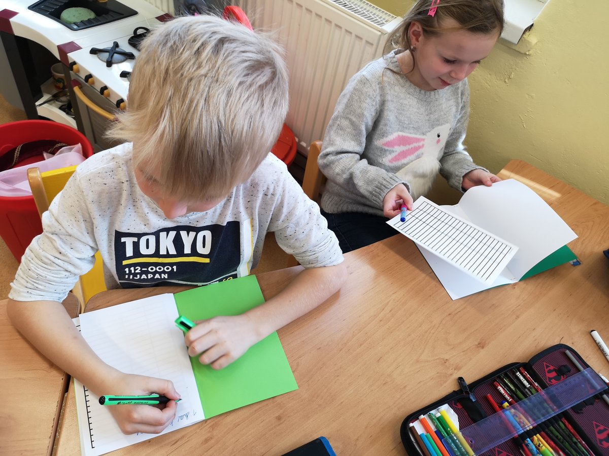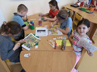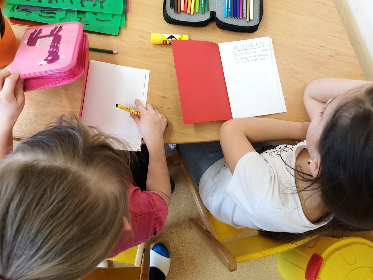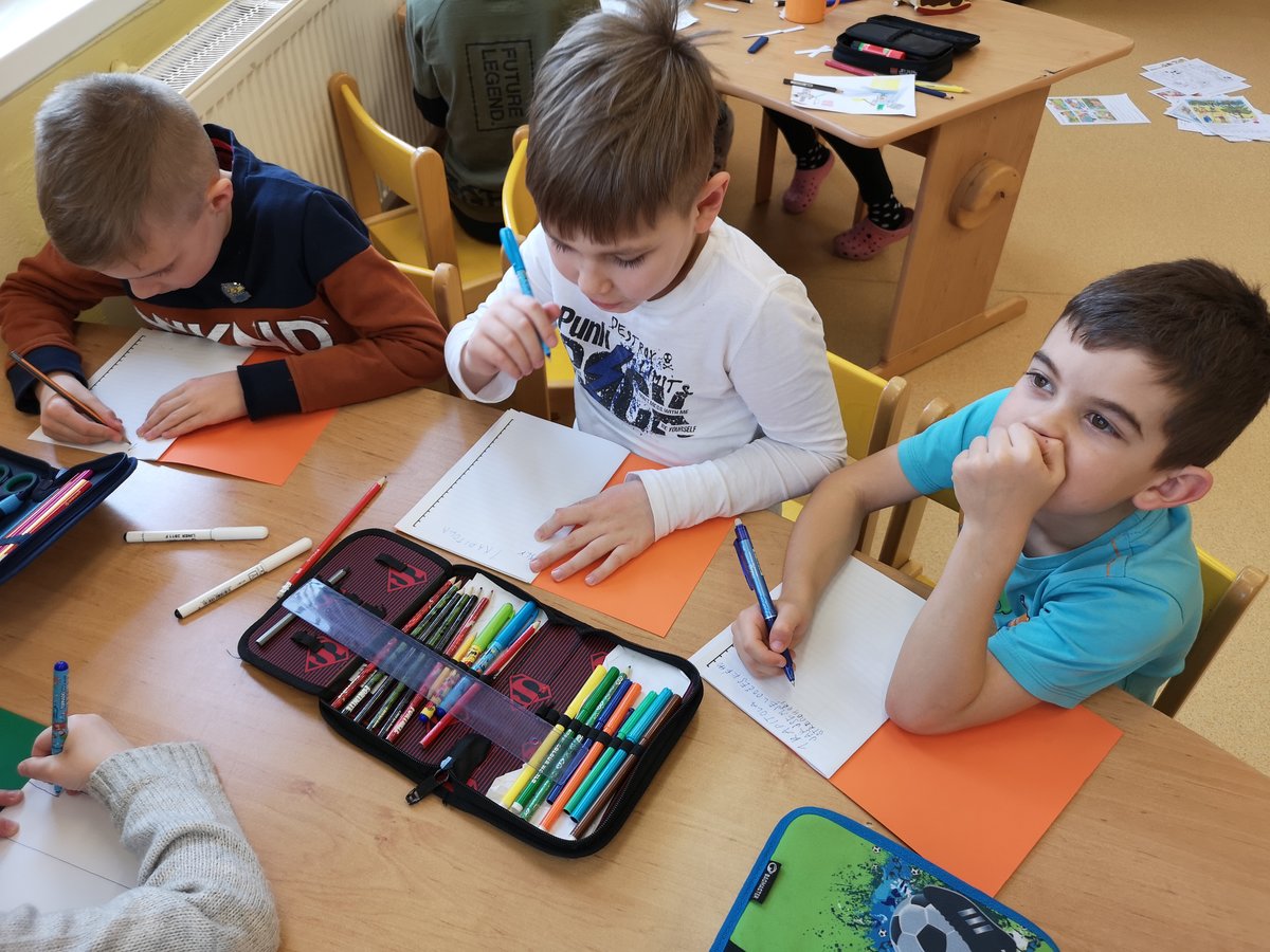 Navrhli jsme si vlastní obal knihy a vymýšleli jsme vlastní příběh. Ti nejodvážnější nám ze své knihy i předčítali a moc se nám jejich přiběhy líbily.
