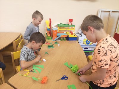 Každá družinka vyrábí různé květiny a budeme mít v provozu vlastní květinářství.