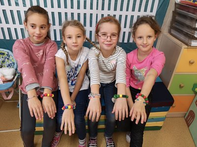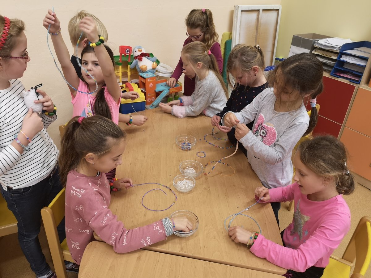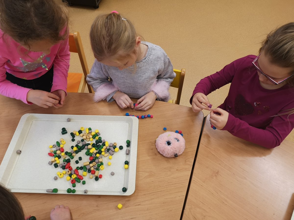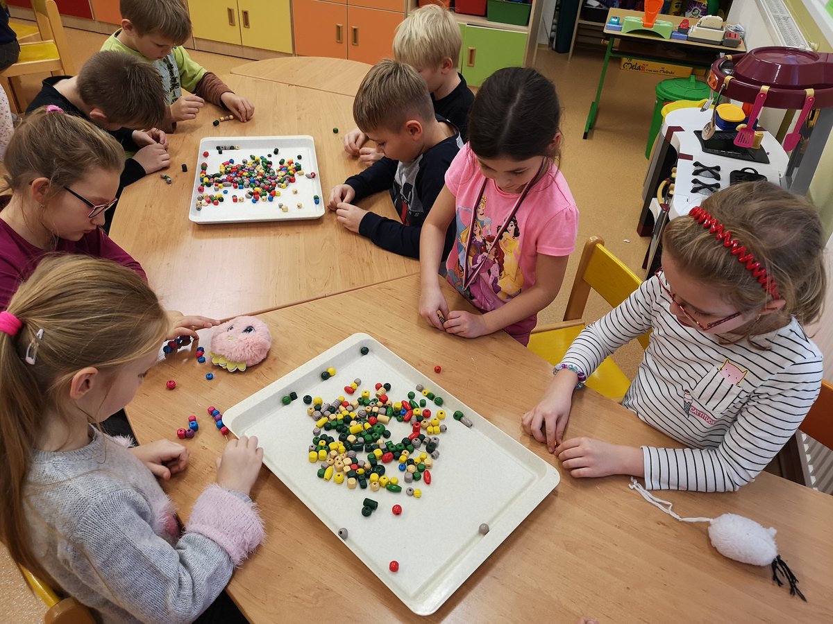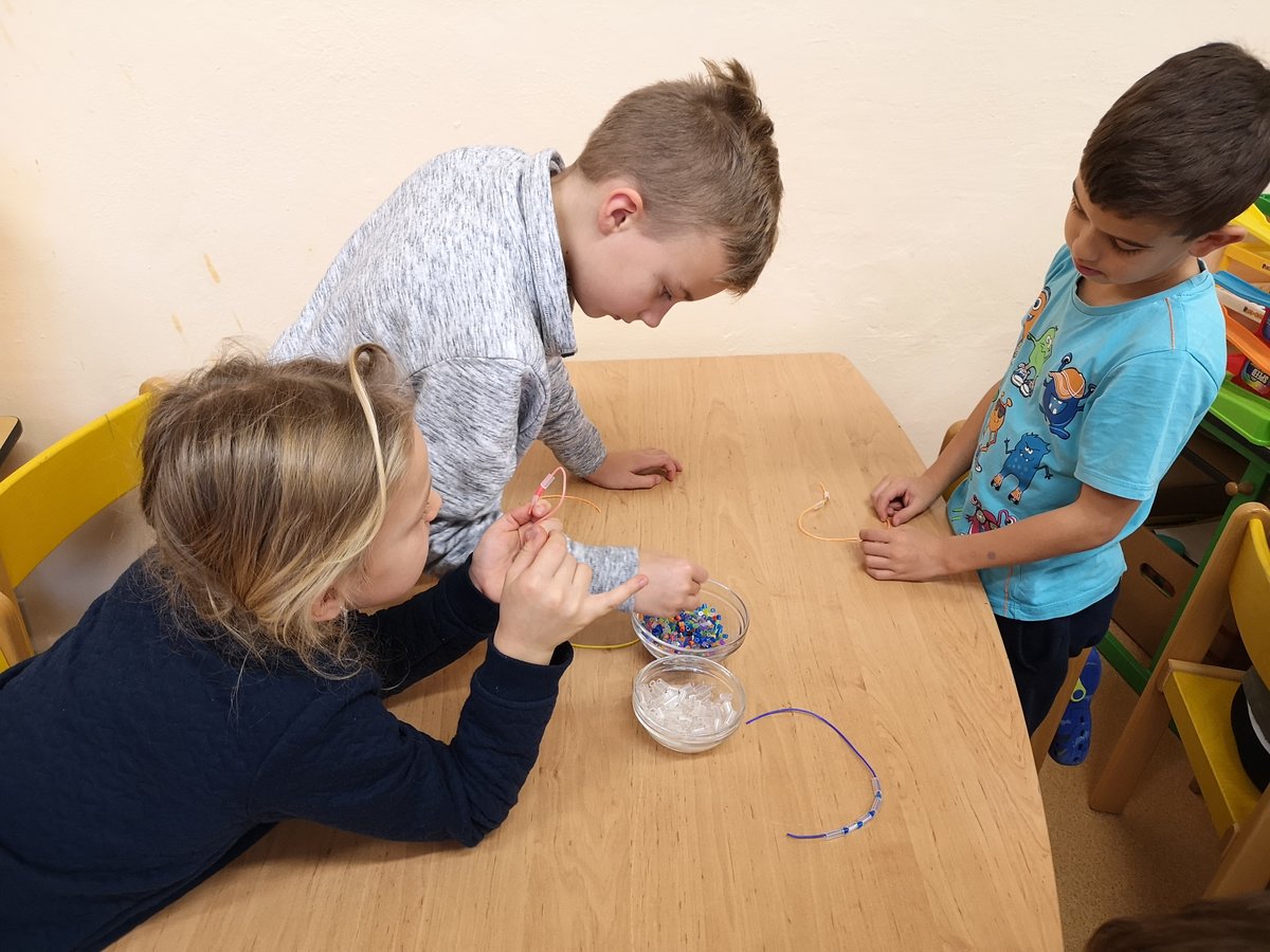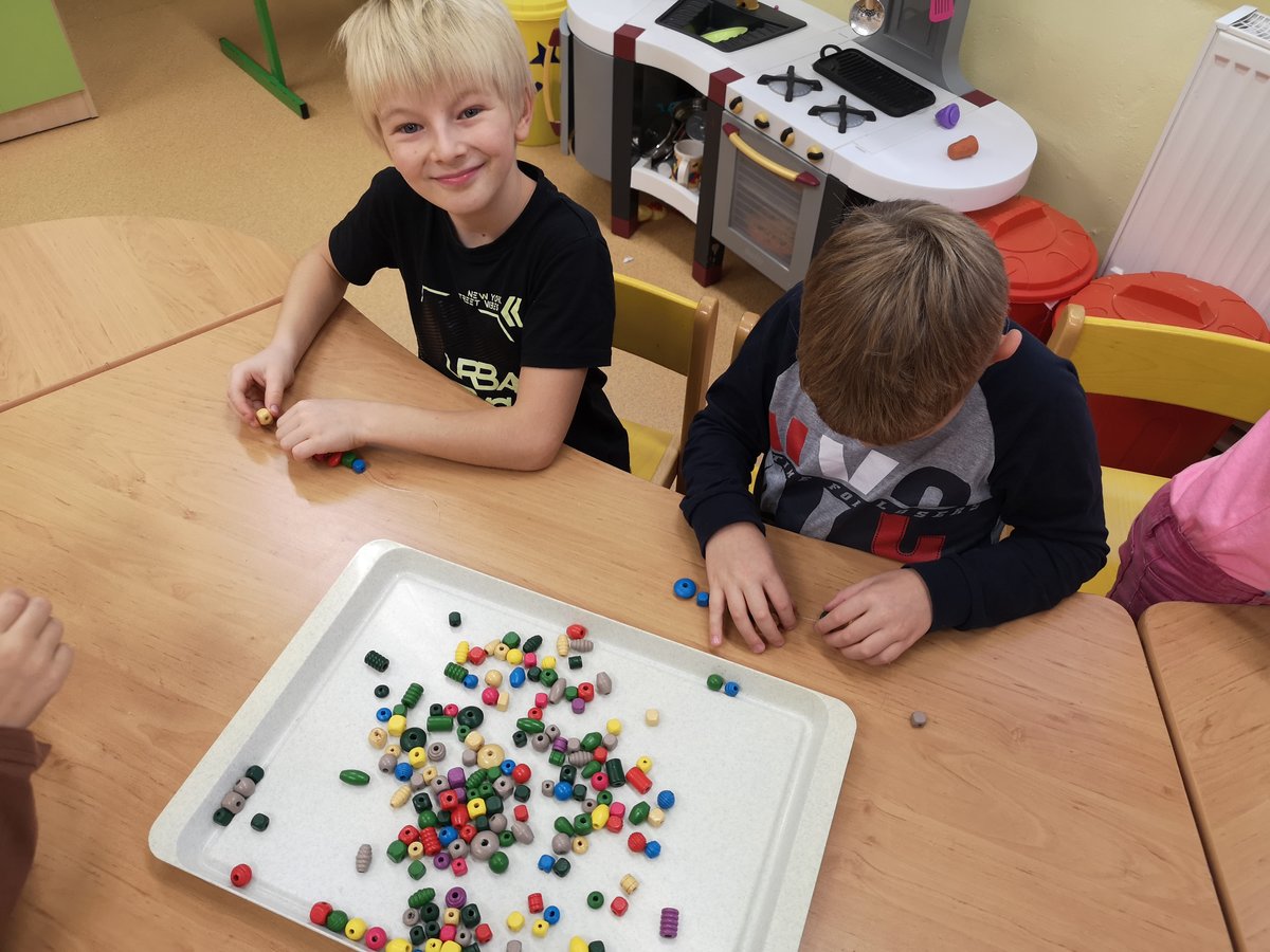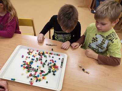 S navlékáním korálků nemáme žádný problém, procvičujeme jemnou motoriku a zároveň uplatňujeme vlastní fantazii.