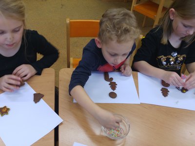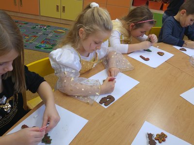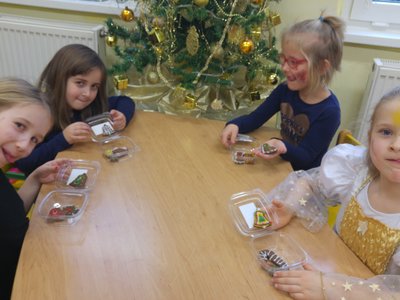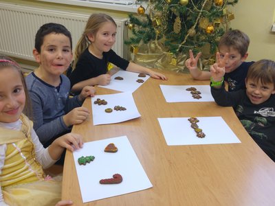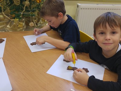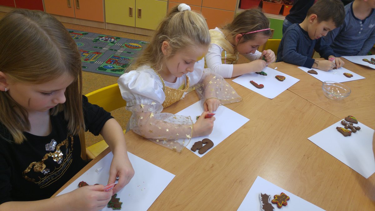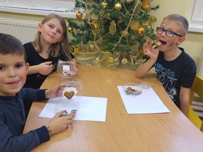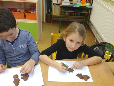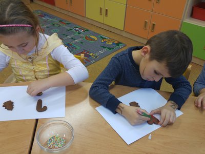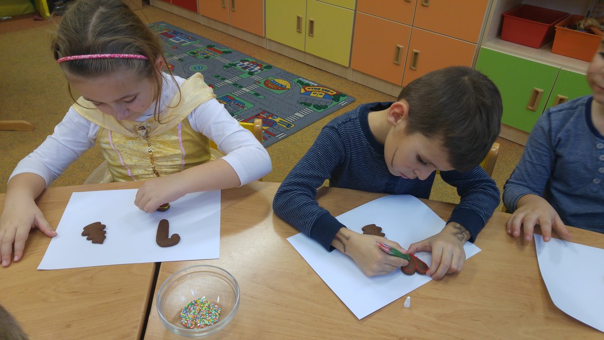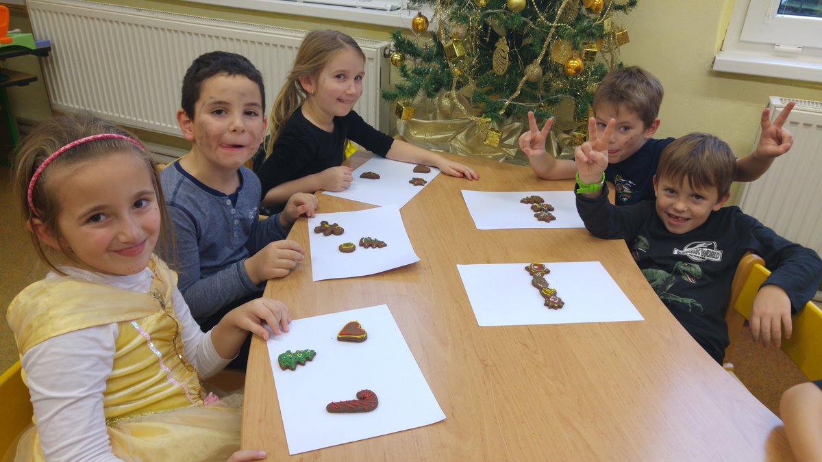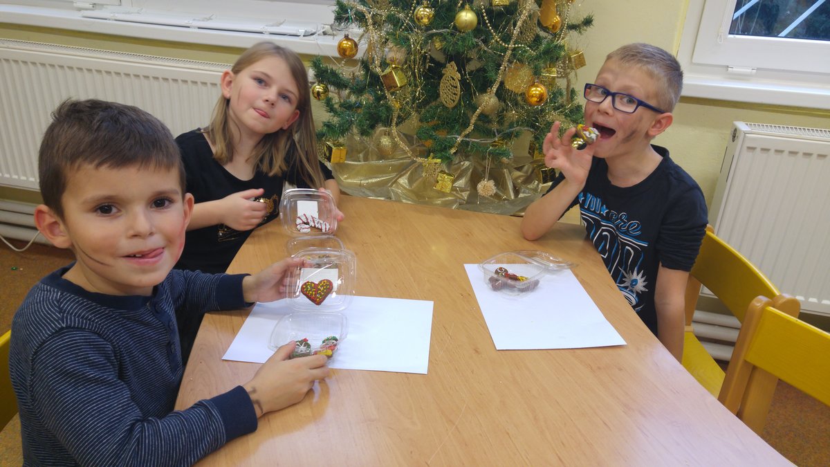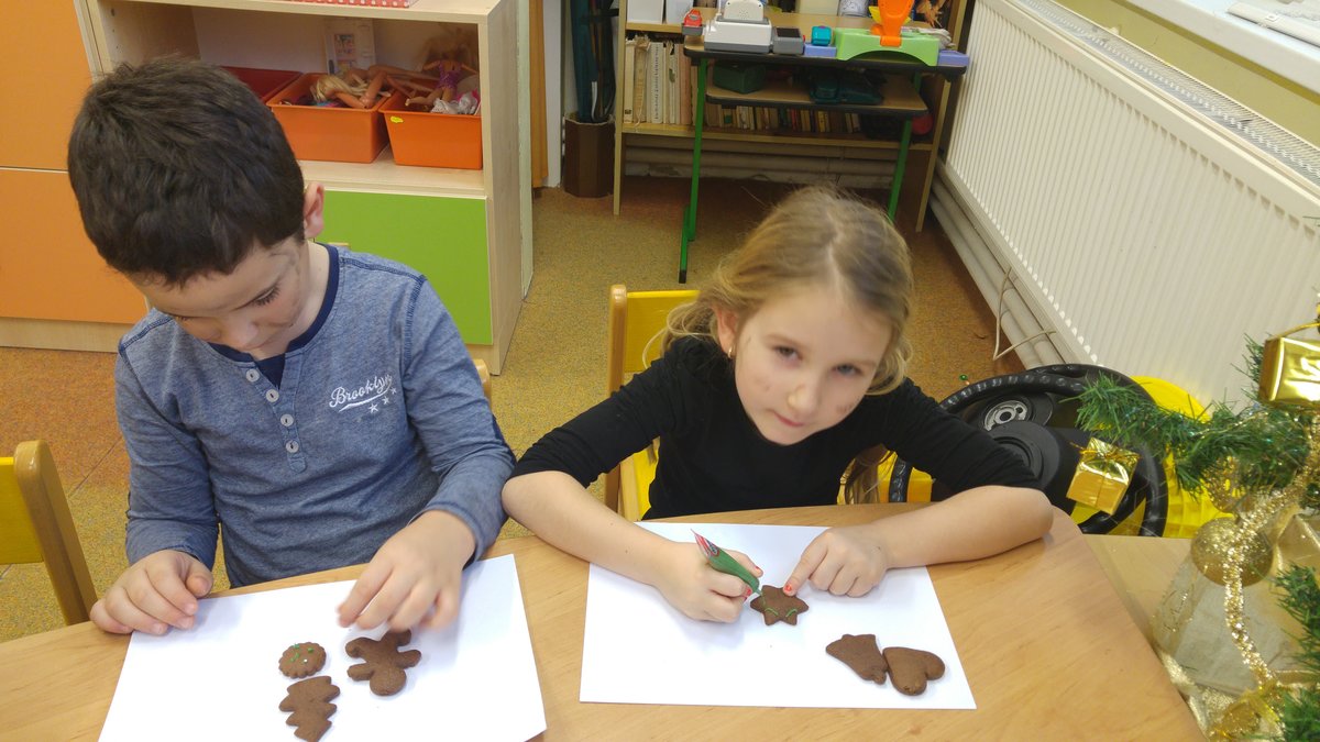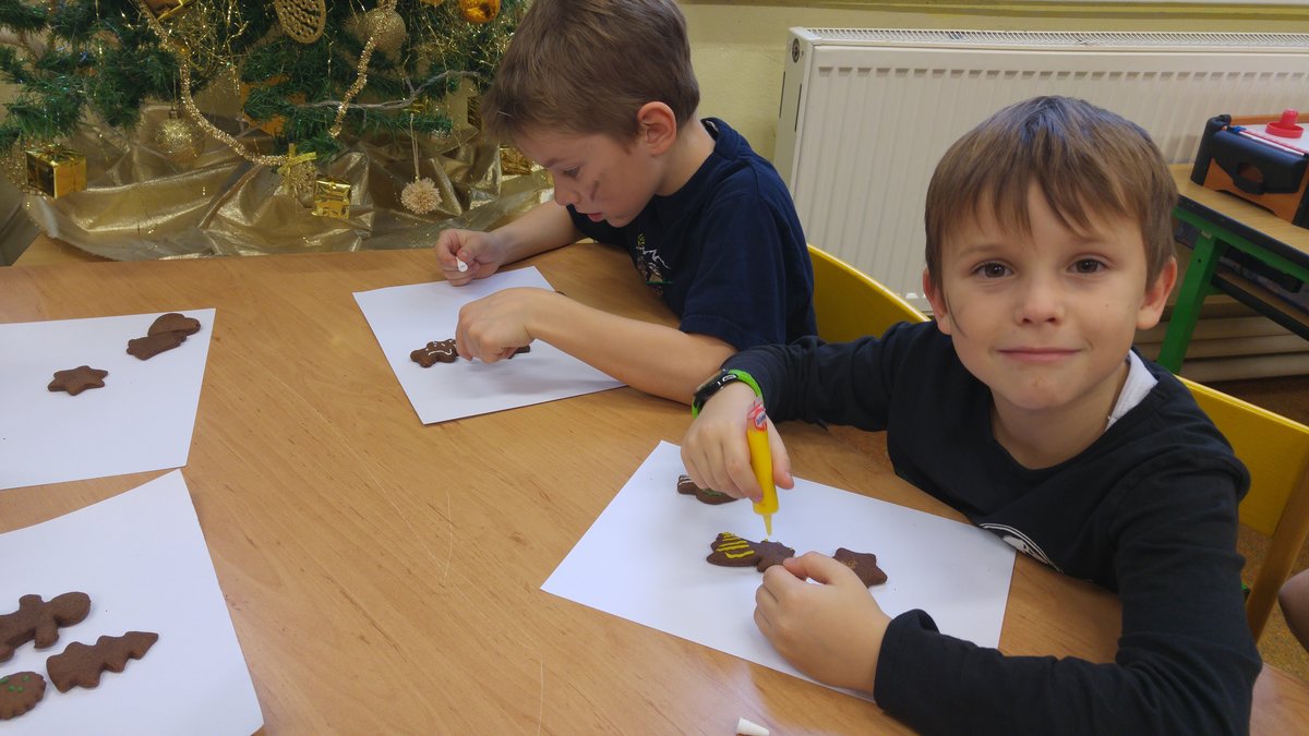 Maminka Aničky Blovské nám upekla perníčky a moc jí za to děkujeme. Každý si tři vybrané sám ozdobil, šlo nám to moc dobře a odnesli jsem si je domů v krabičce.