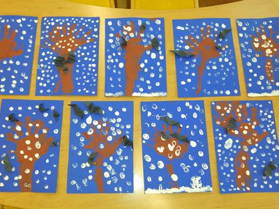 Zima je letos opravdu bílá a sníh zdobí i stromy. My jsme si nějaké také vyrobili...