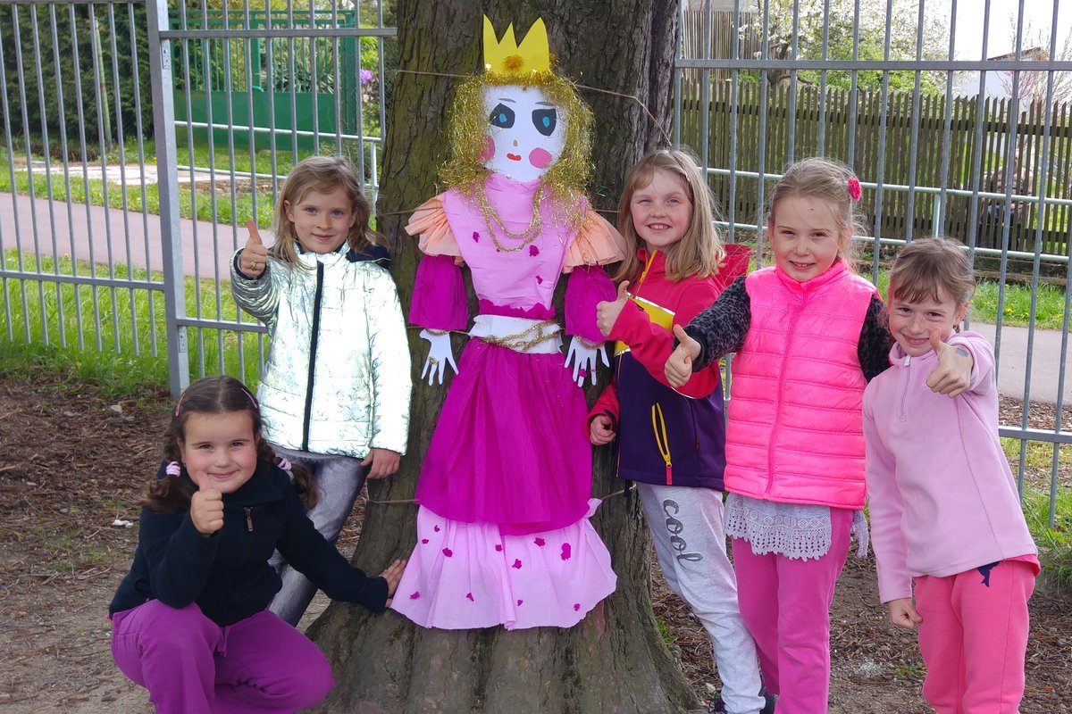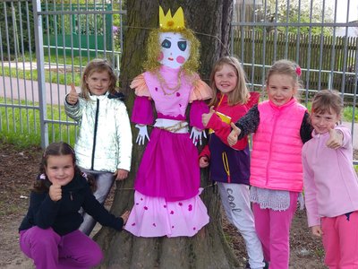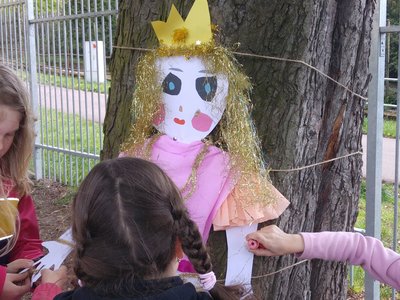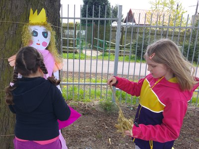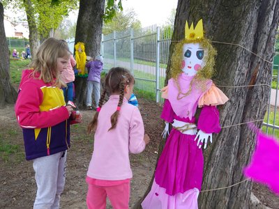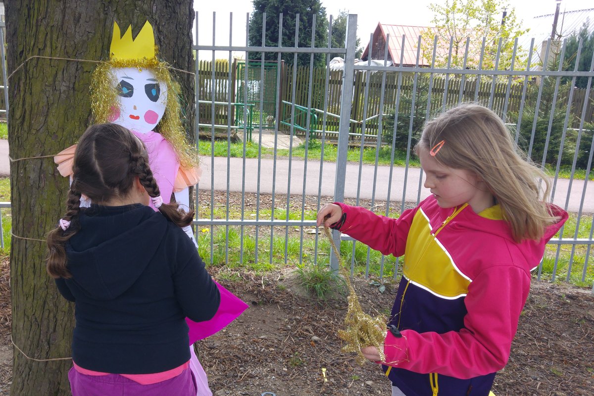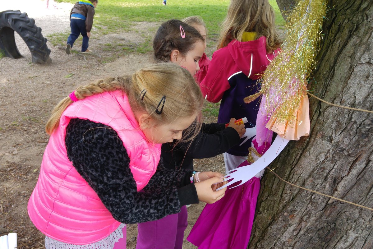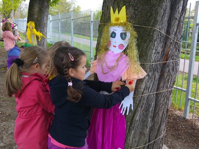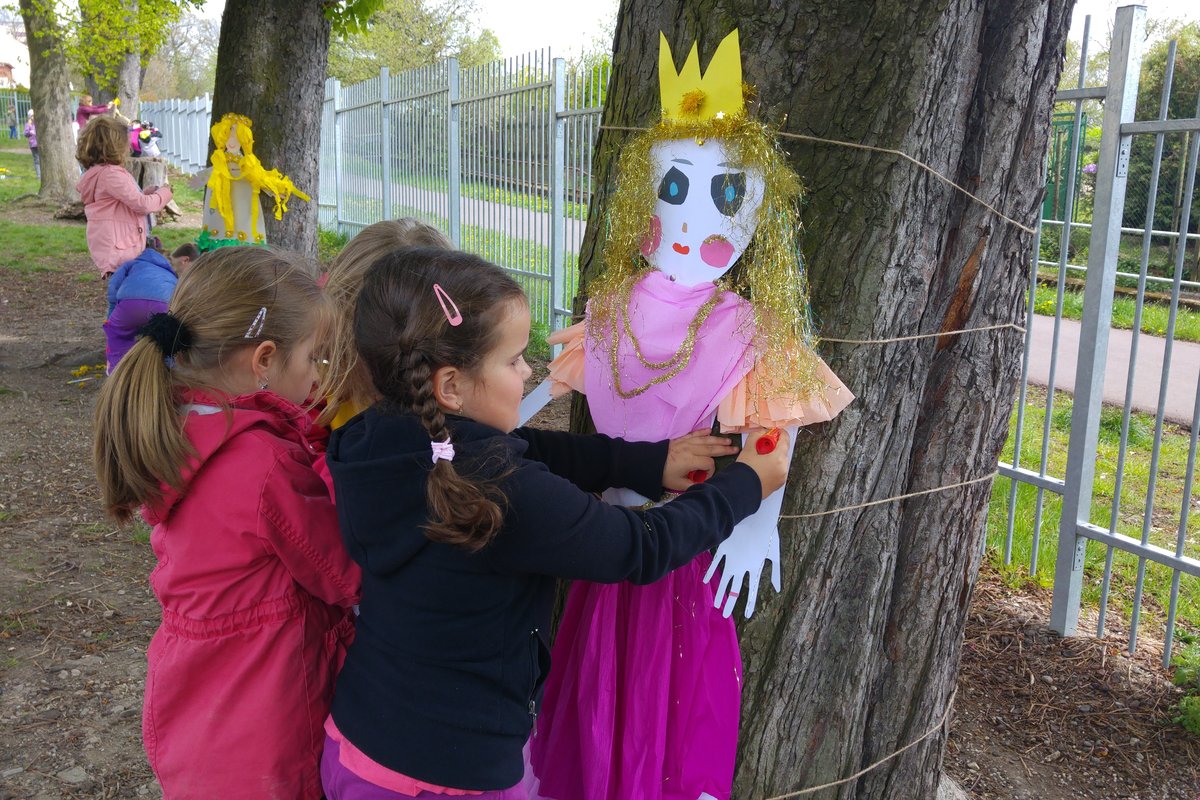Dobrovolníci z každé družinky si našli svůj strom a vyráběli Zlatovlásku. Všechny jsou krásné a vystavují se na zahradě, přijďte si je prohlédnout.