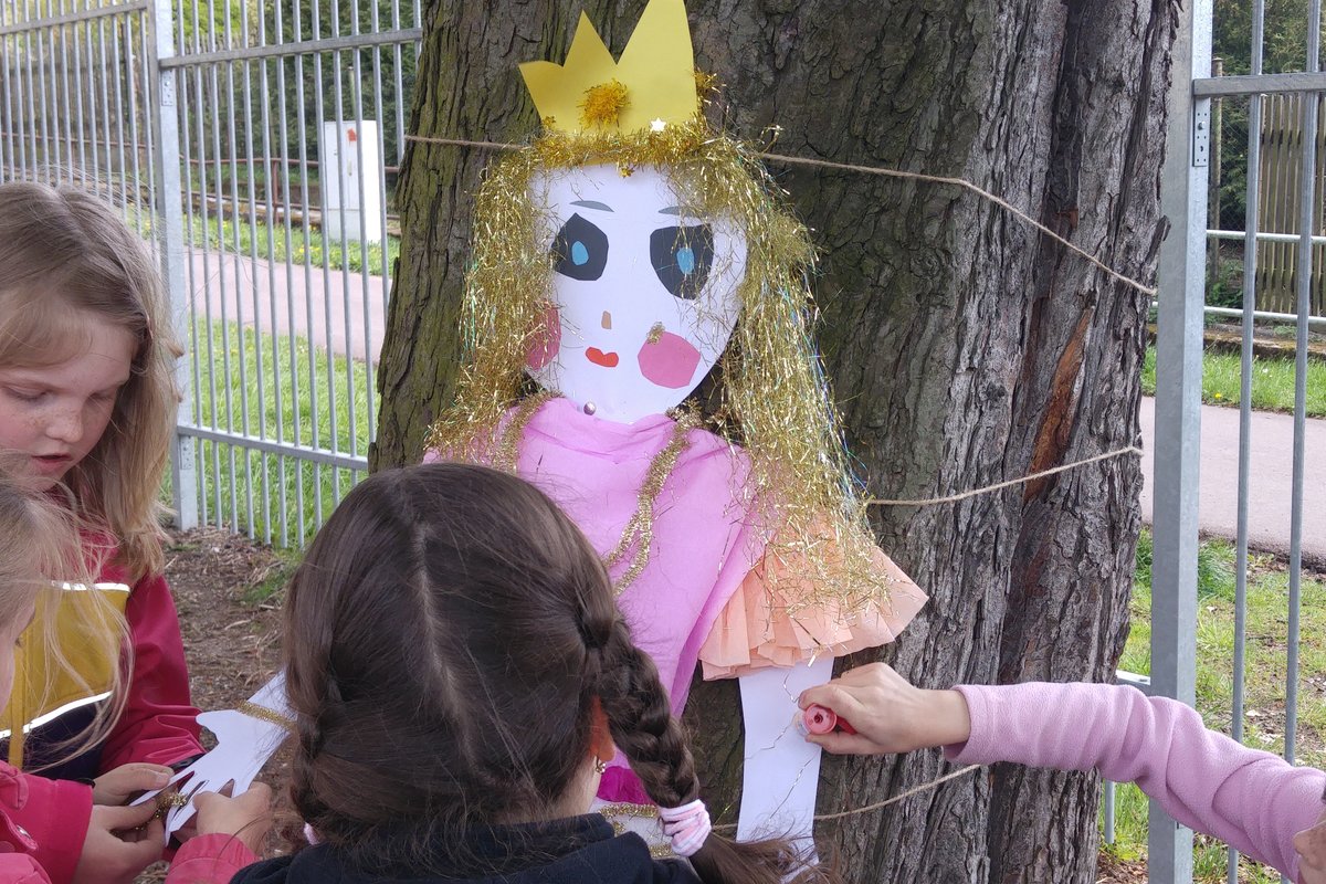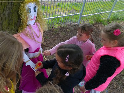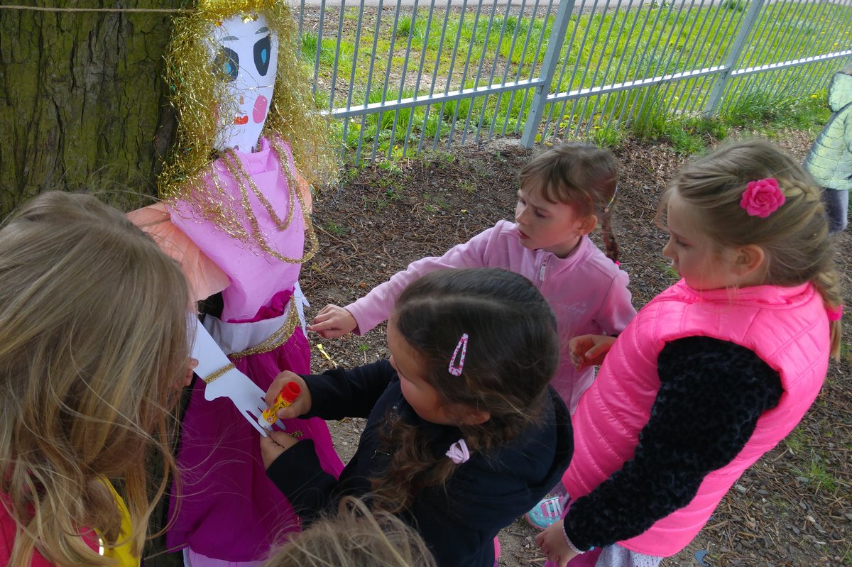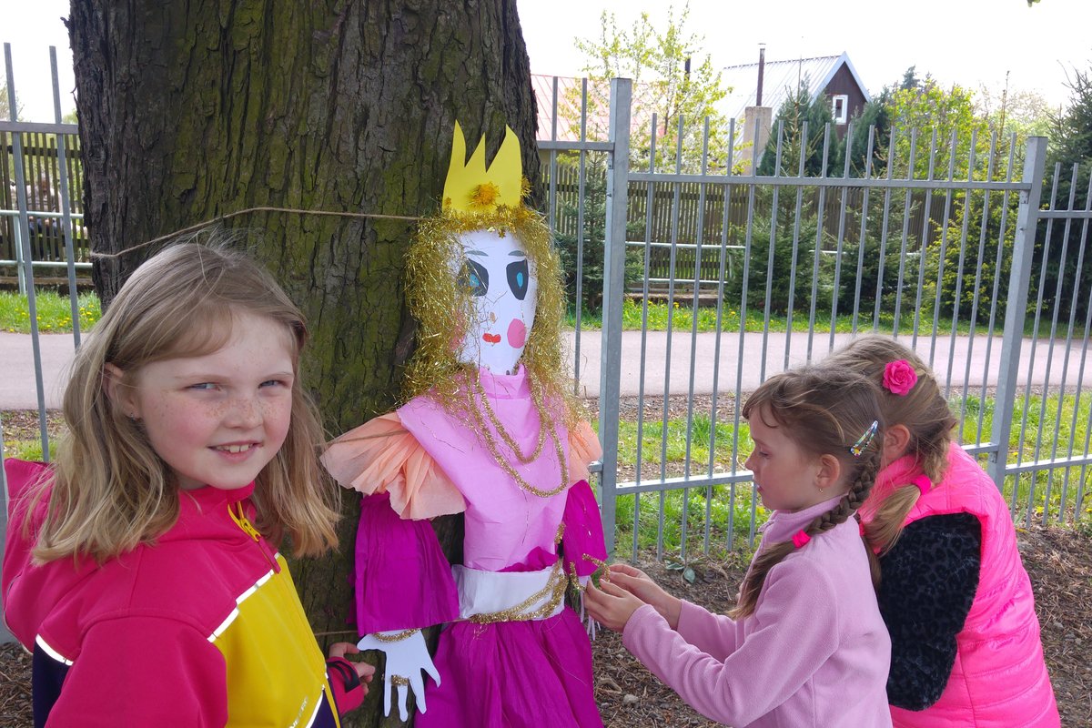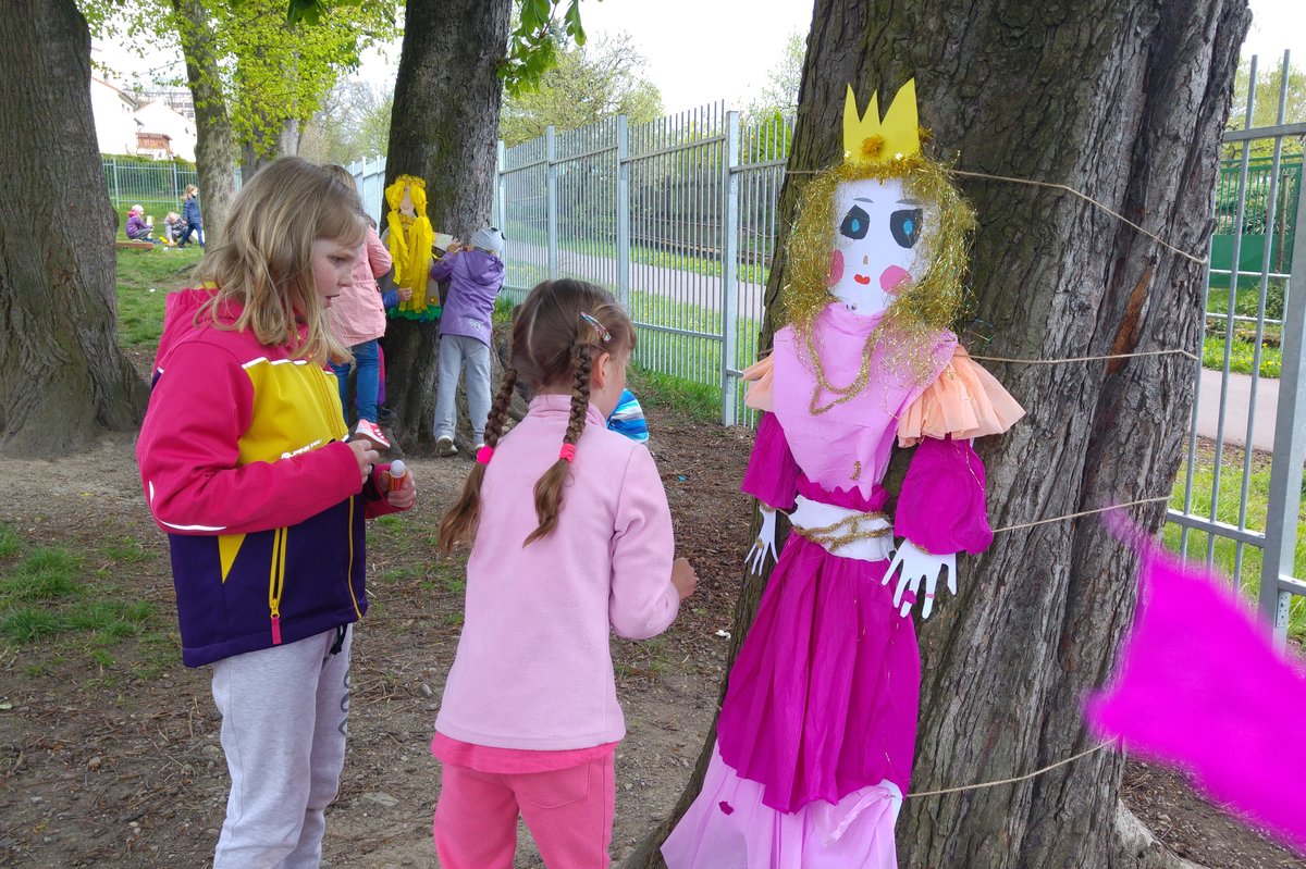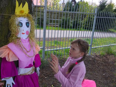 Dobrovolníci z každé družinky si našli svůj strom a vyráběli Zlatovlásku. Všechny jsou krásné a vystavují se na zahradě, přijďte si je prohlédnout.